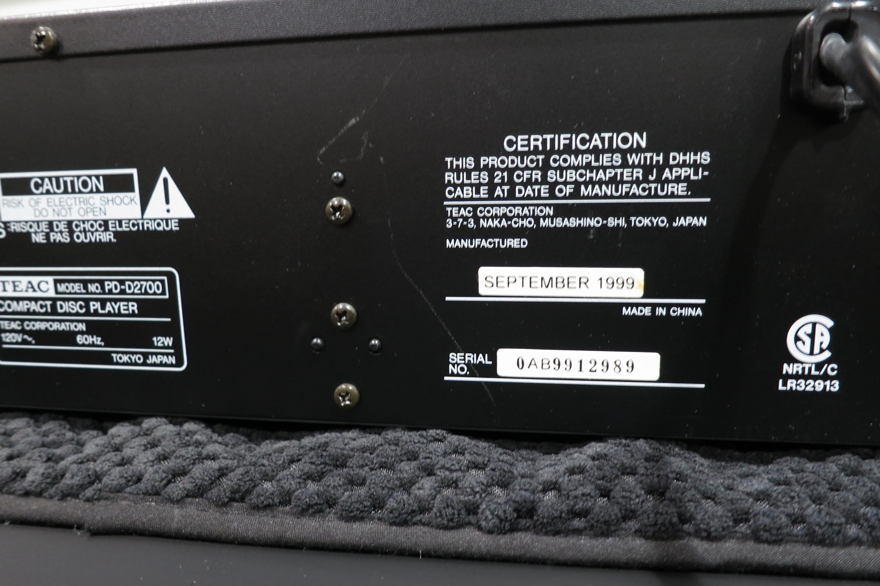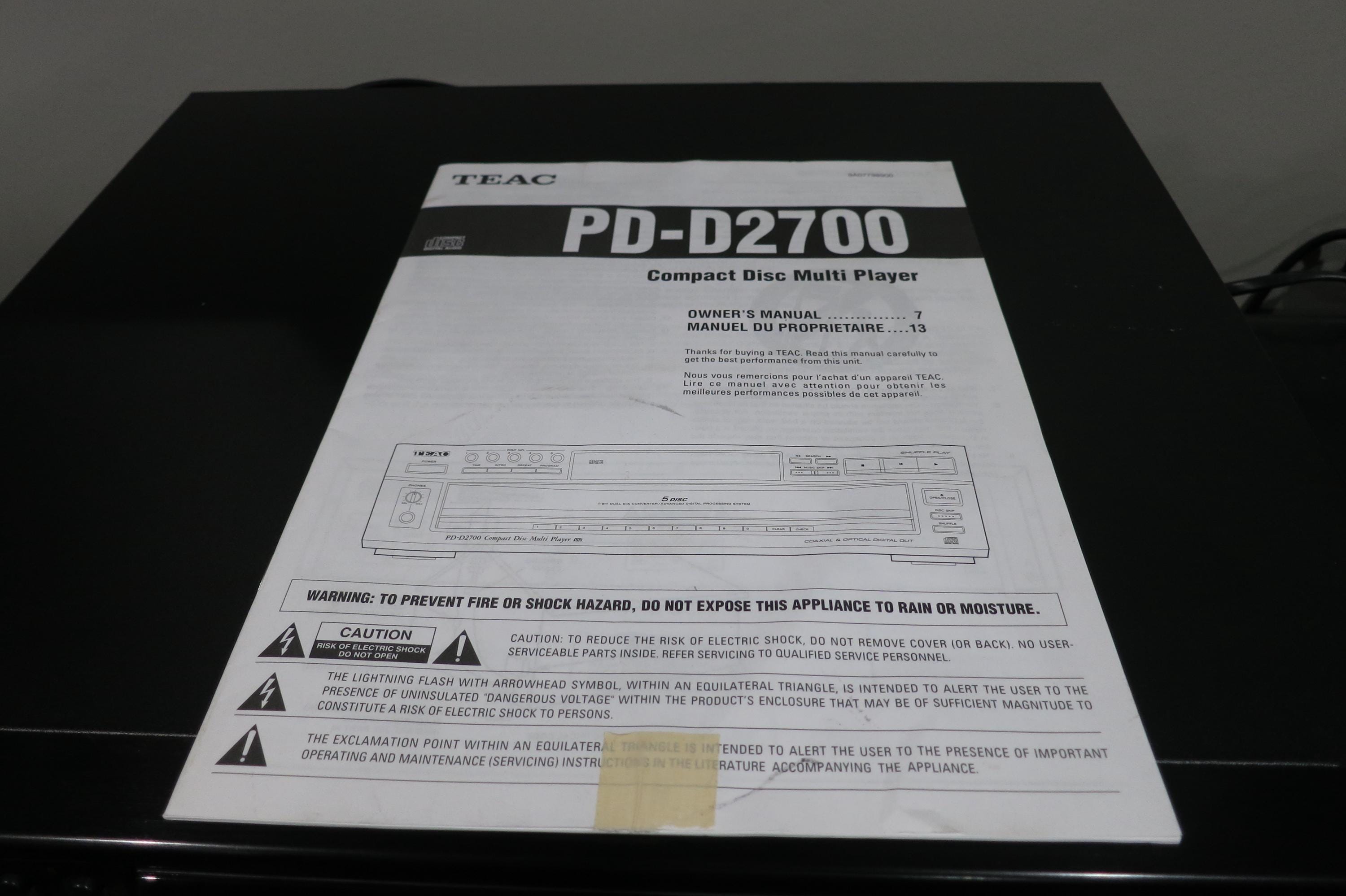 Vintage TEAC PD-D2700 CD Multi Player, 5-Disc Changer - 1999 Works Perfect.