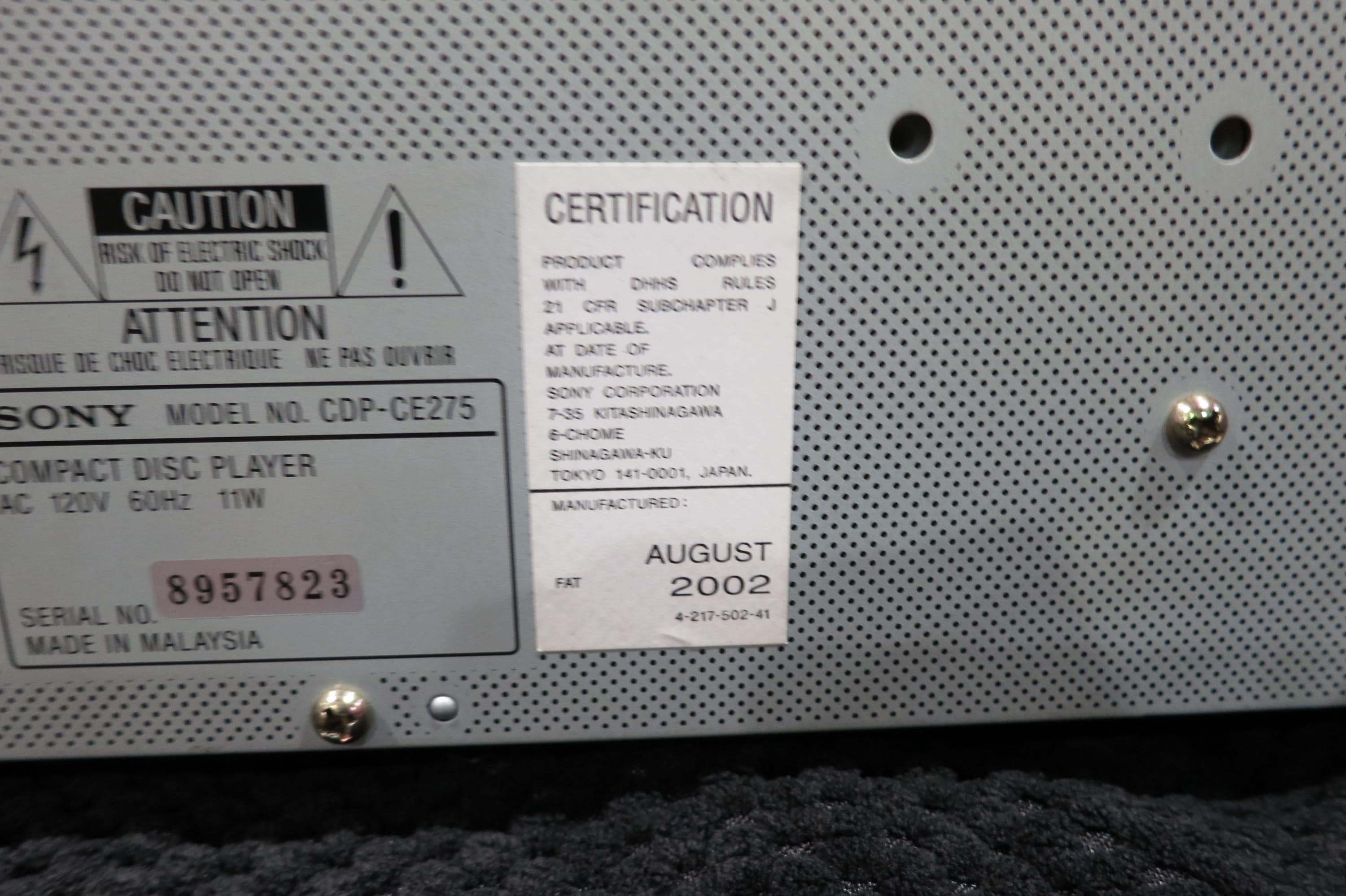 Sony CDP-CE275 Five Disc CD Changer Disc Ex-Change System High Density Converter