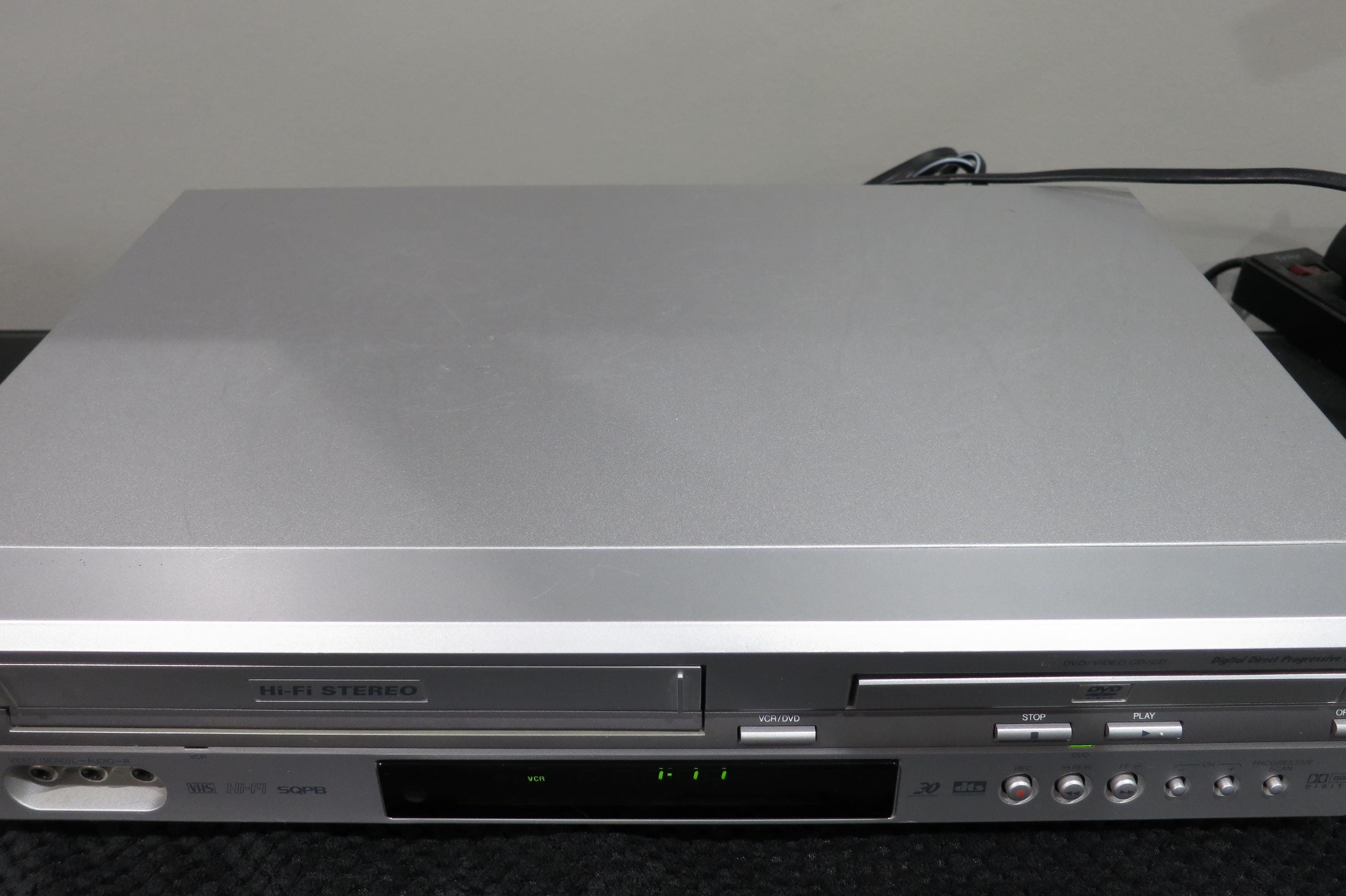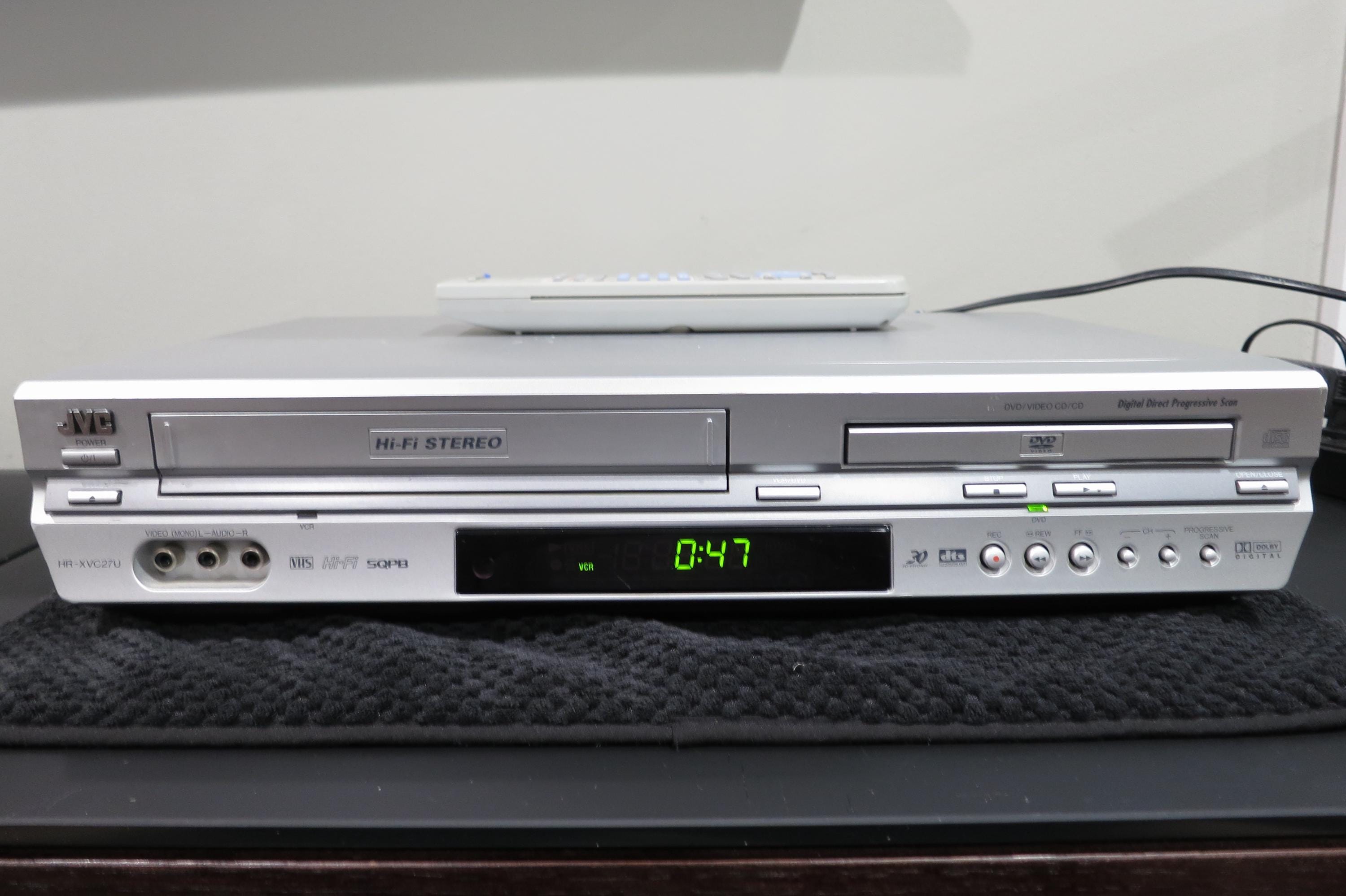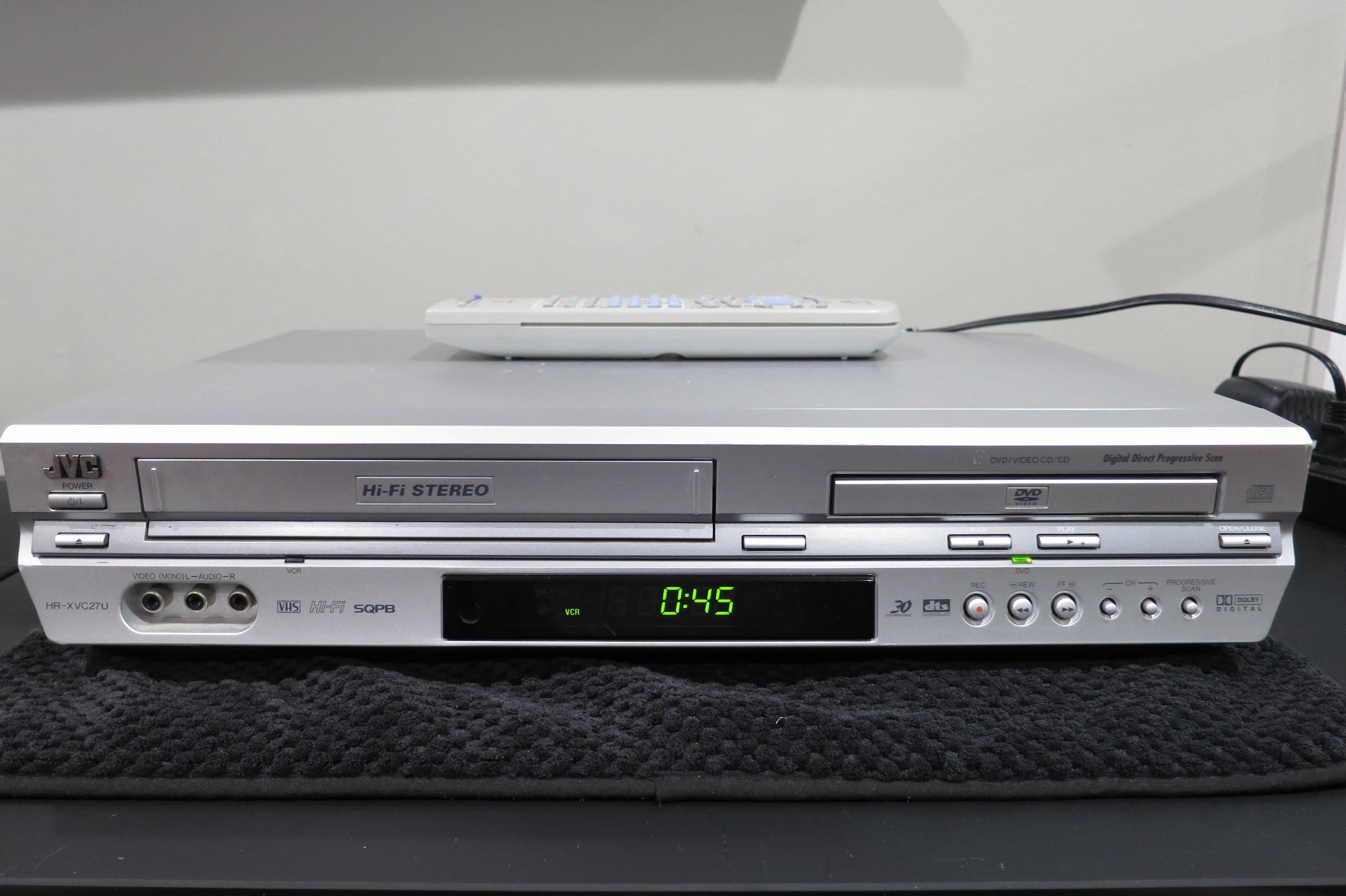 Vintage 2004 JVC VHS/Dvd/Cd Player Silver Modern Retro Design with Remote