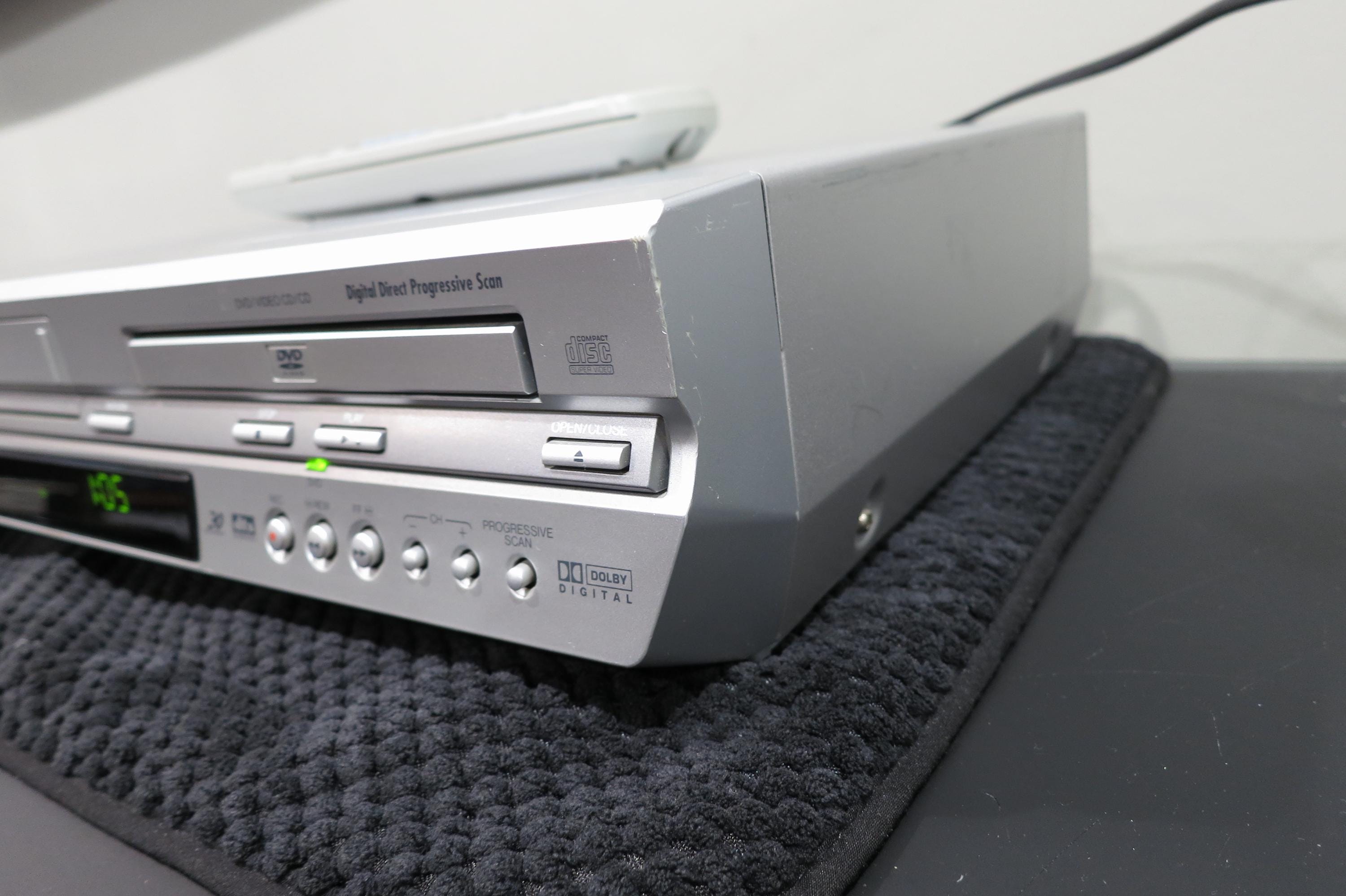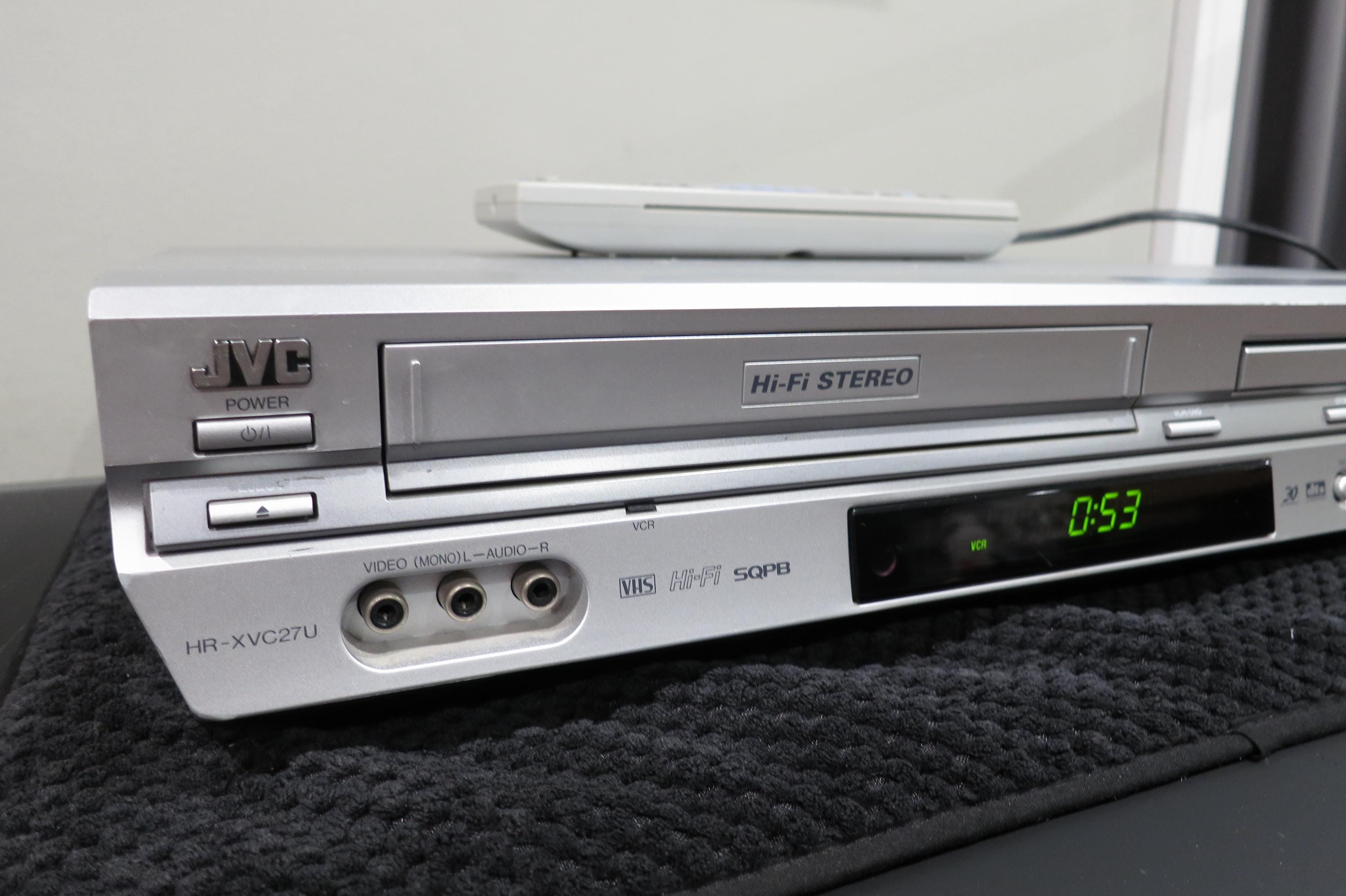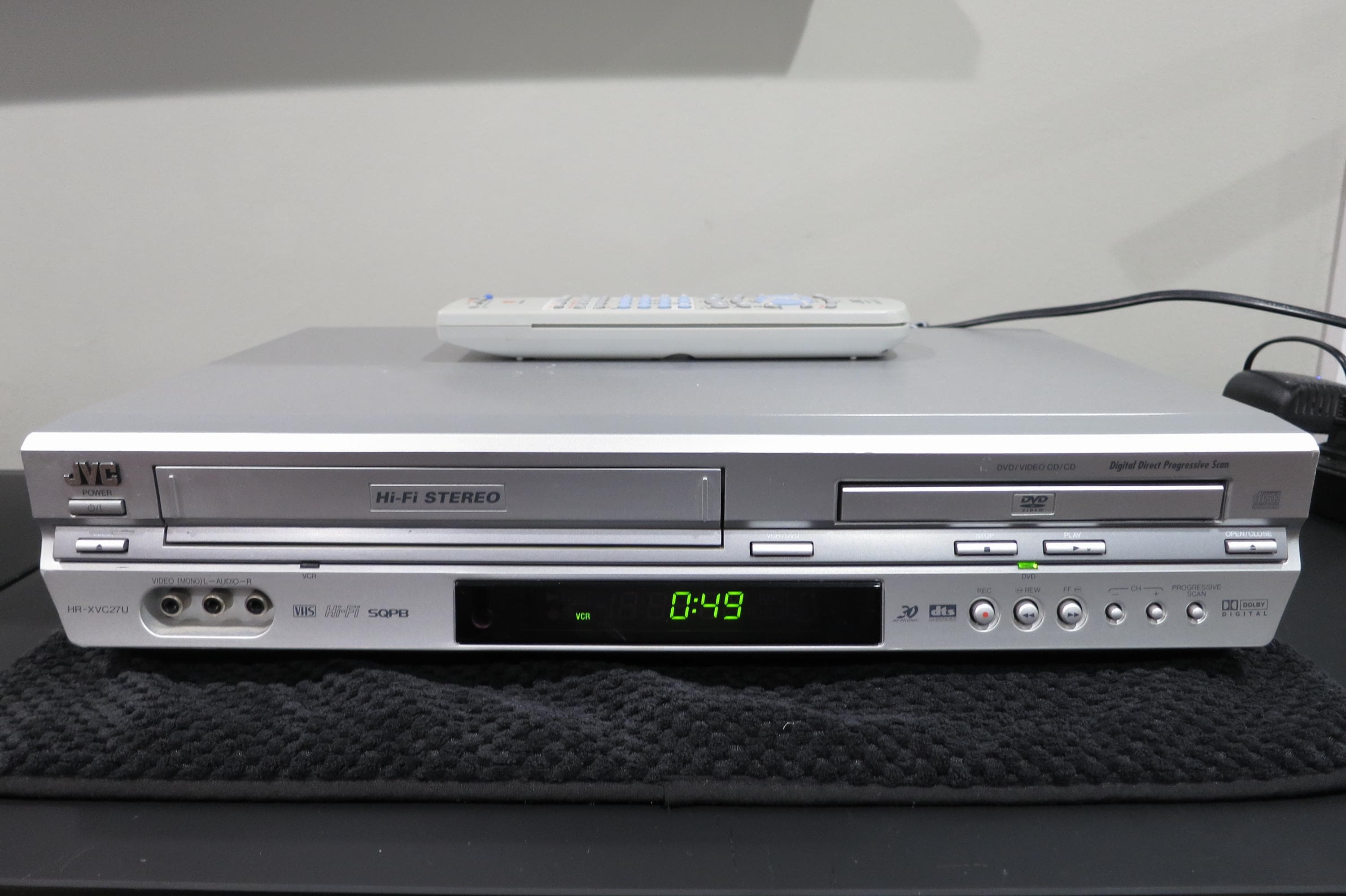 Vintage 2004 JVC VHS/Dvd/Cd Player Silver Modern Retro Design with Remote