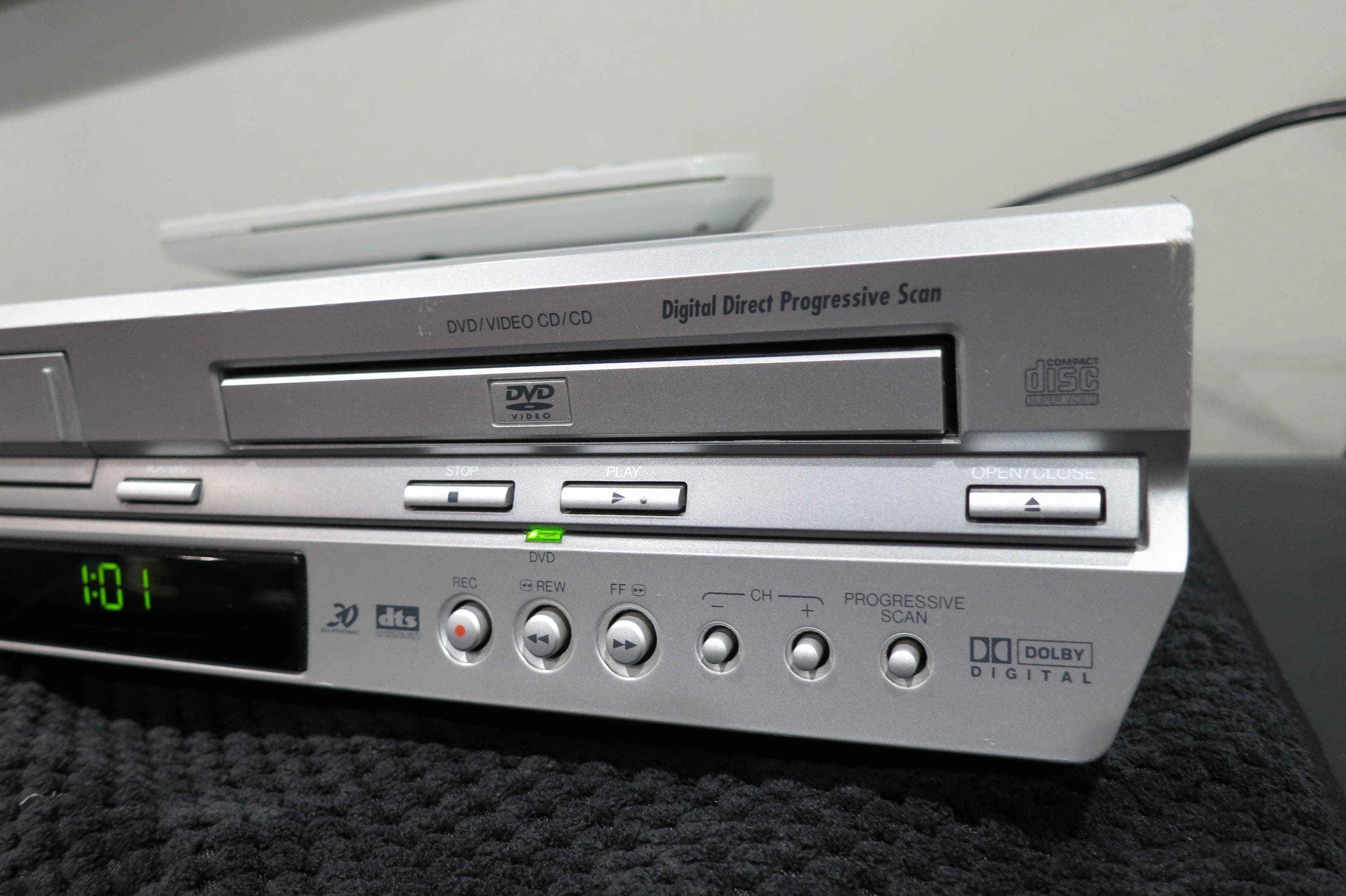 This unit plays perfect, Unpack and plug it in! This one has a scuffed up top of the case, thus a little cheaper than the others we have. Does not affect the operation in any way. We offer free shipping on all orders over 35 dollars.