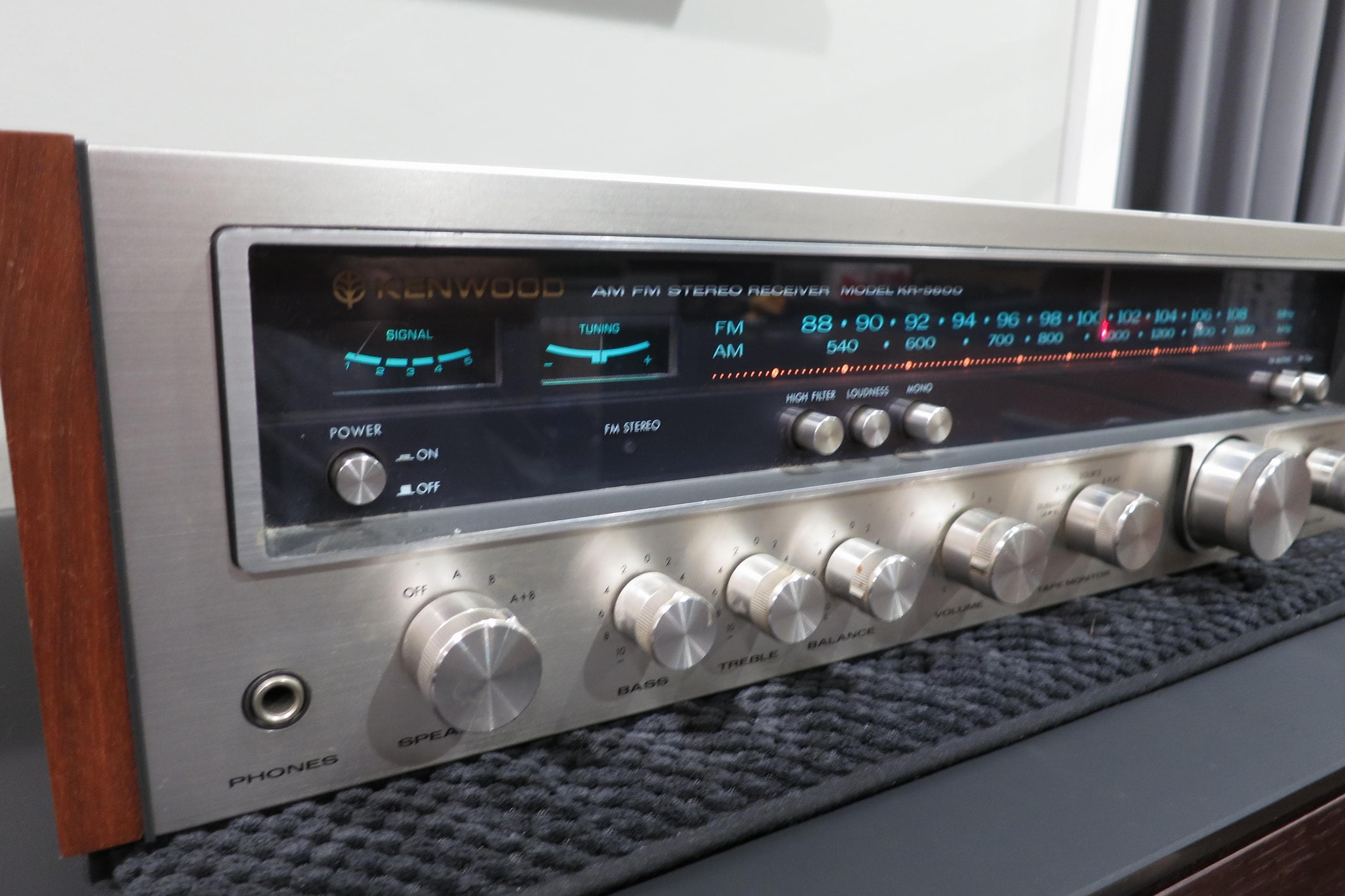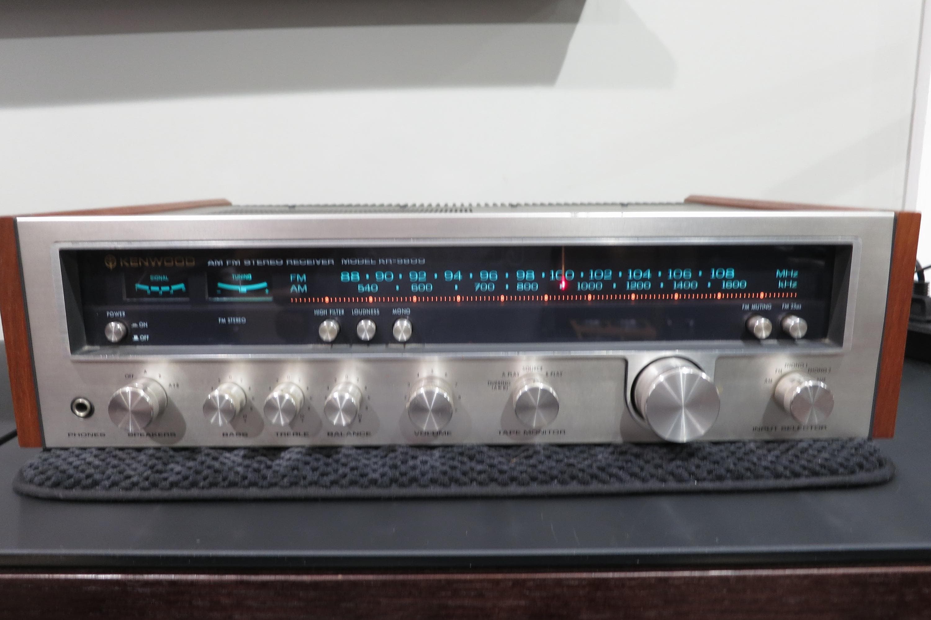Vintage 1976-77 Kenwood KR-5600 Stereo Receiver Walnut Case Aqua Lighting