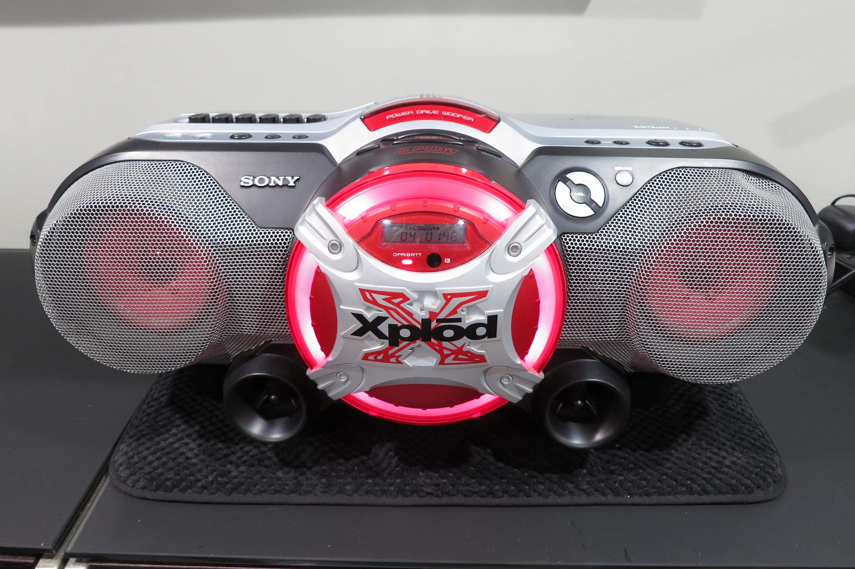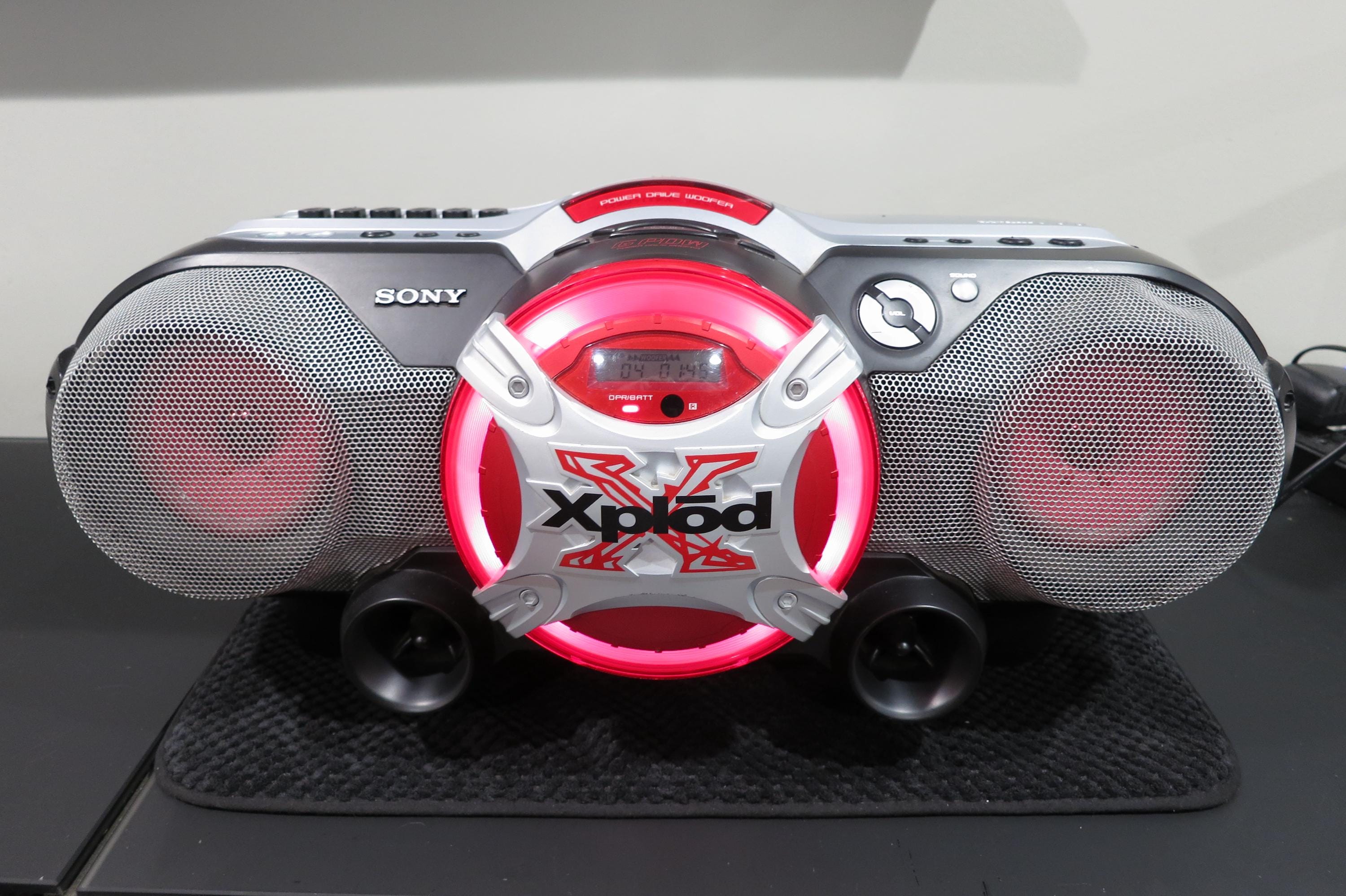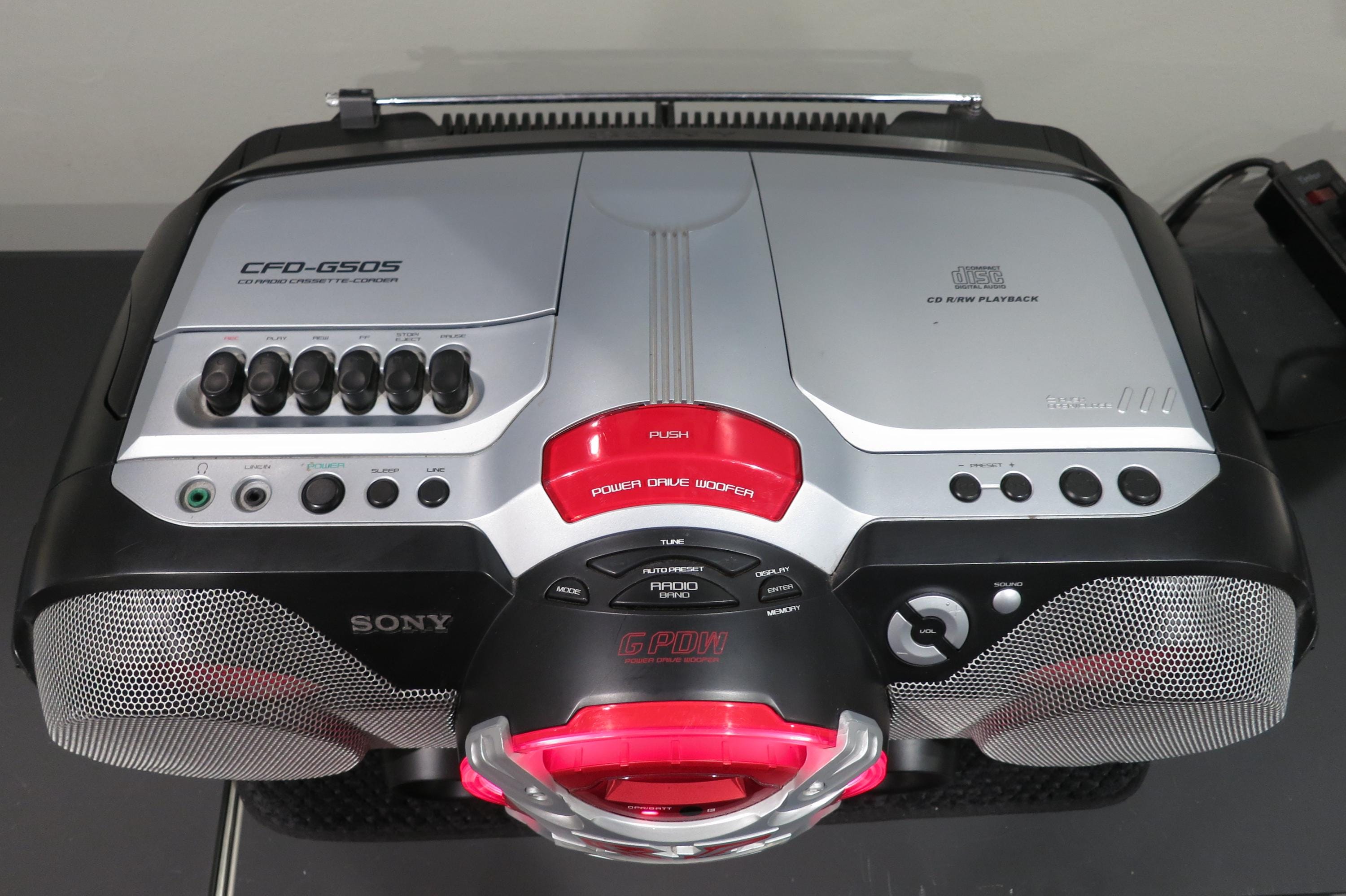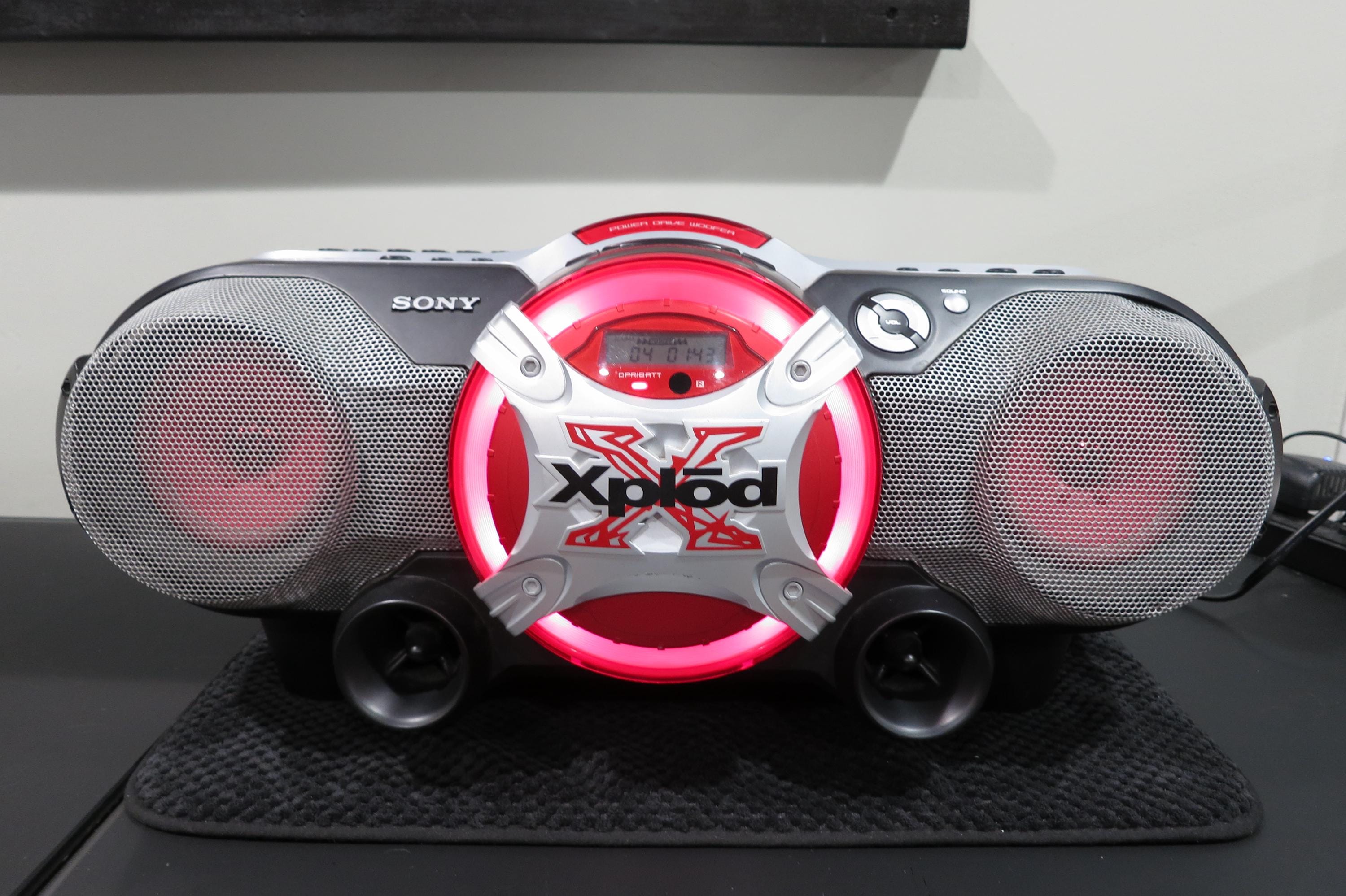 Vintage 1990's Sony X-Plod CD Radio Cassette Corder CFD-G700PC Mega Boom Box Superior Sound. The sound from this thing is amazing!! It is quite large and heavy, so you won't want to carry it on your shoulder, runs off of batteries or the included power supply. Great for use in the home or on the go!
