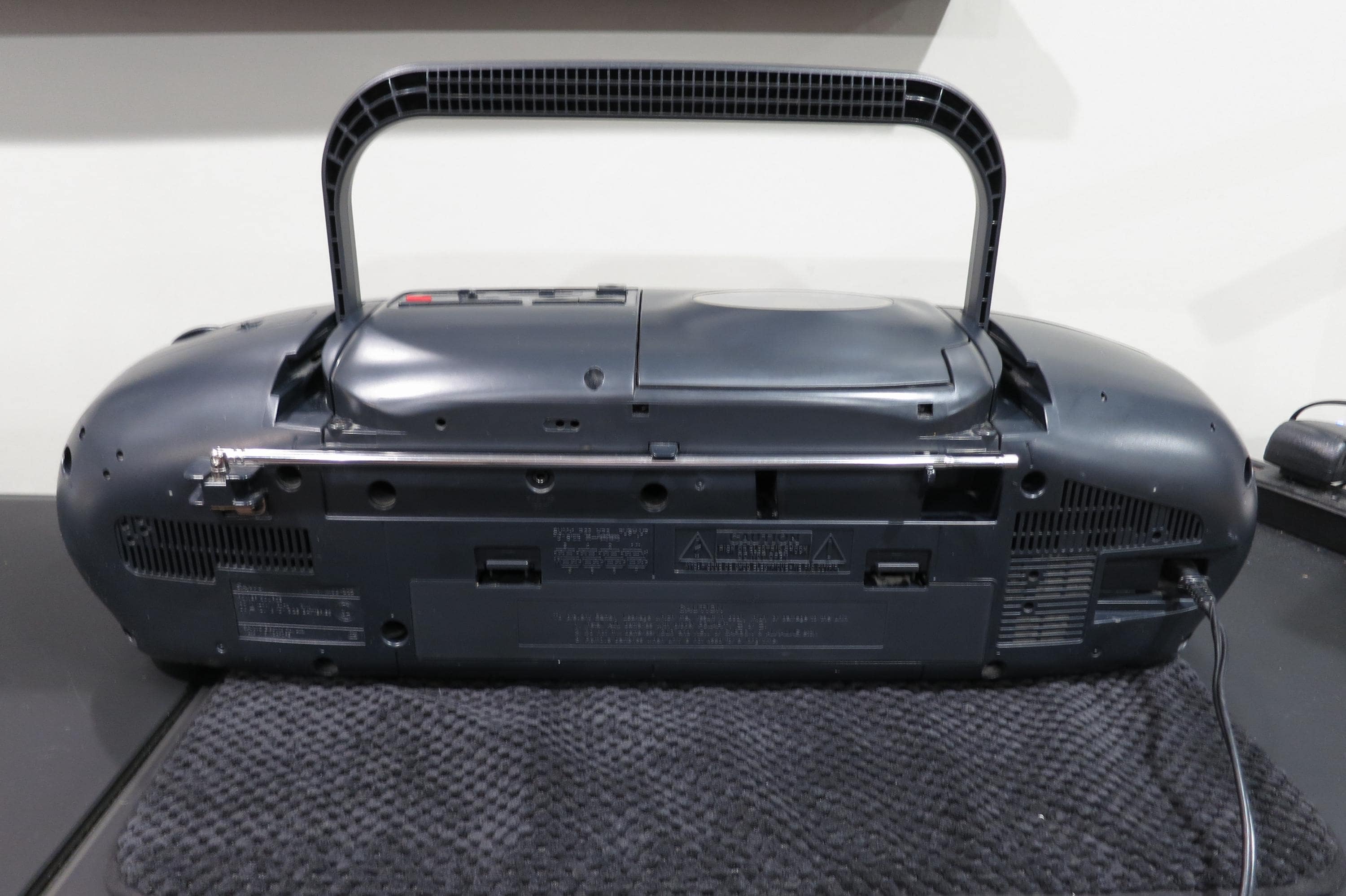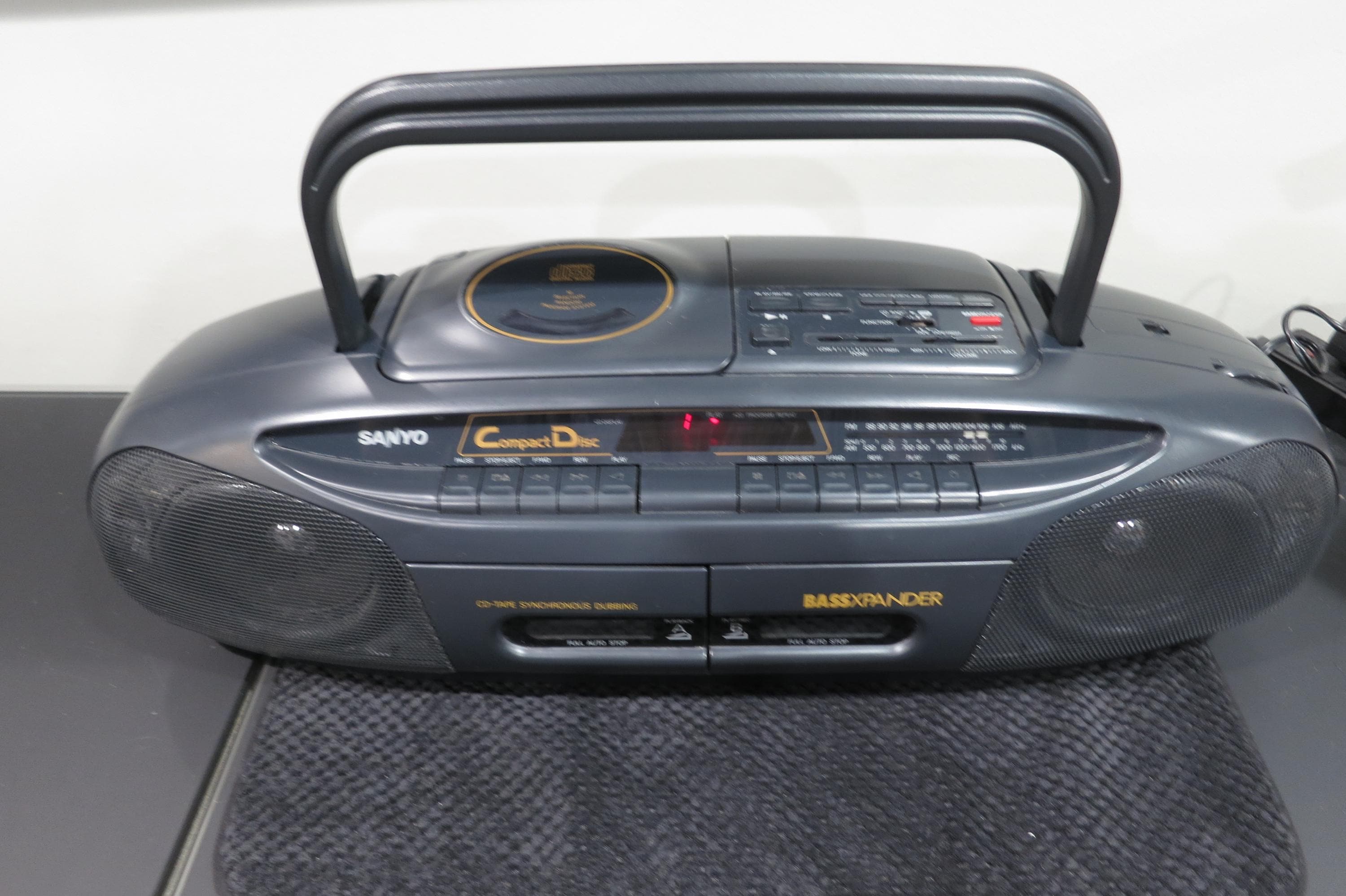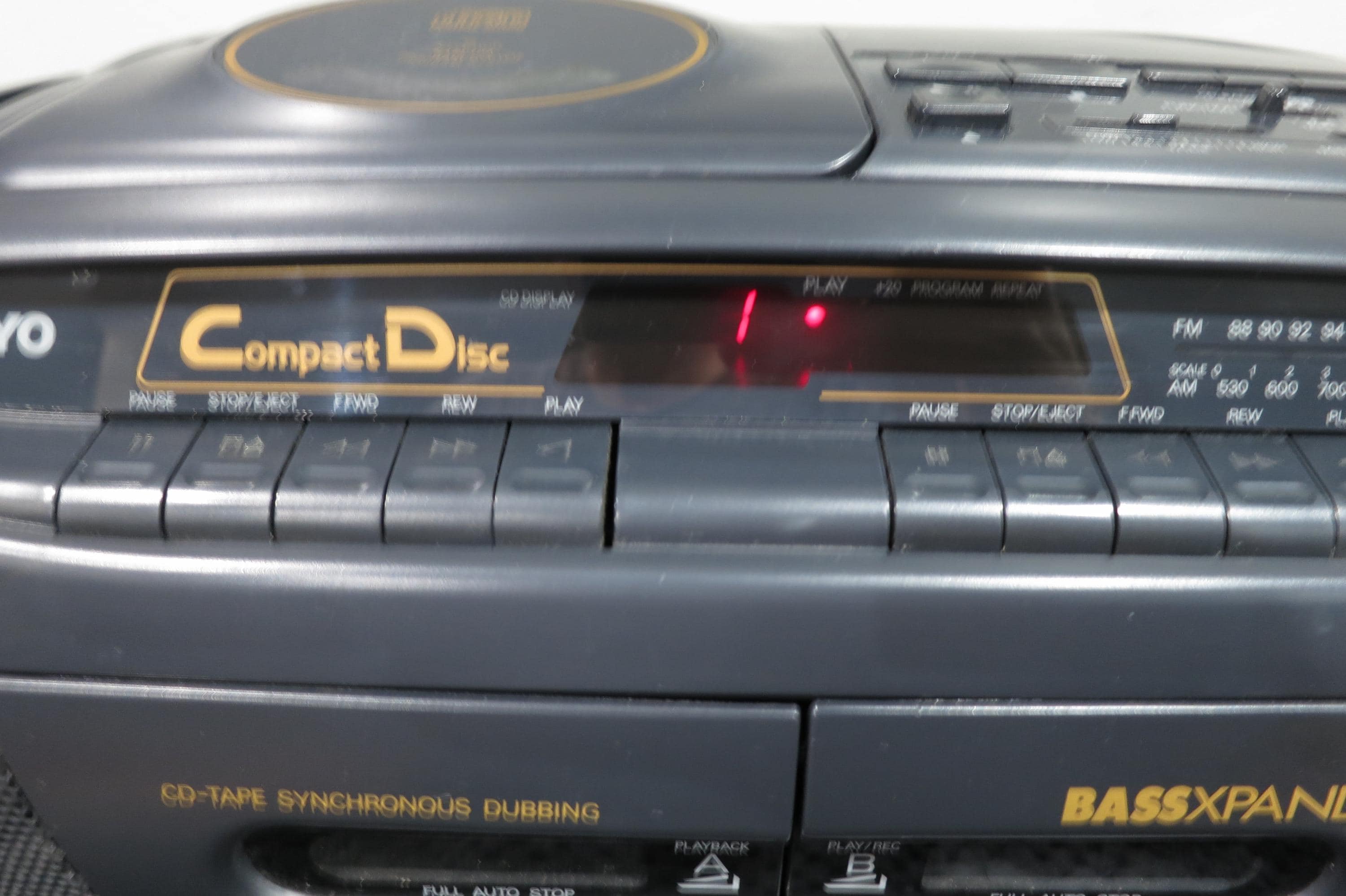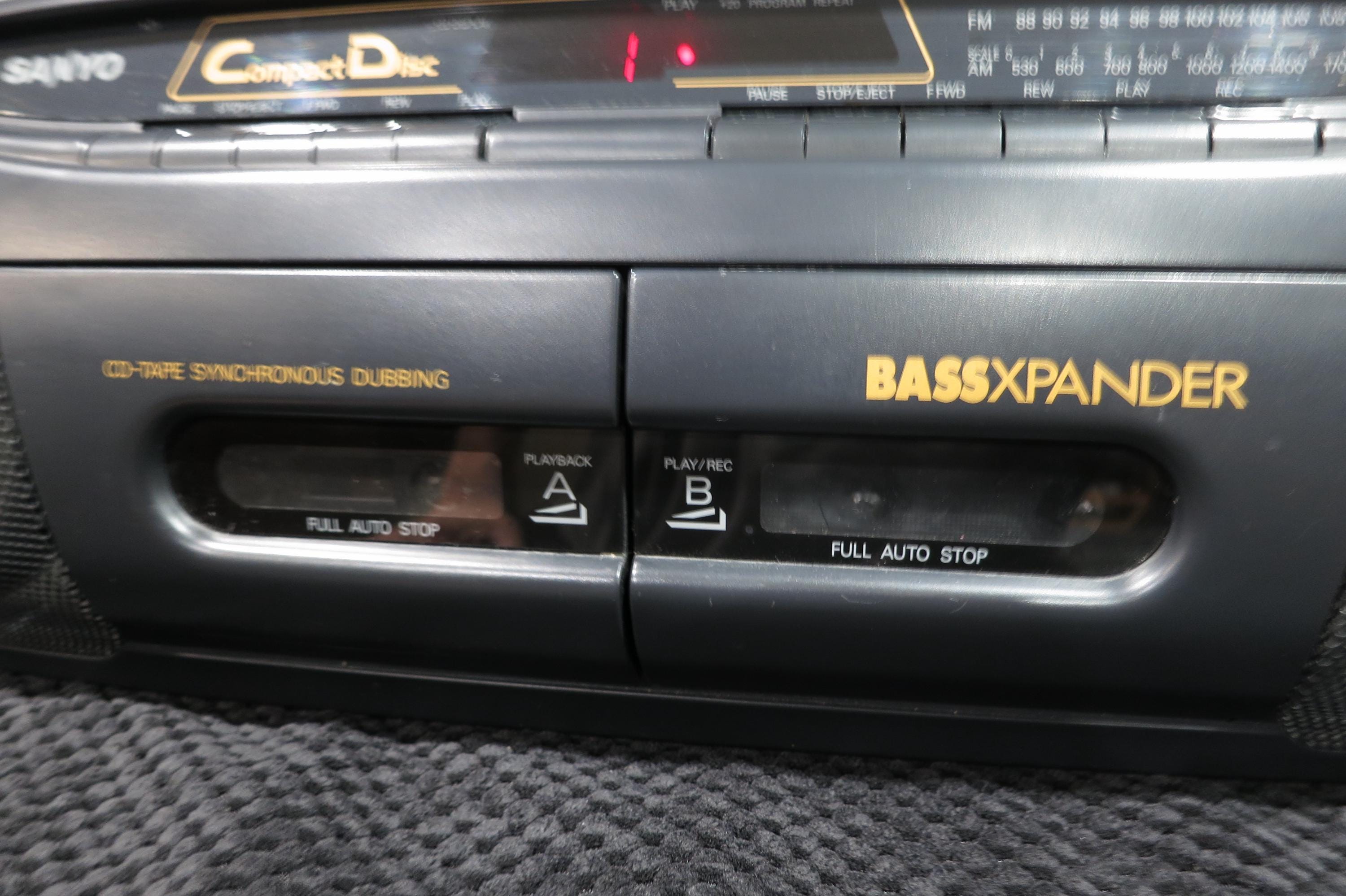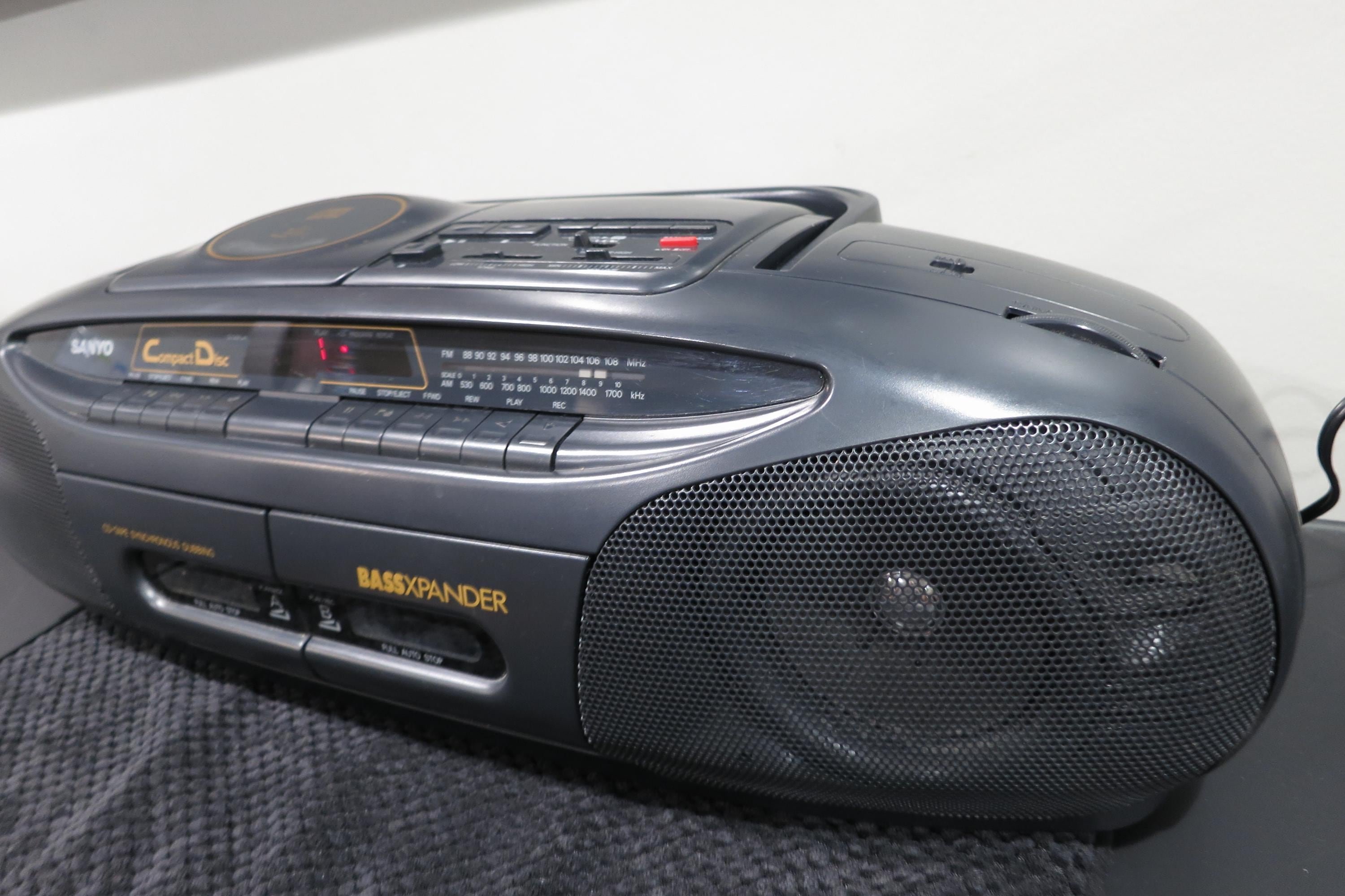 Vintage Sanyo MCD-Z2 CD Radio Cassette Recorder Portable Boom Box Works Perfect. Very nice vintage stereo!! Features CD with digital display, tone control, cassette player with full auto stop, cd-tape synchronous dubbing, good antenna and carrying handle. Runs off of batteries or the included power cord. All the functions work perfect!! Unpack, plug in and play!! Measures 24 inches wide, 9 inches deep and 7 1/4 inches tall.