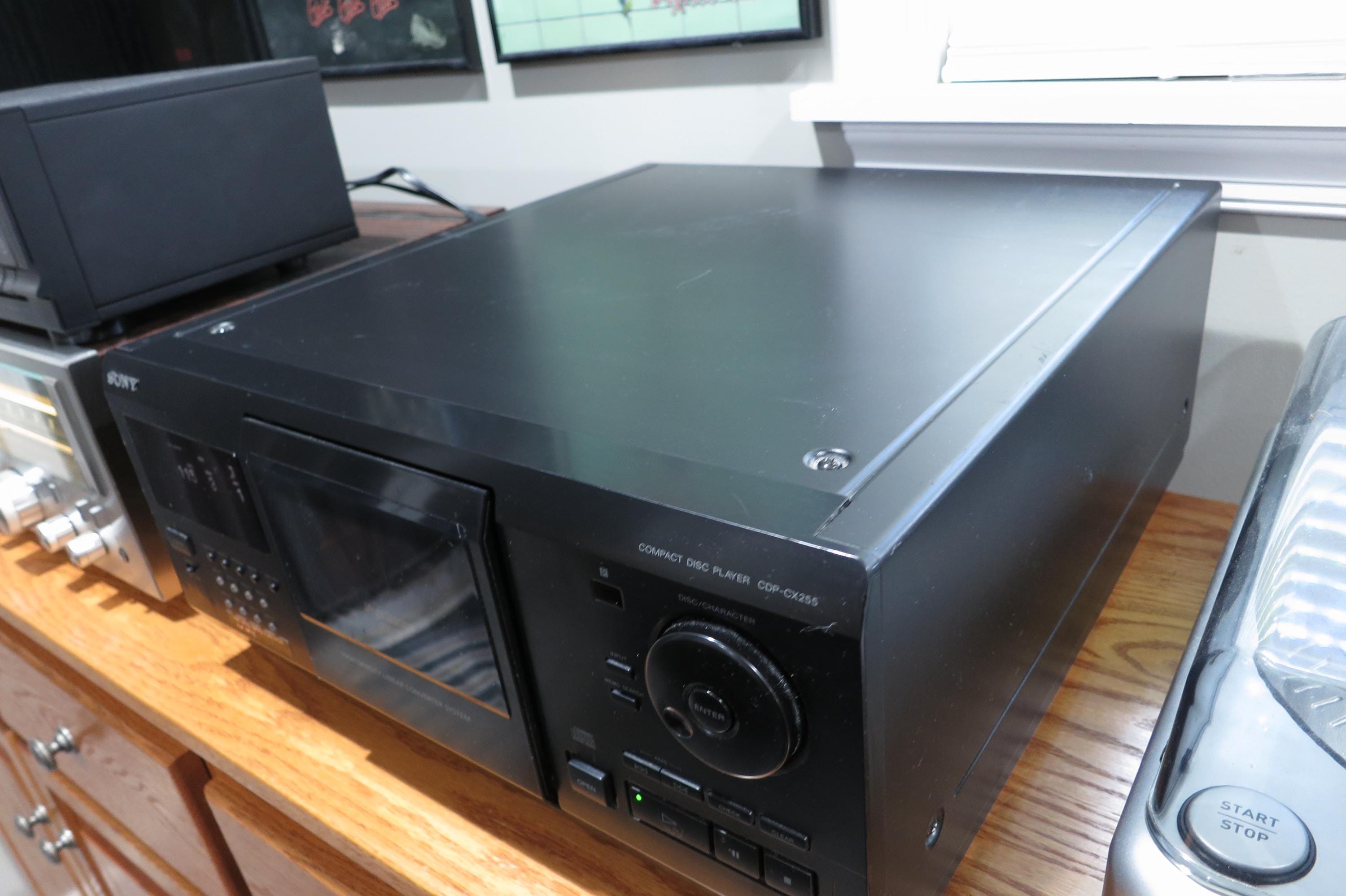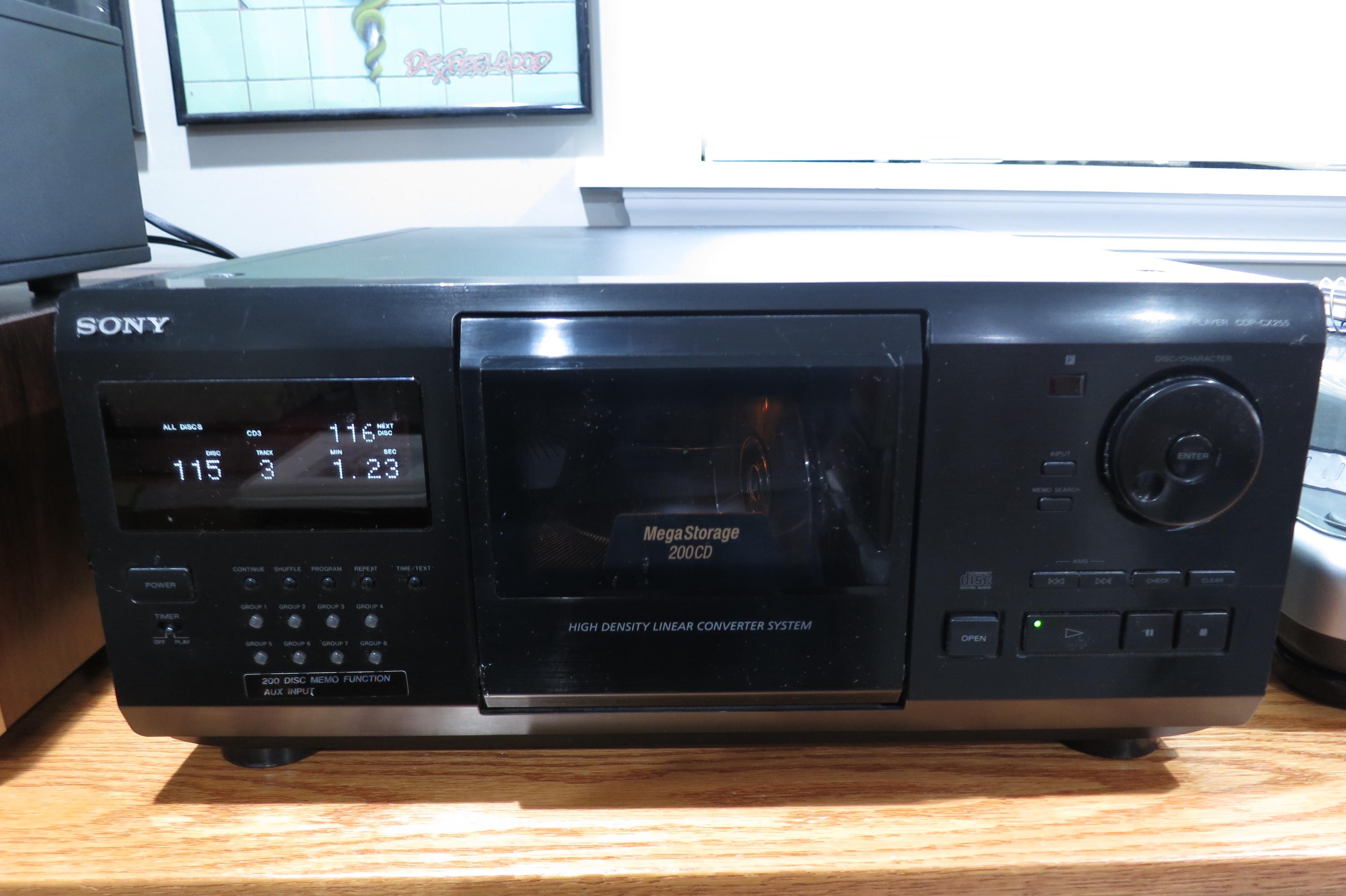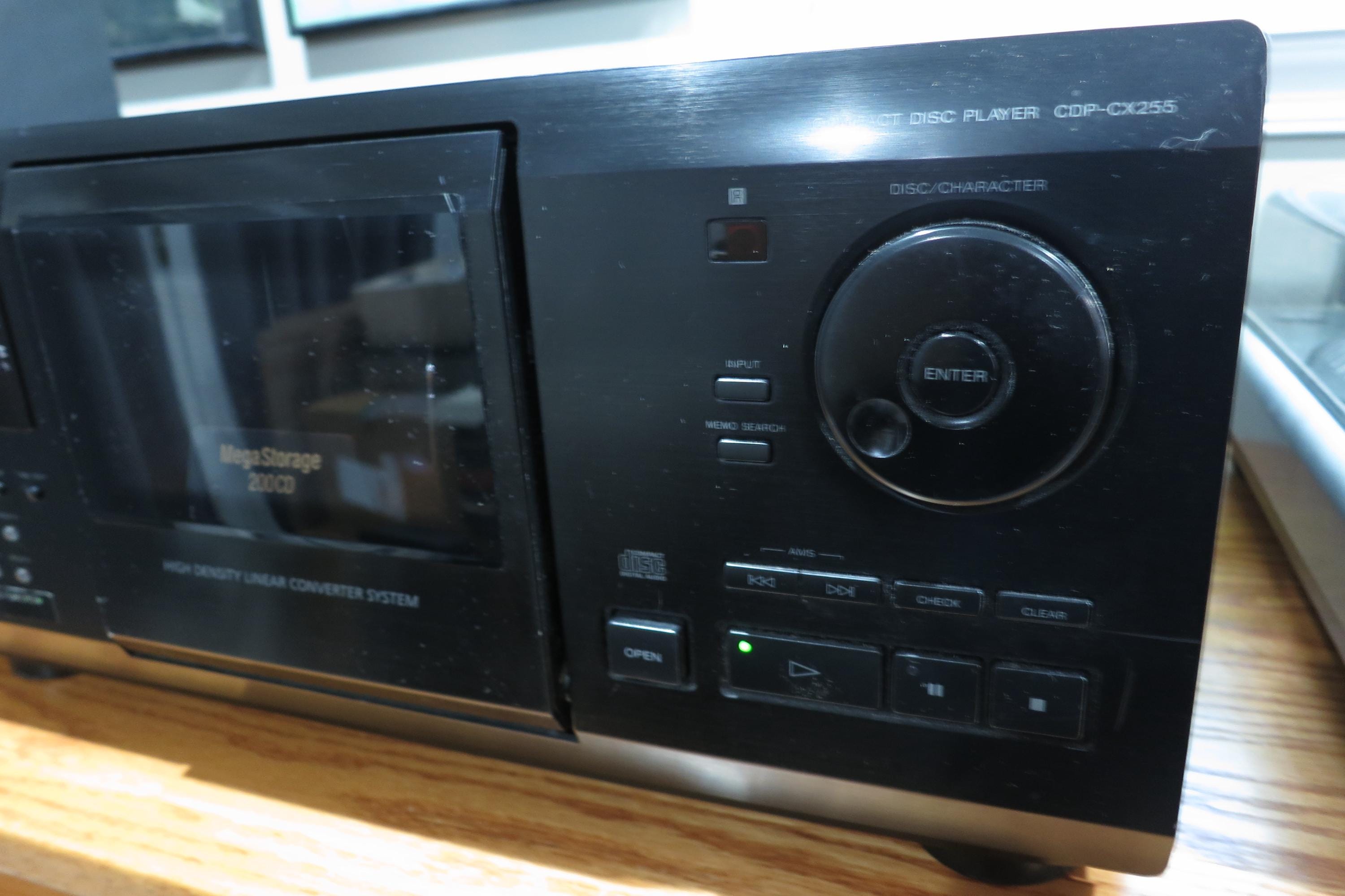 Vintage Sony CDP-CX230 Mega CD Changer Mini Jukebox Excellent Condition Works Perfect Holds 200 Discs. Of course is also a player, hooks directly into your receiver through the A/V Cables. (We are happy to include a set if you need them!!)