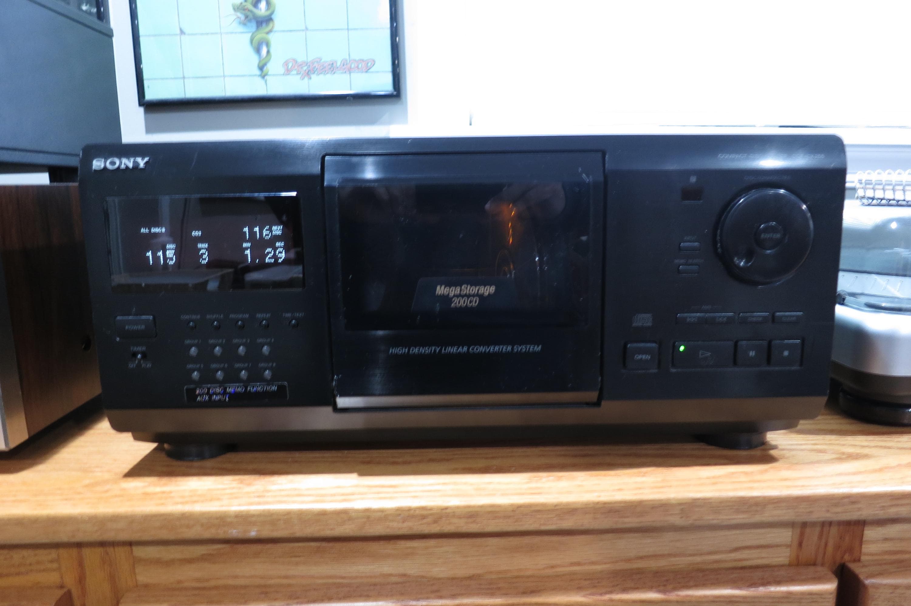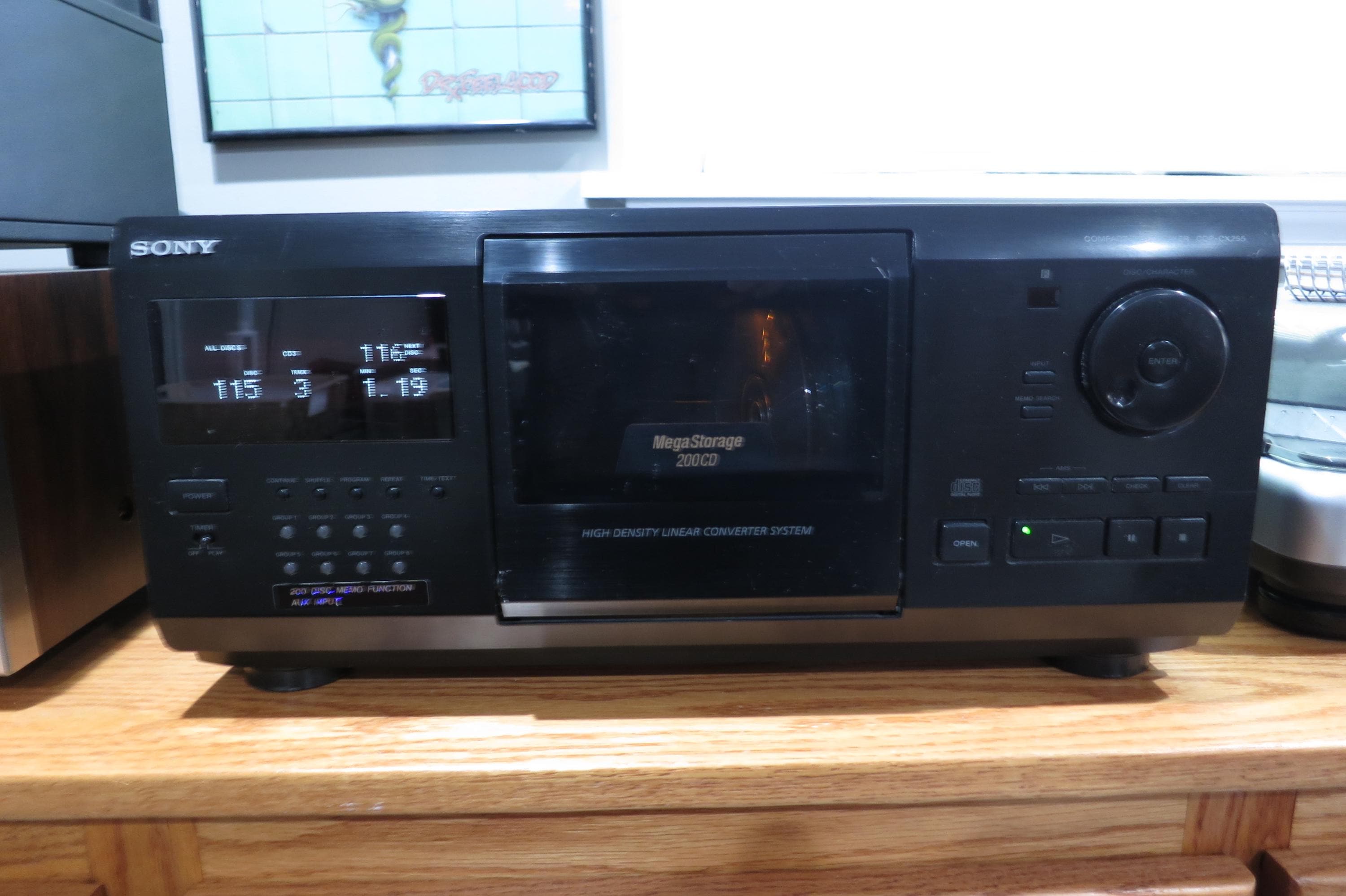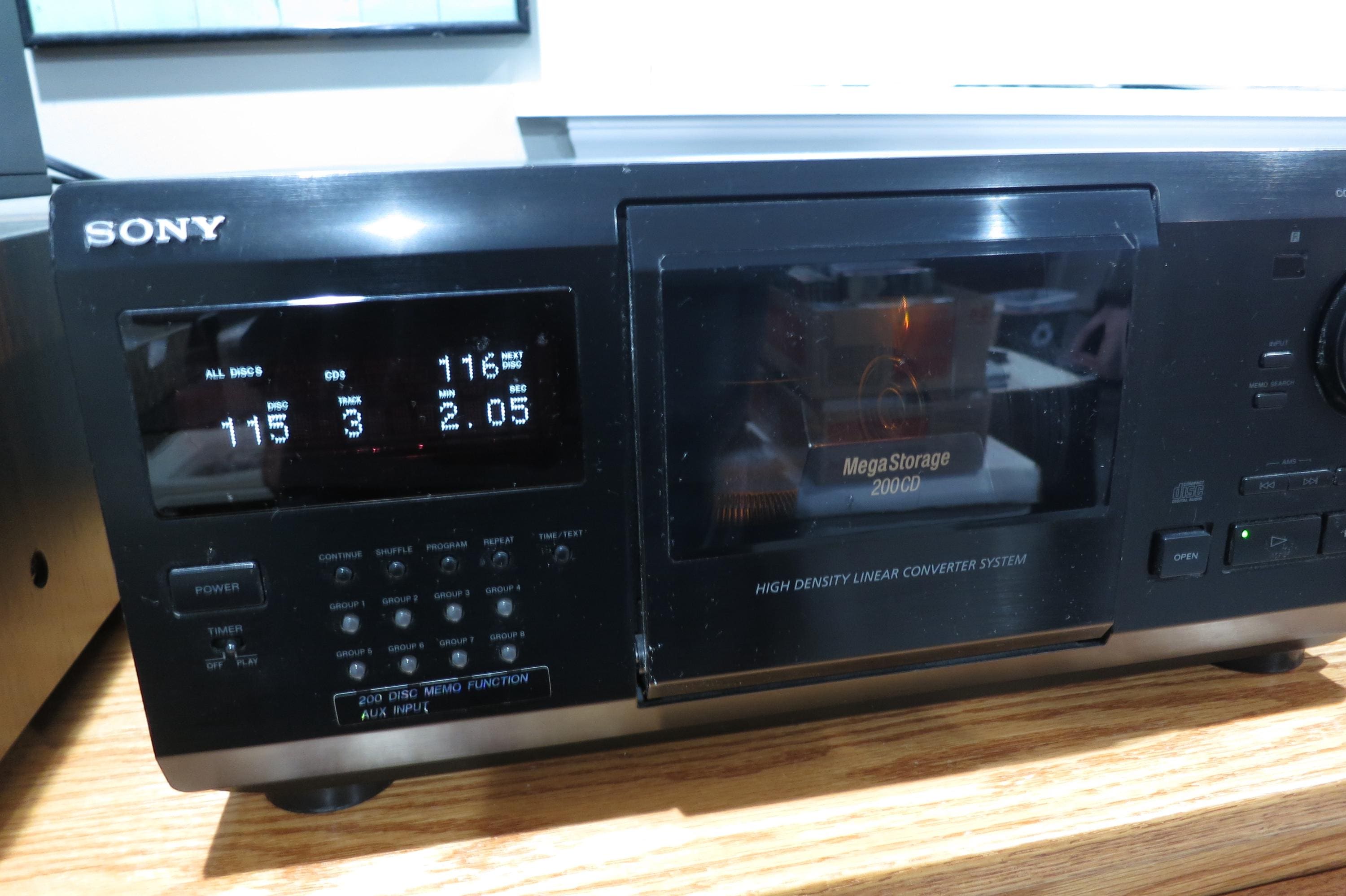 Vintage Sony CDP-CX230 Mega CD Changer Mini Jukebox Excellent Condition Works Perfect Holds 200 Discs. Of course is also a player, hooks directly into your receiver through the A/V Cables. (We are happy to include a set if you need them!!)