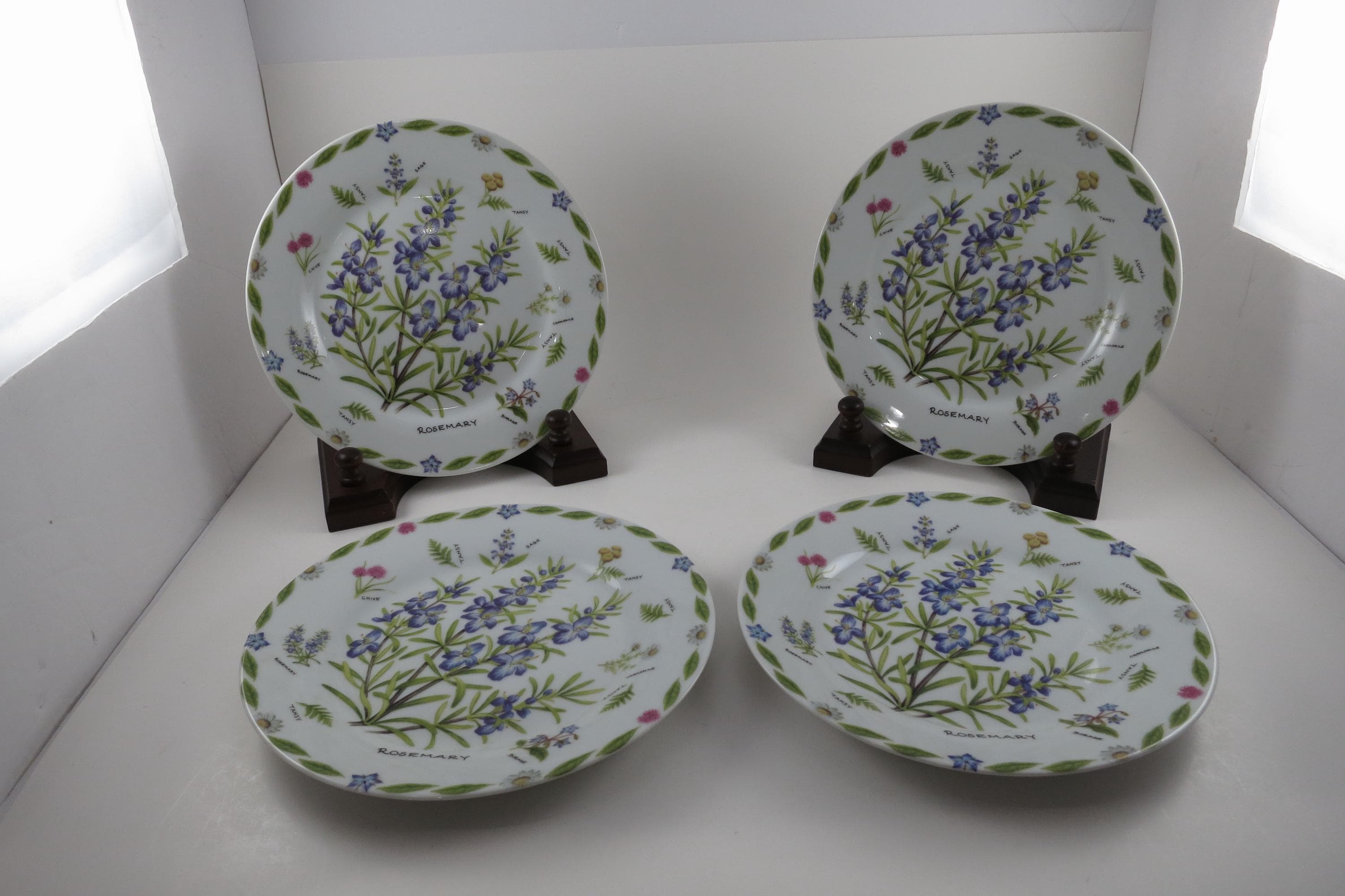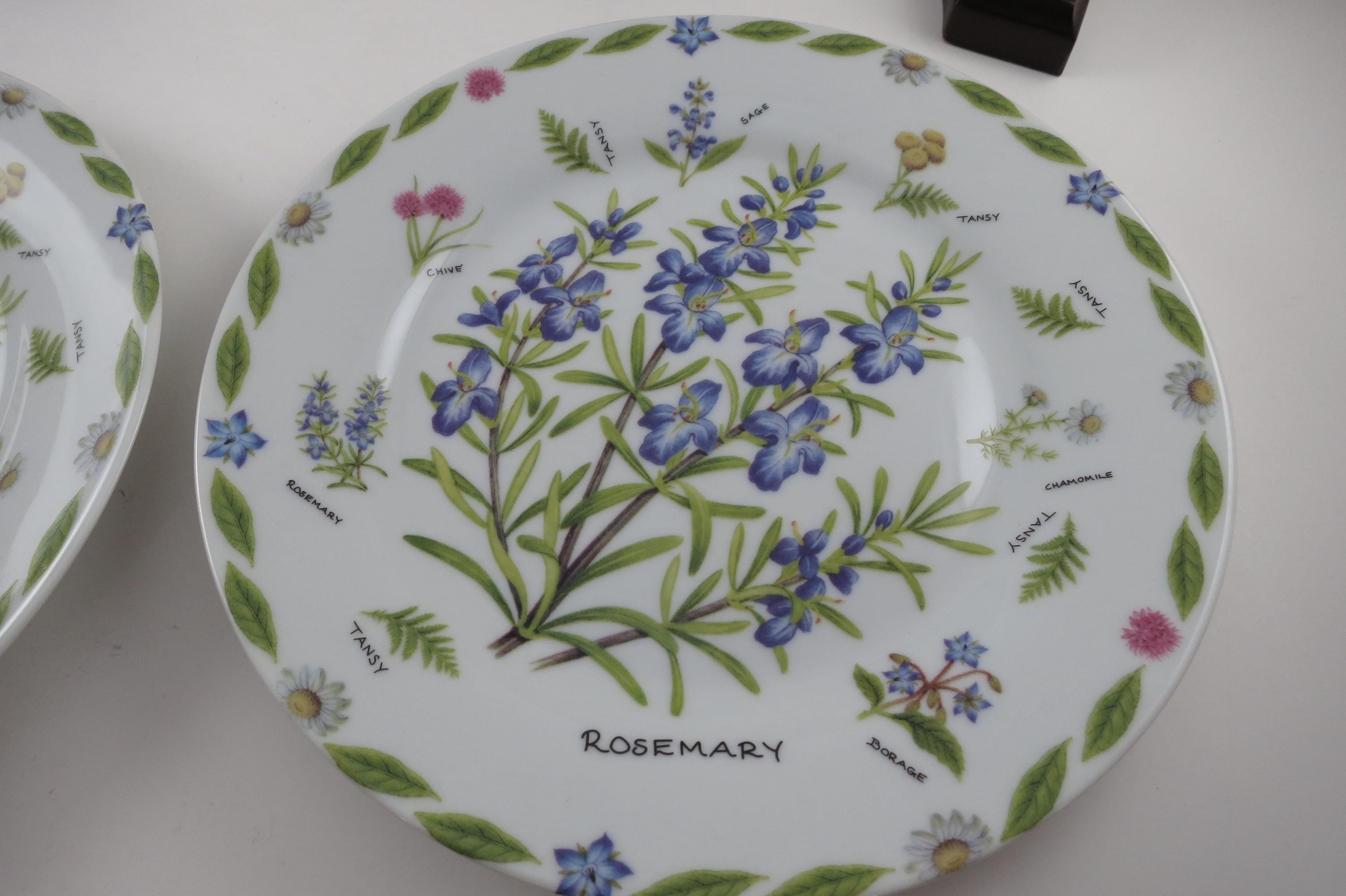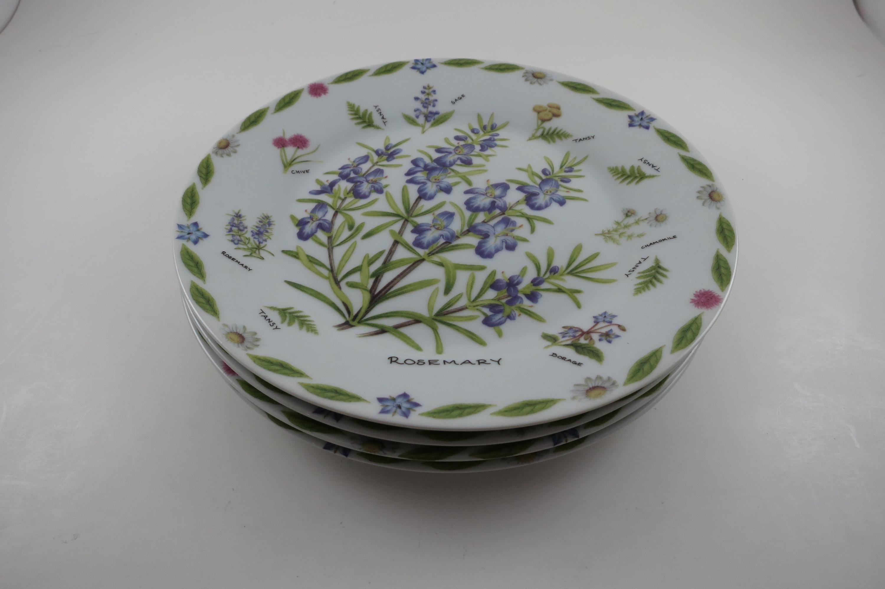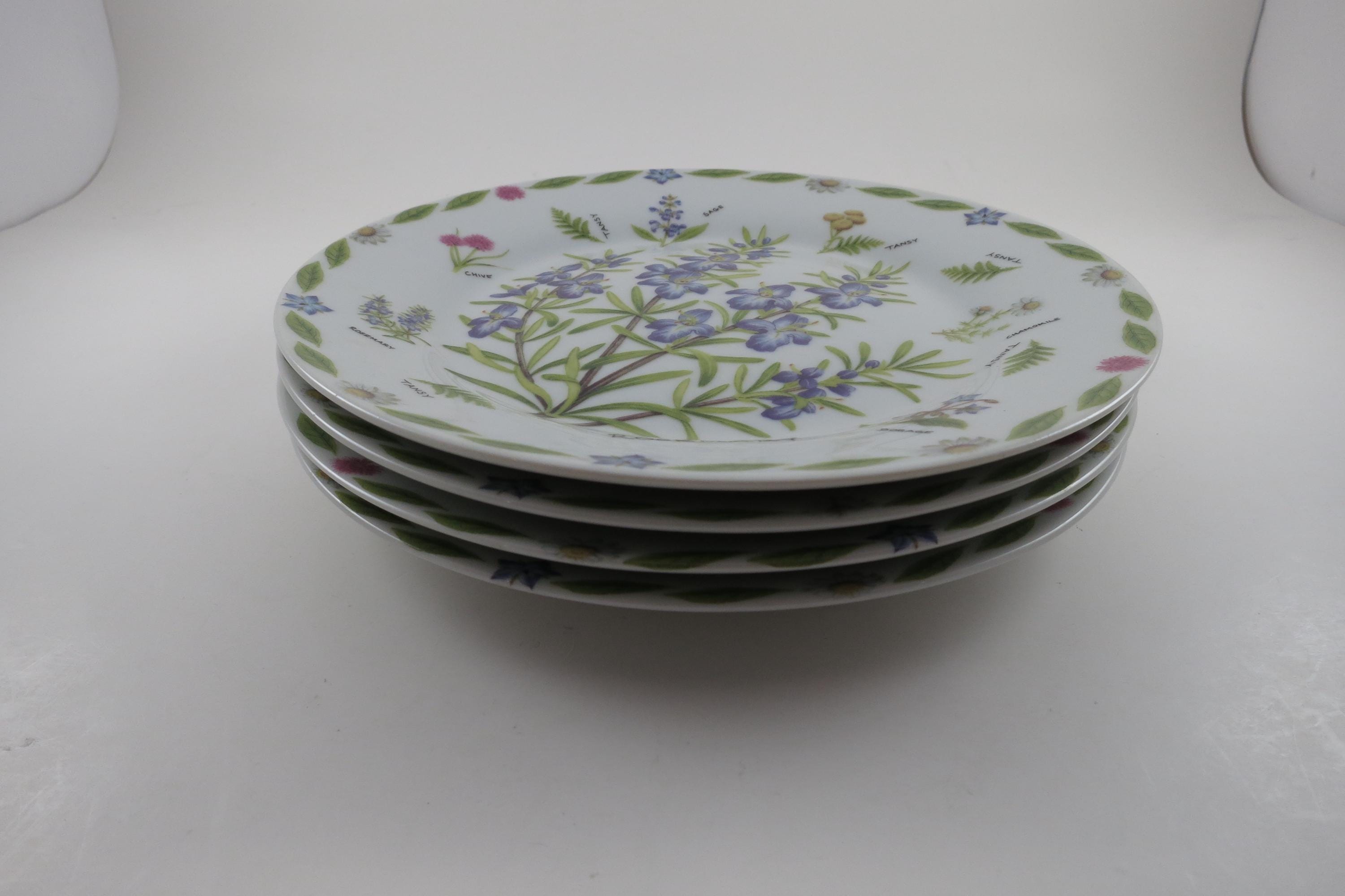 Set of Four Vintage 1997 Kent Pottery 7 1/2 Inch Herb Plates.