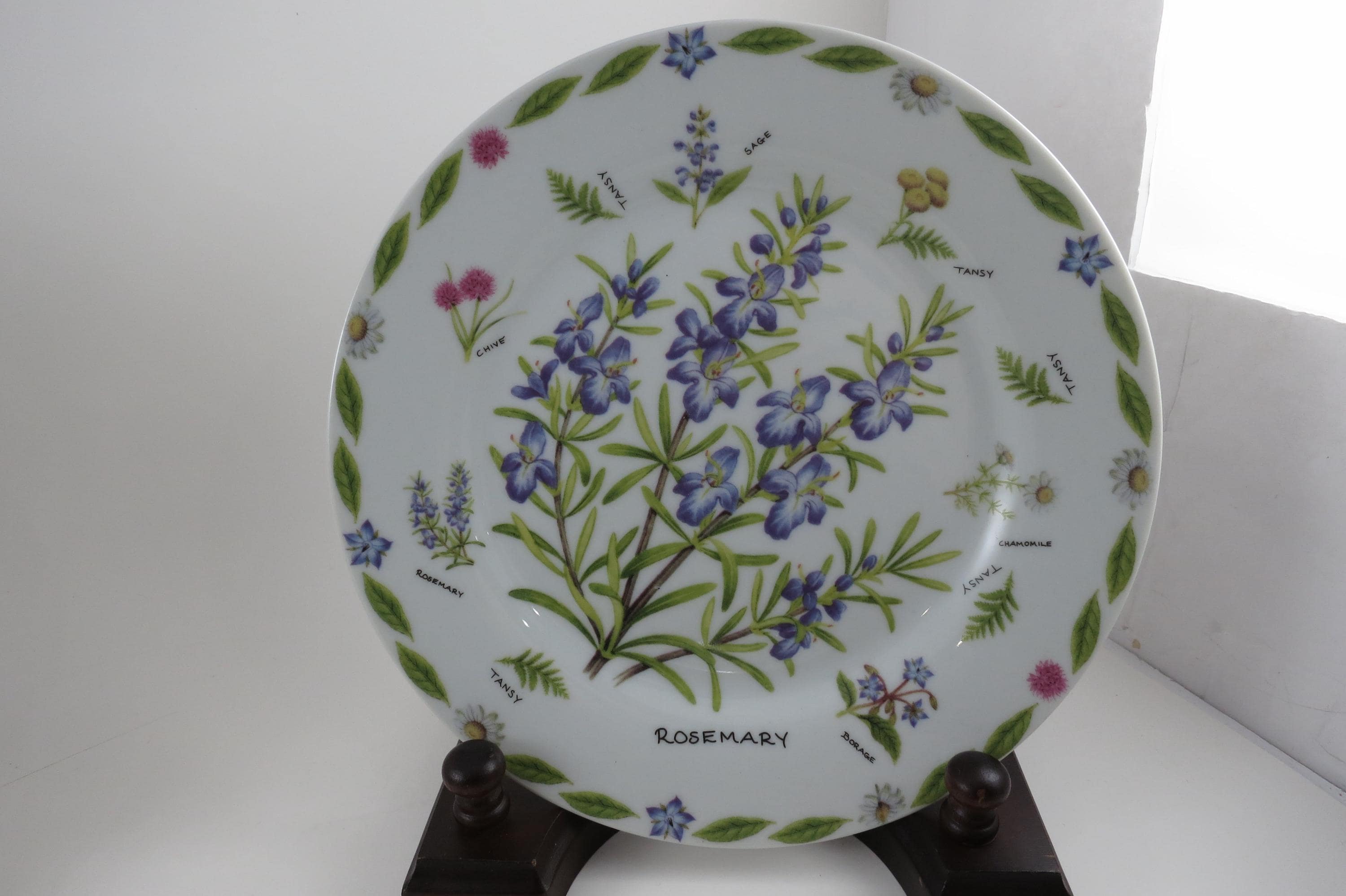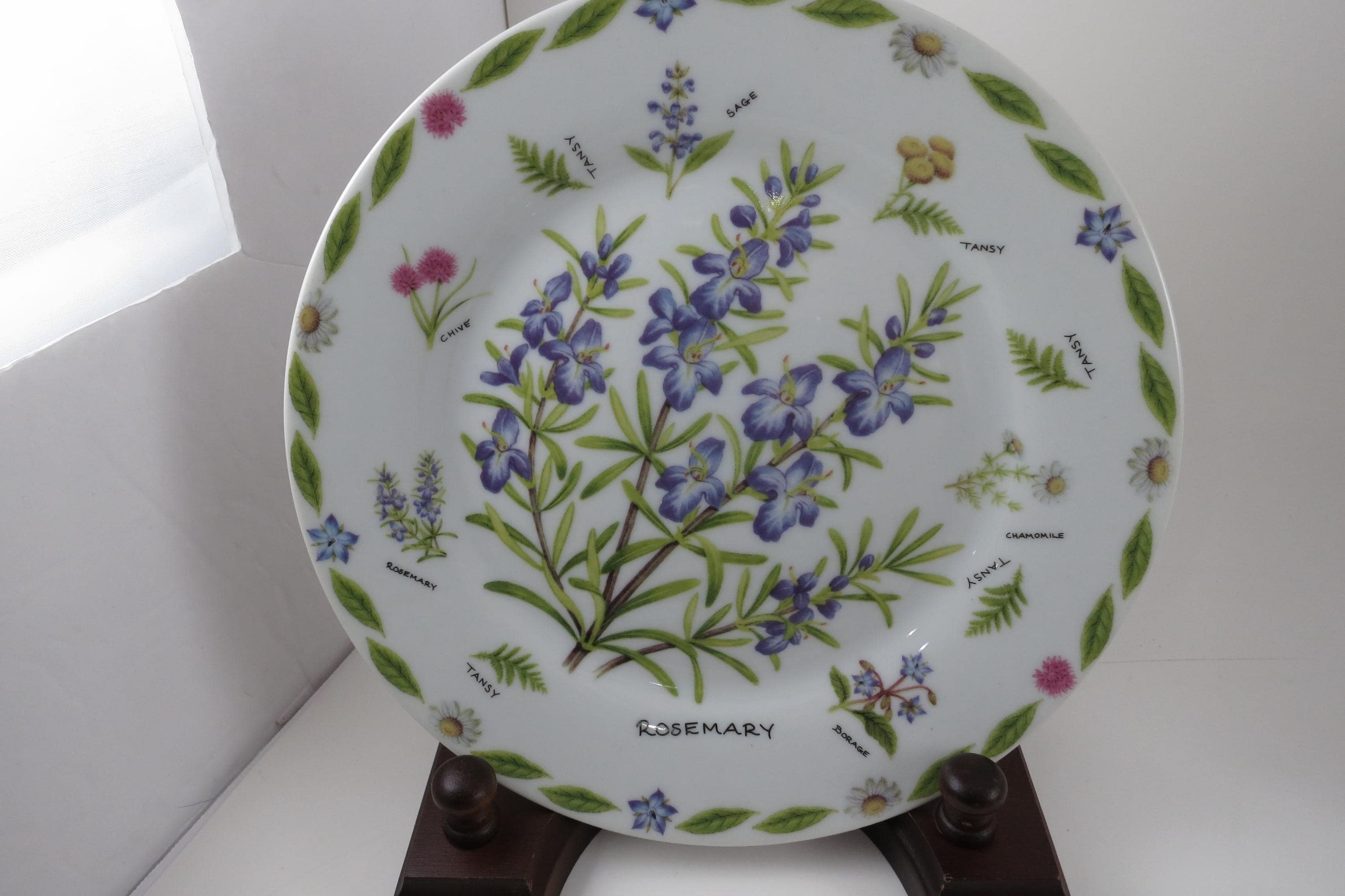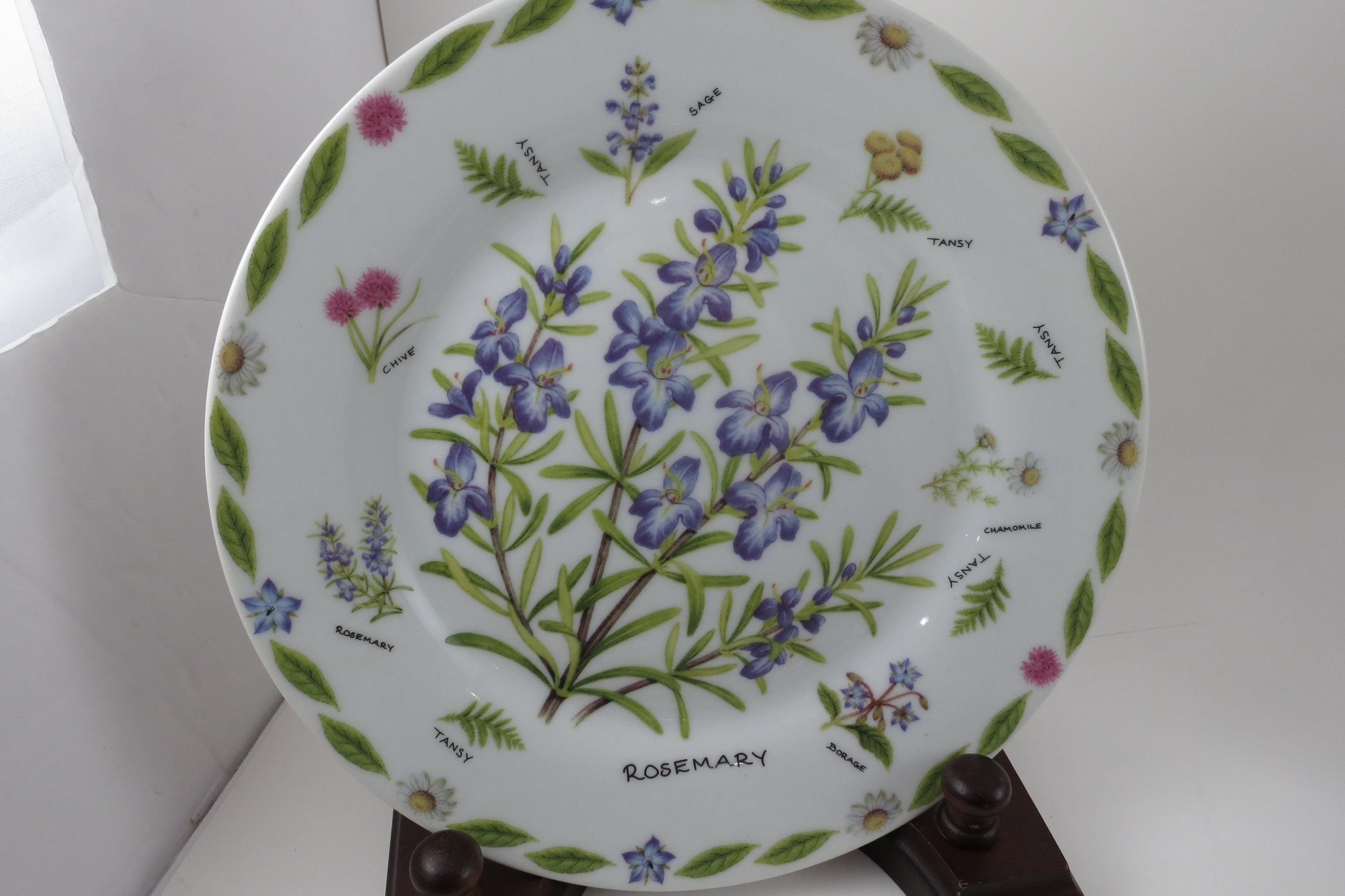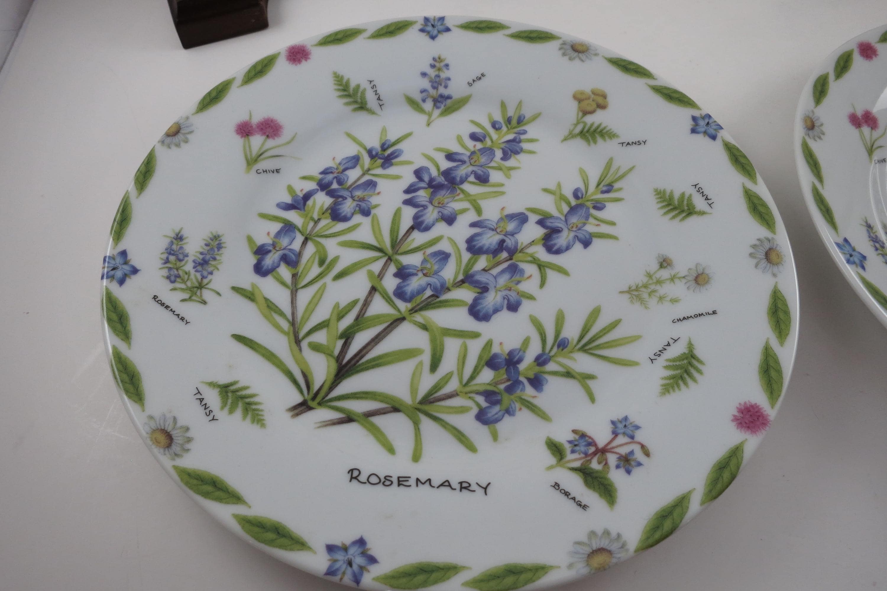 Set of Four Vintage 1997 Kent Pottery 7 1/2 Inch Herb Plates.