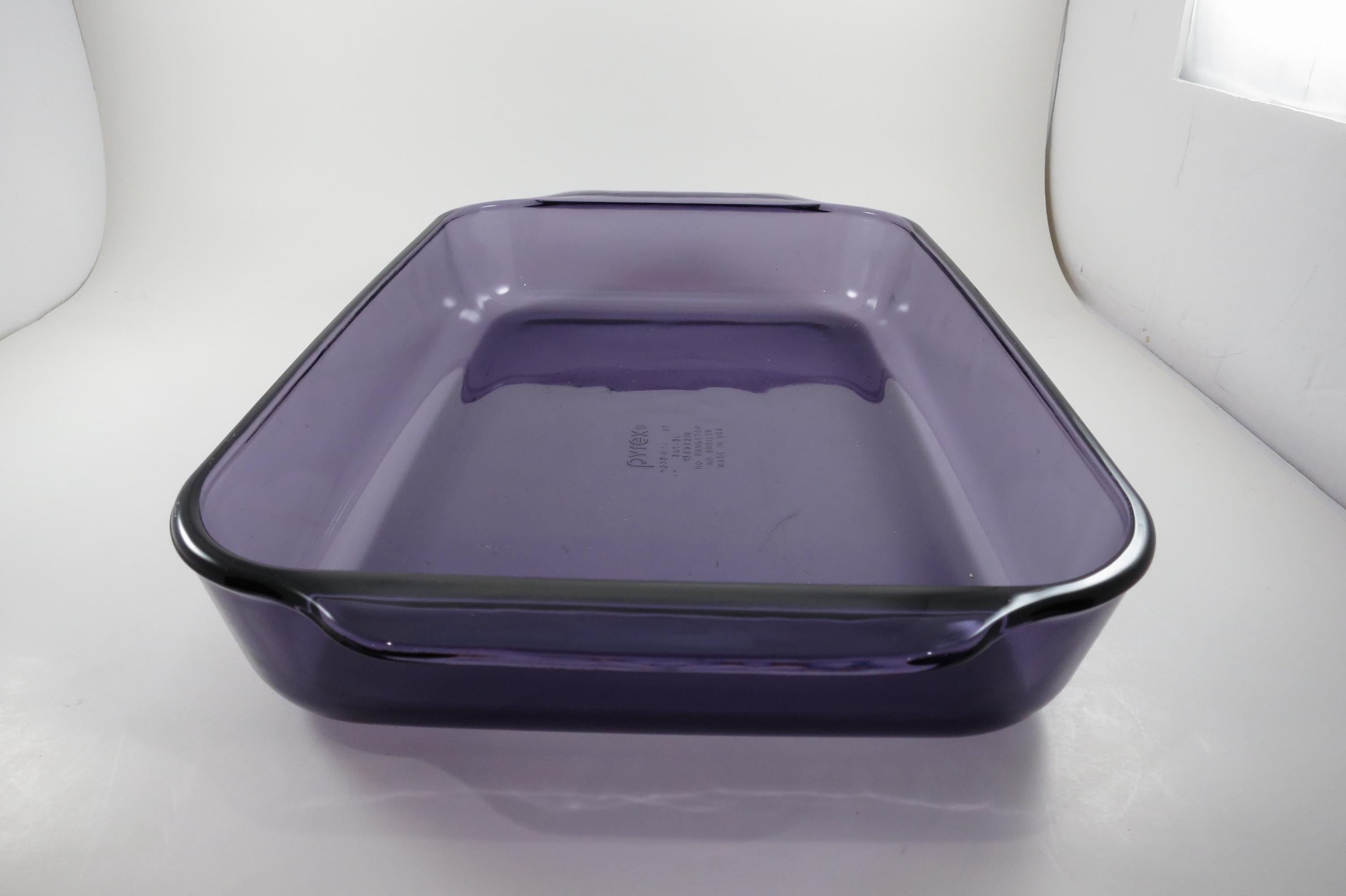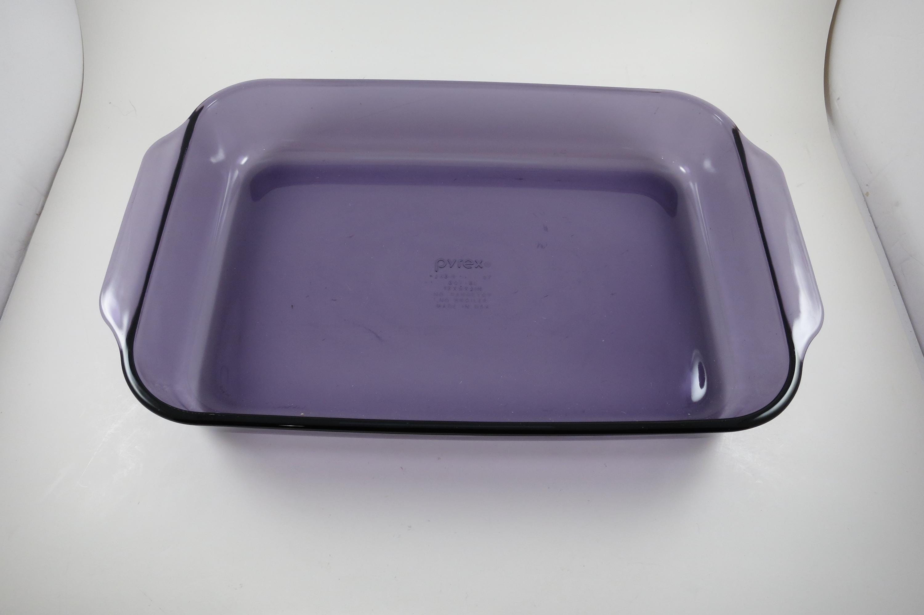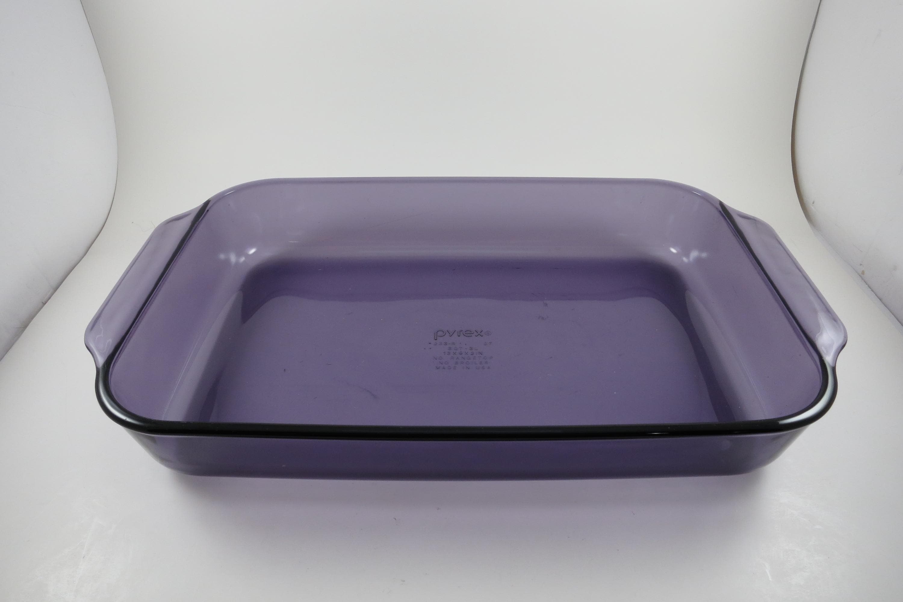 Vintage 90's Purple Pyrex 233-R 3 Quart Glass Baking Dish Pan Excellent Used Condition. Measures 13 inches long, 9 inches wide and 2 inches deep. Very nice Purple Amethyst Pan.