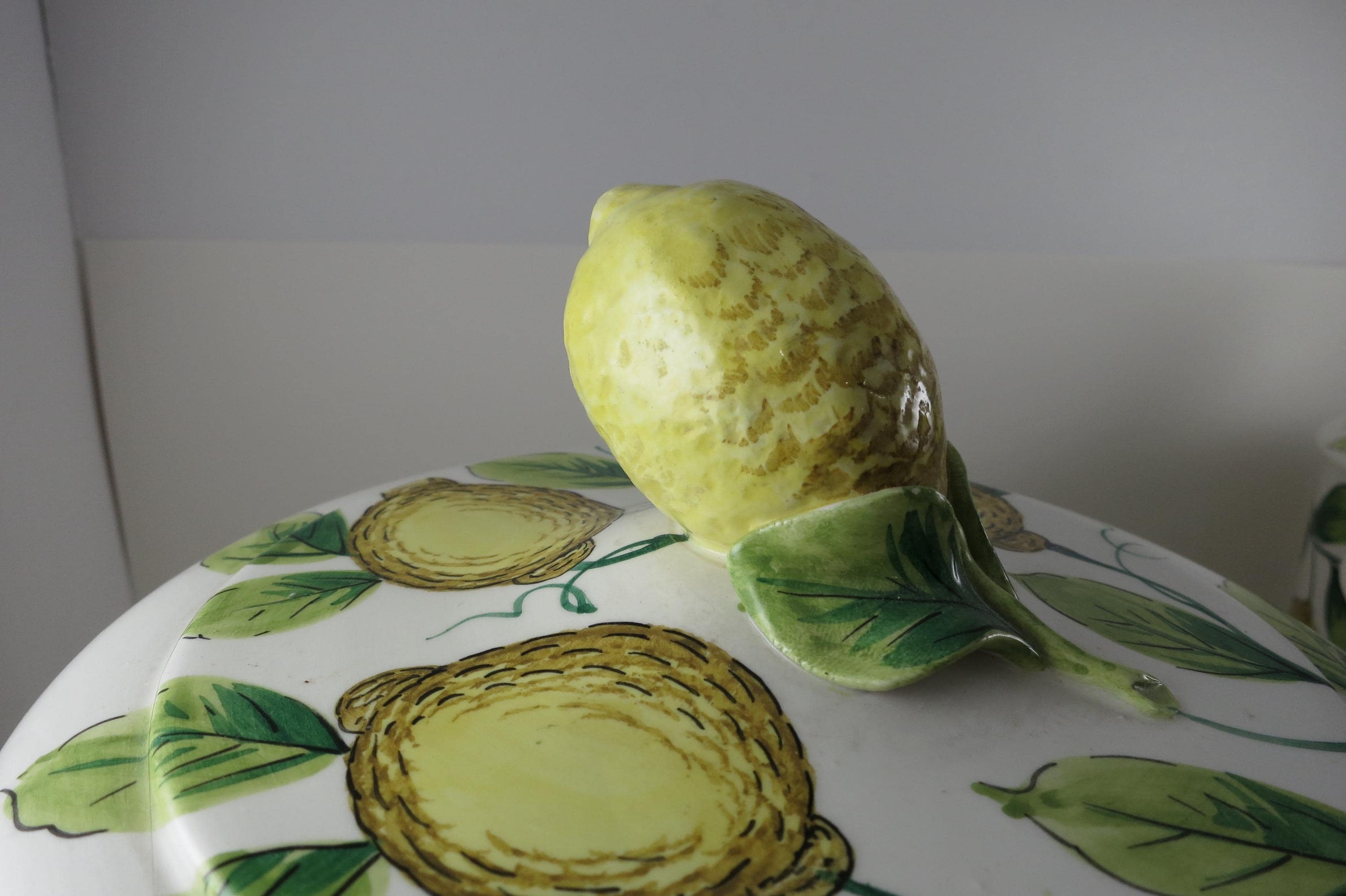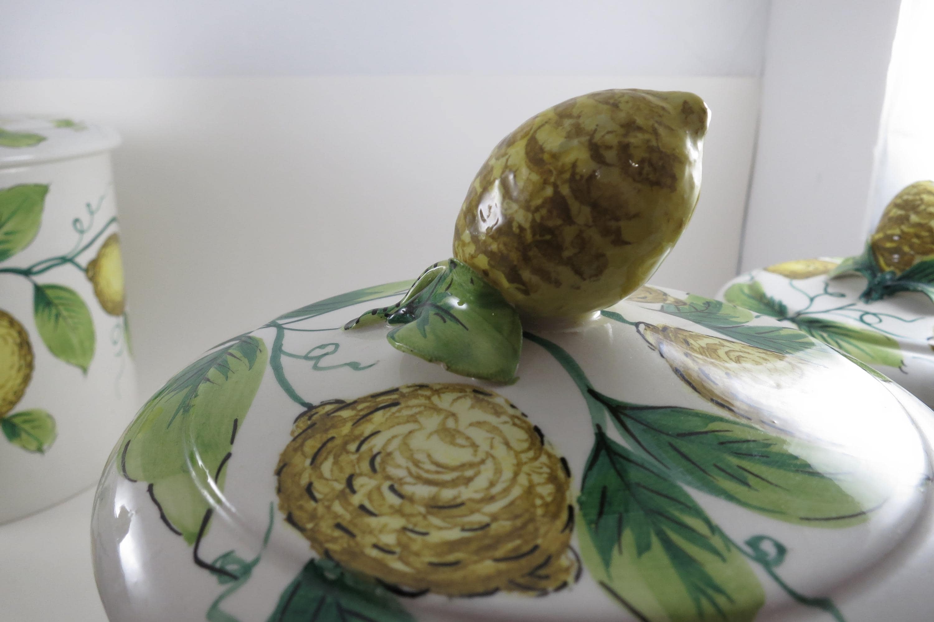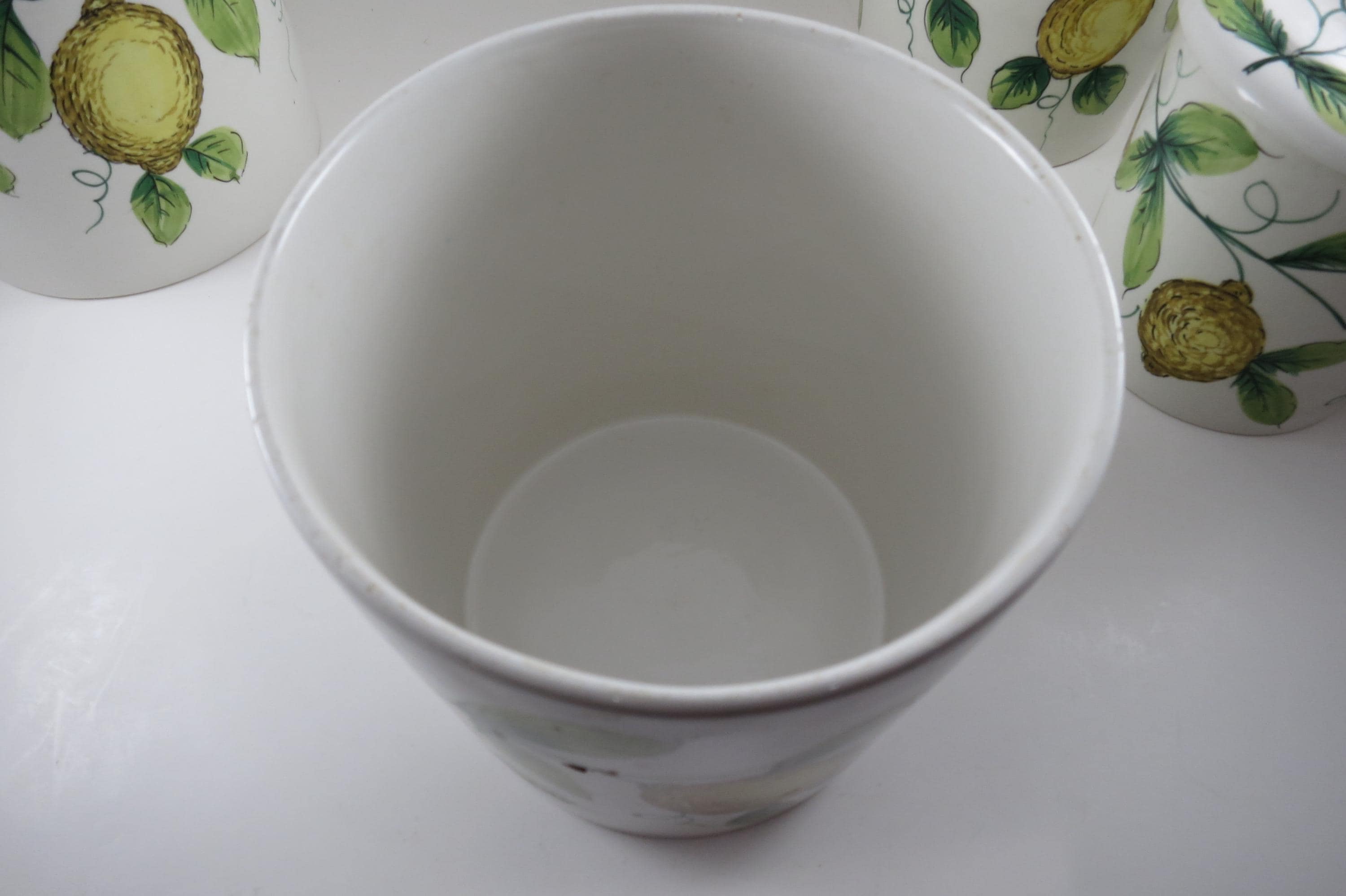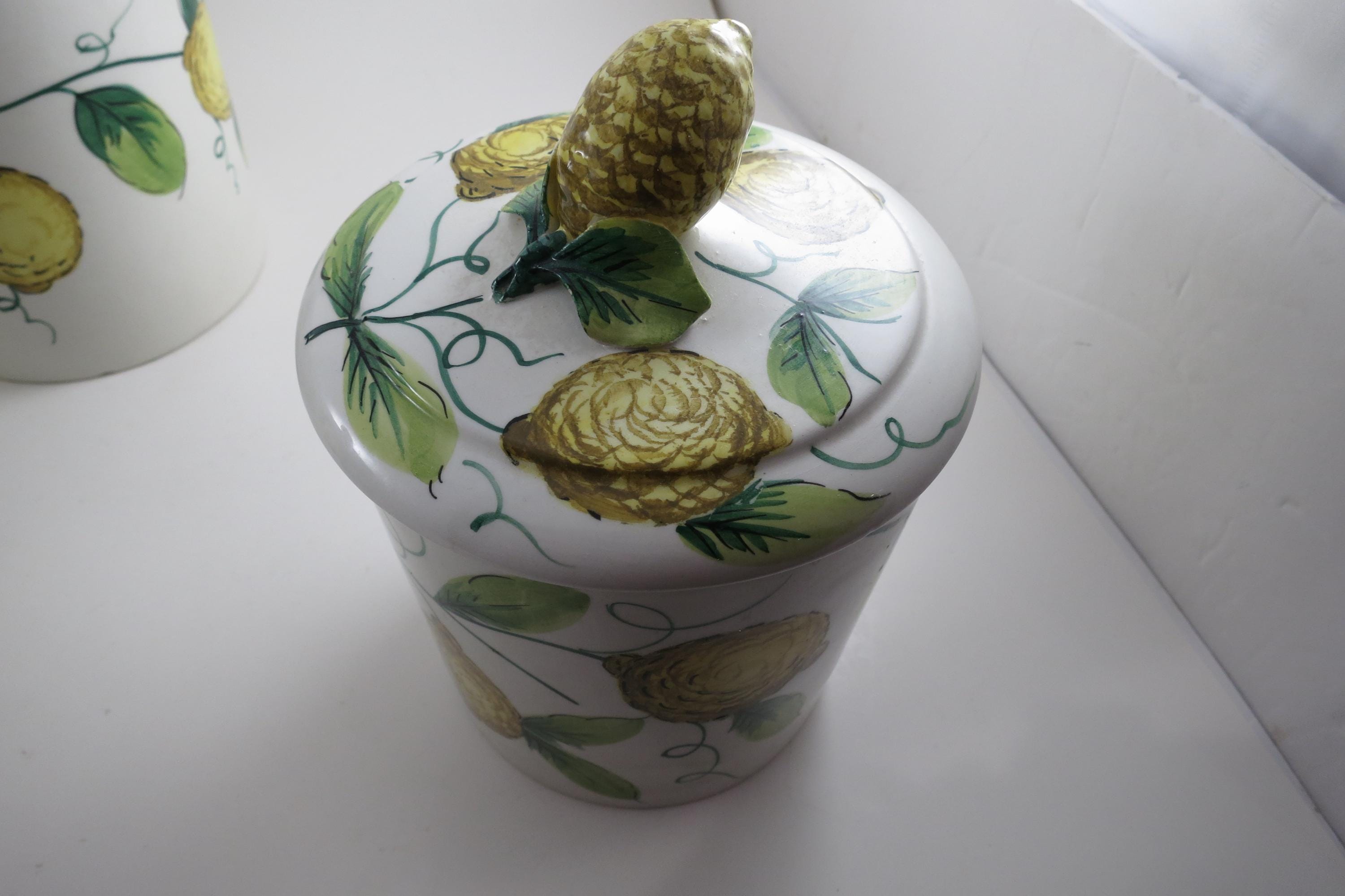 Vintage Ceramic Italian 4 Piece Canister Set Acorns Green Yellow.