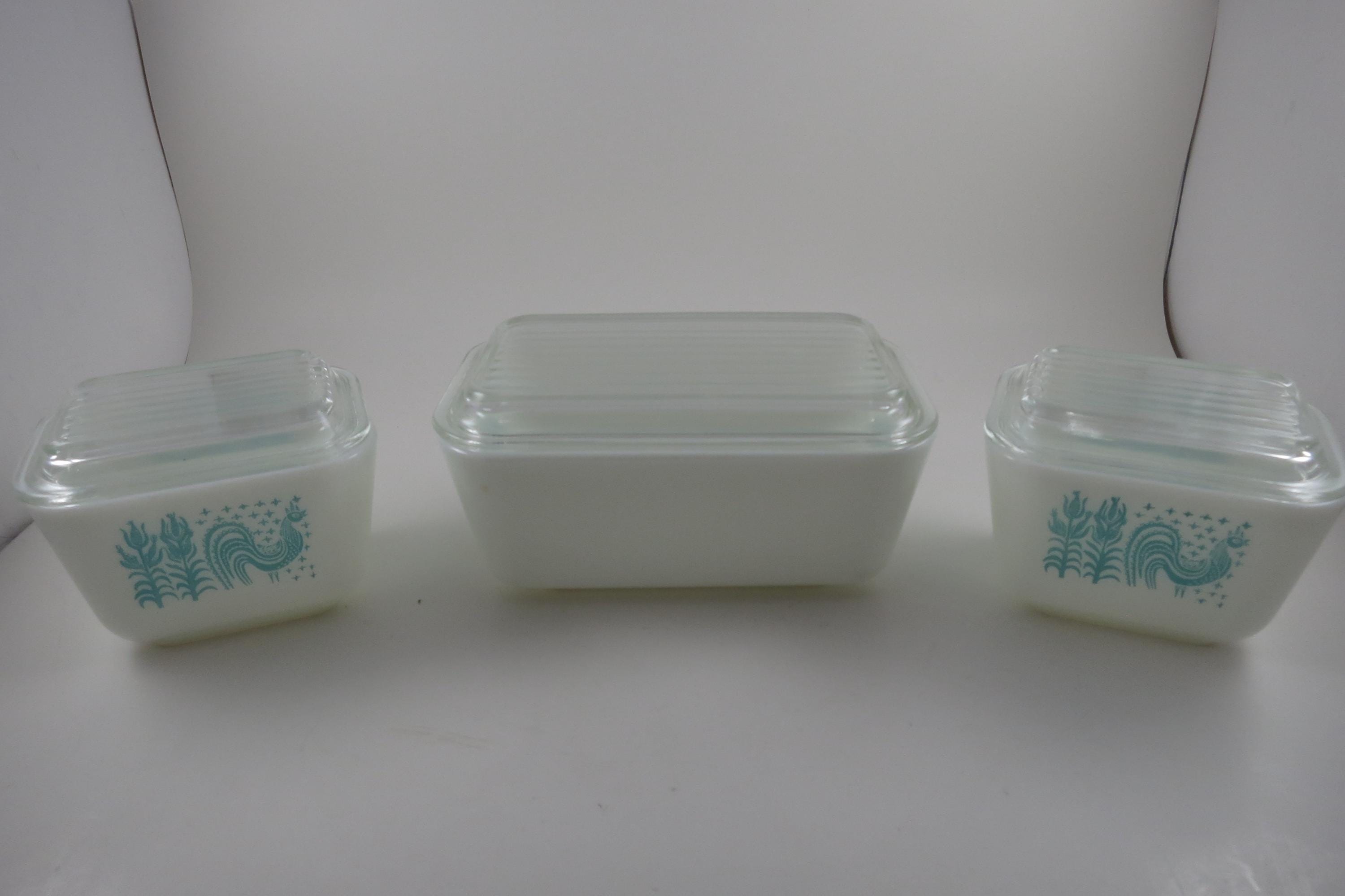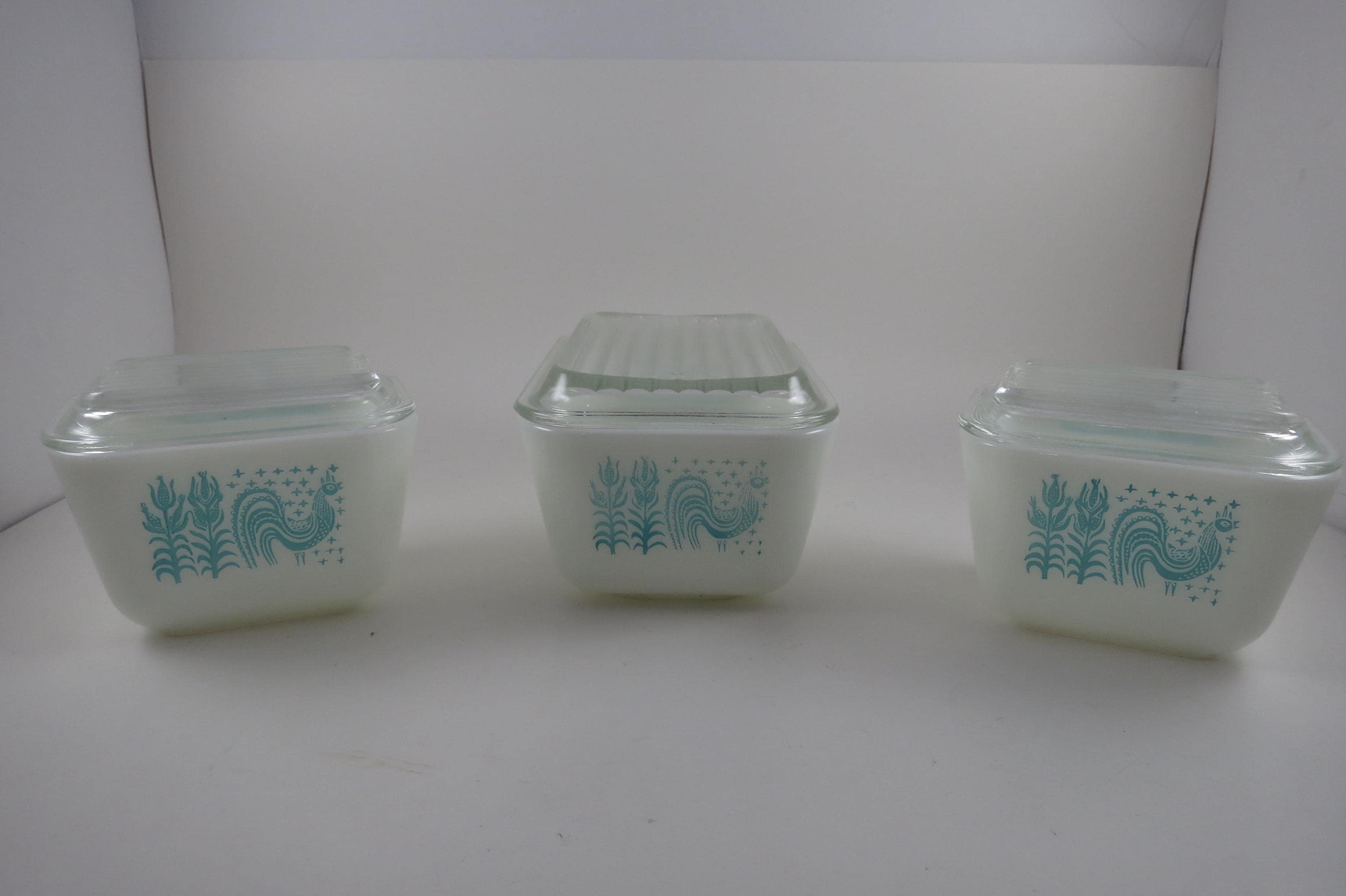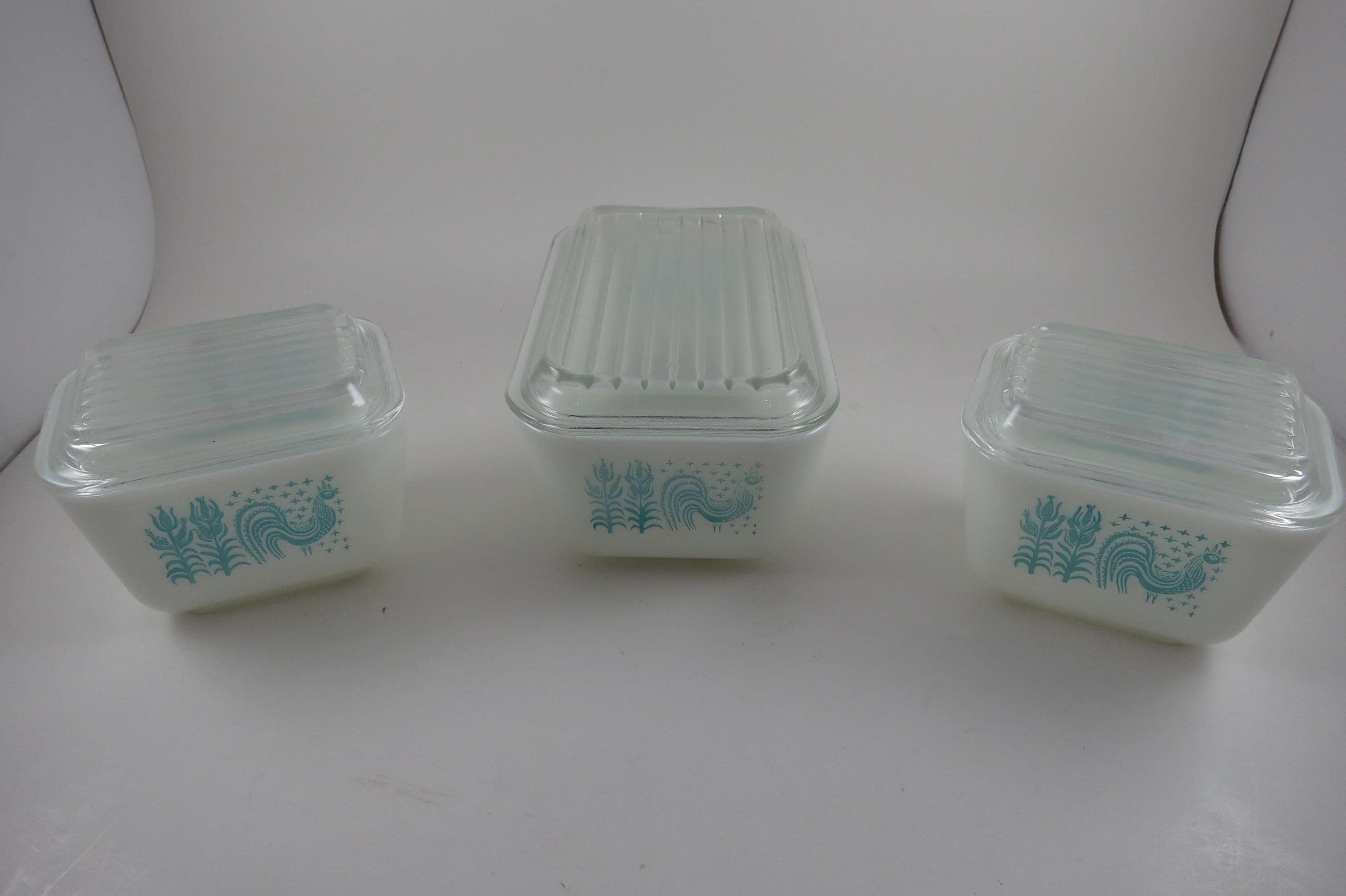 Six Piece Vintage Pyrex Amish Butterprint Refrigerator Dish Set 501 502 with Lids