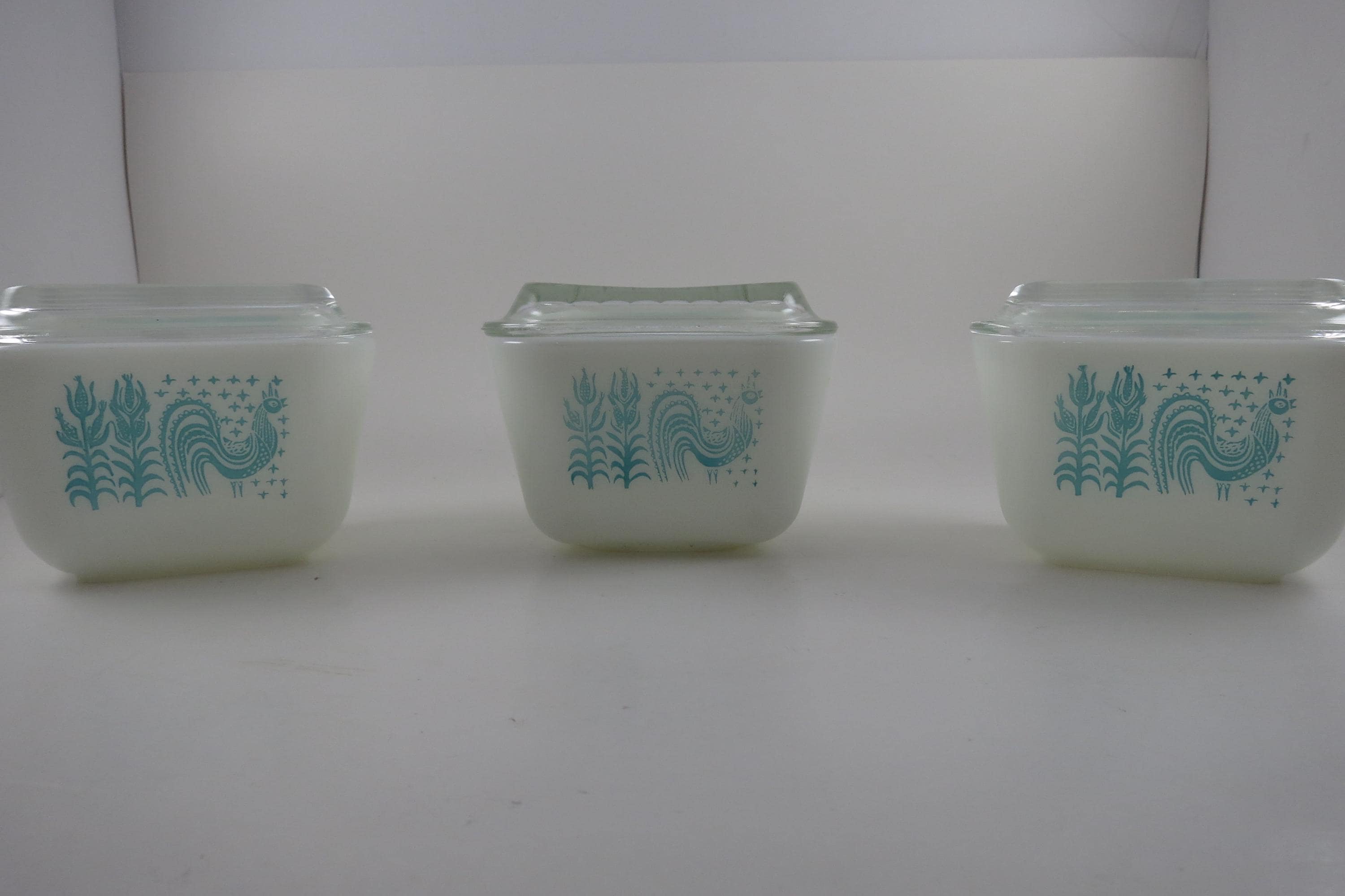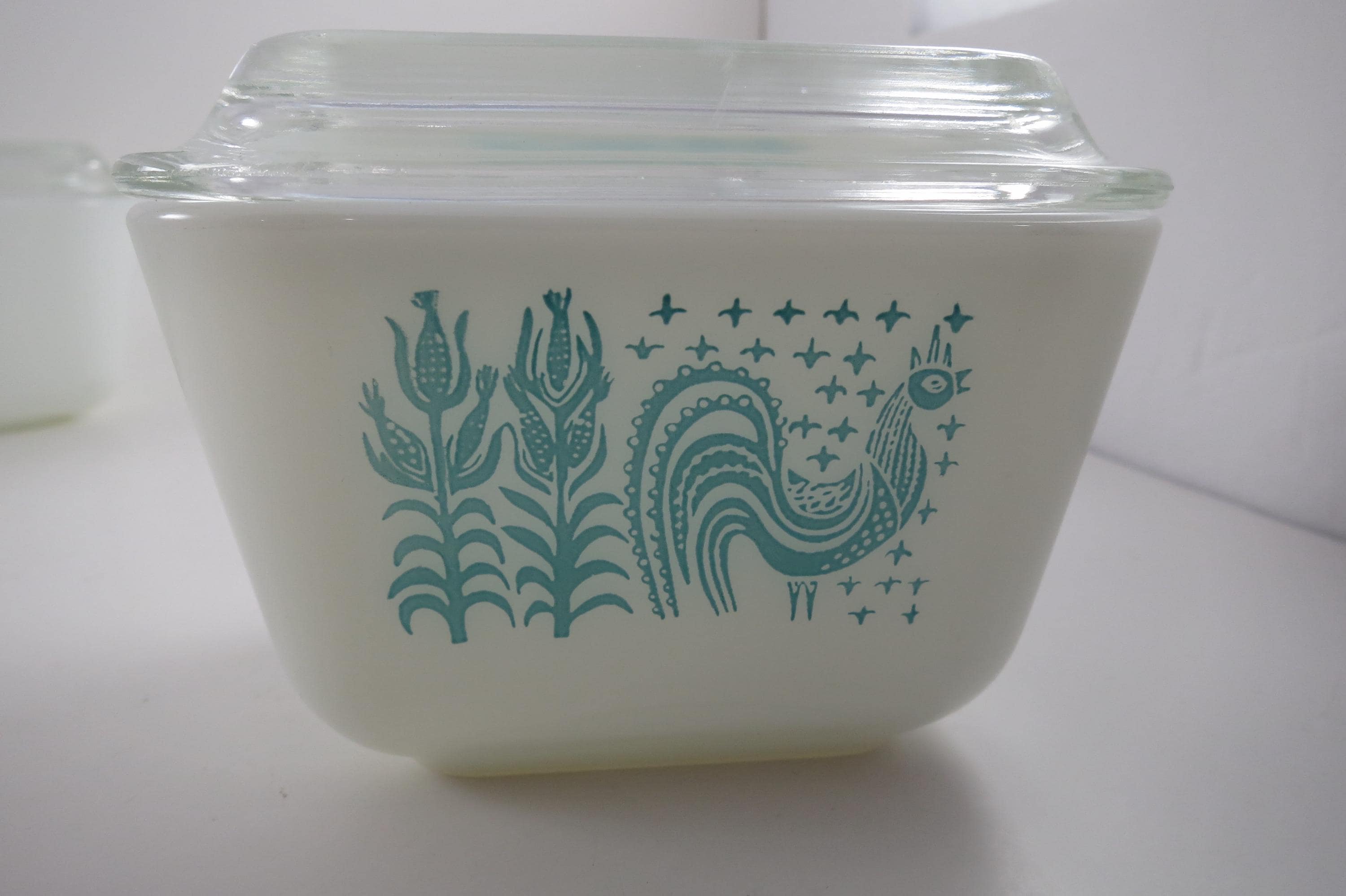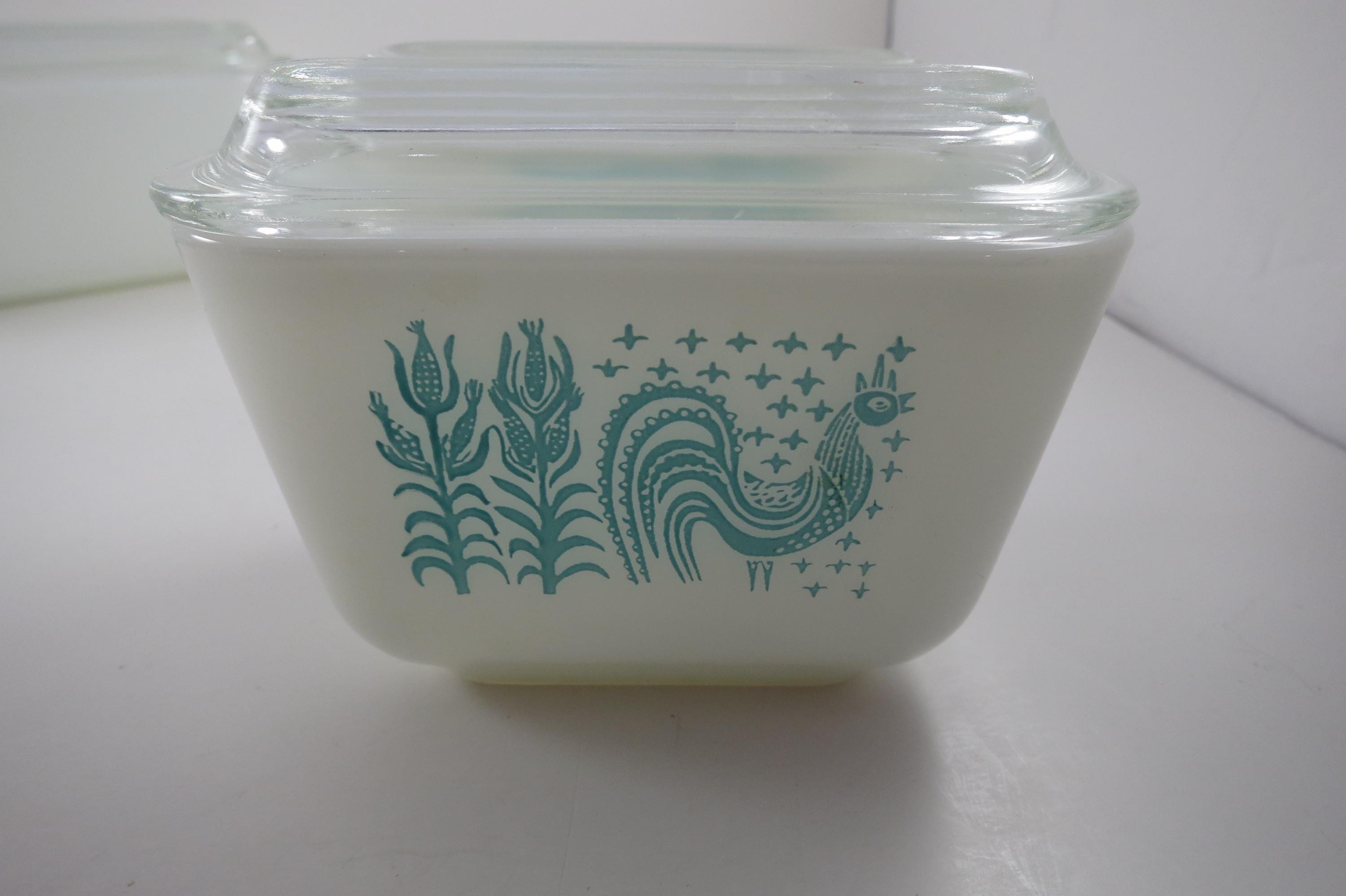Six Piece Vintage Pyrex Amish Butterprint Refrigerator Dish Set 501 502 with Lids