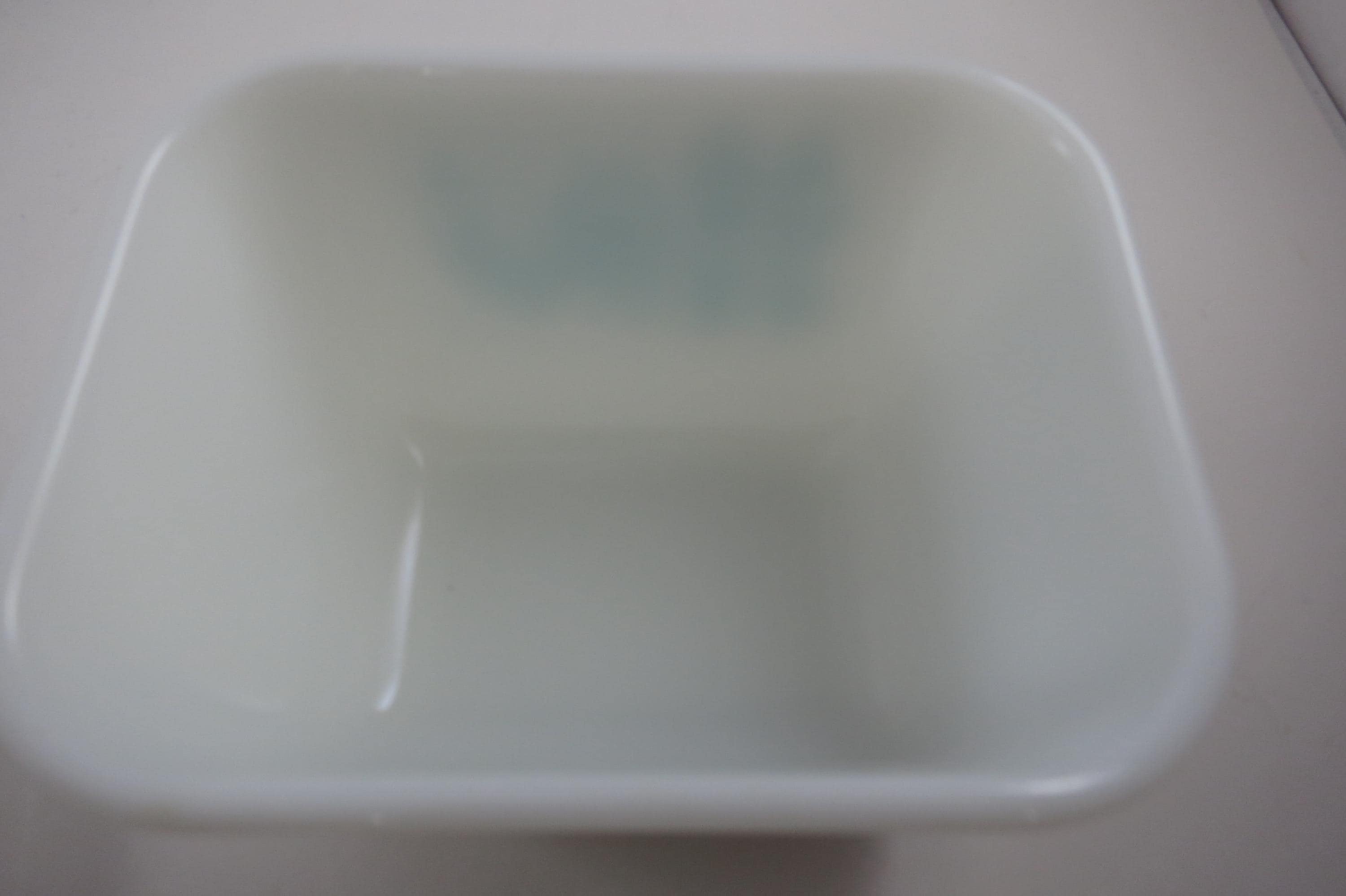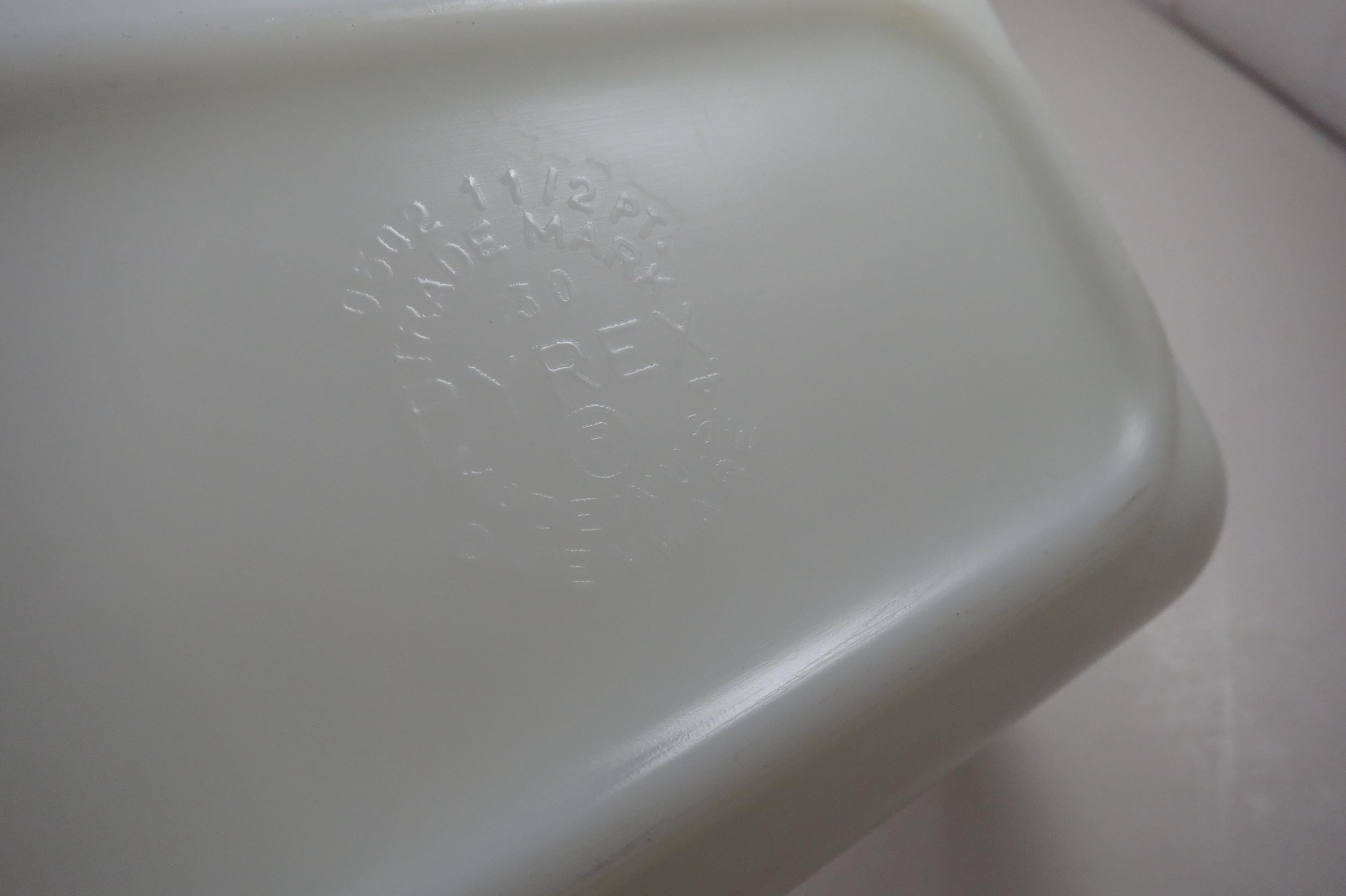 Two No 501 1 1/2 cup with the original glass lids and one No 502 1 1/2 pint also with the original glass lid. All six pieces are in like new condition and show almost no wear at all.