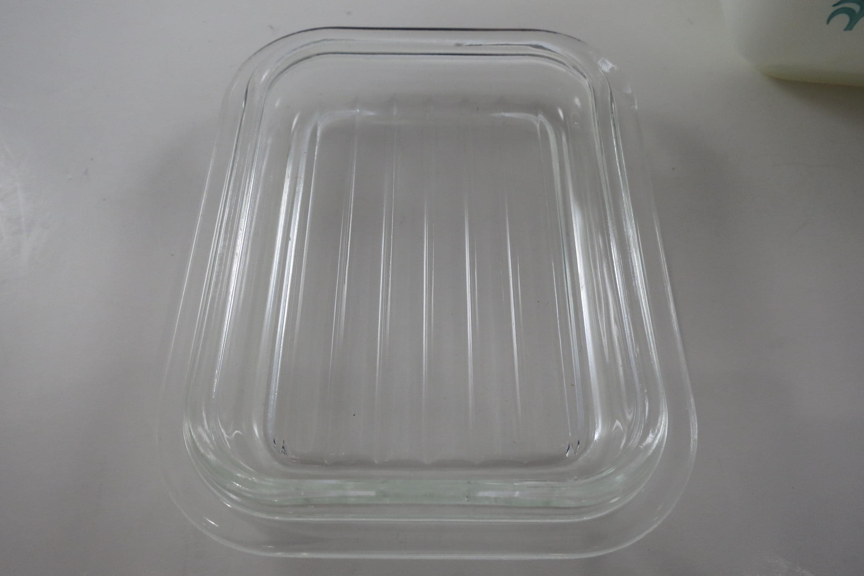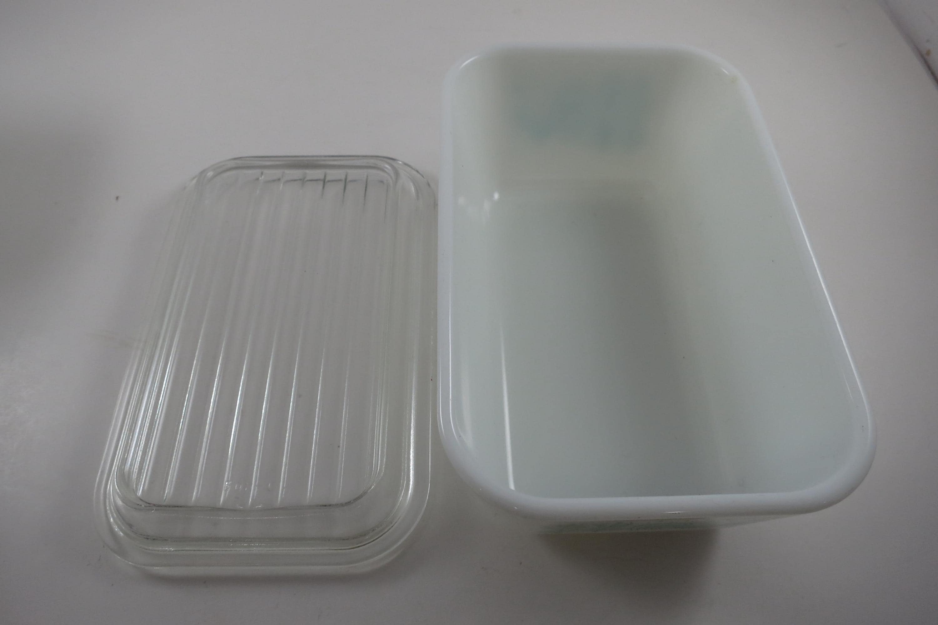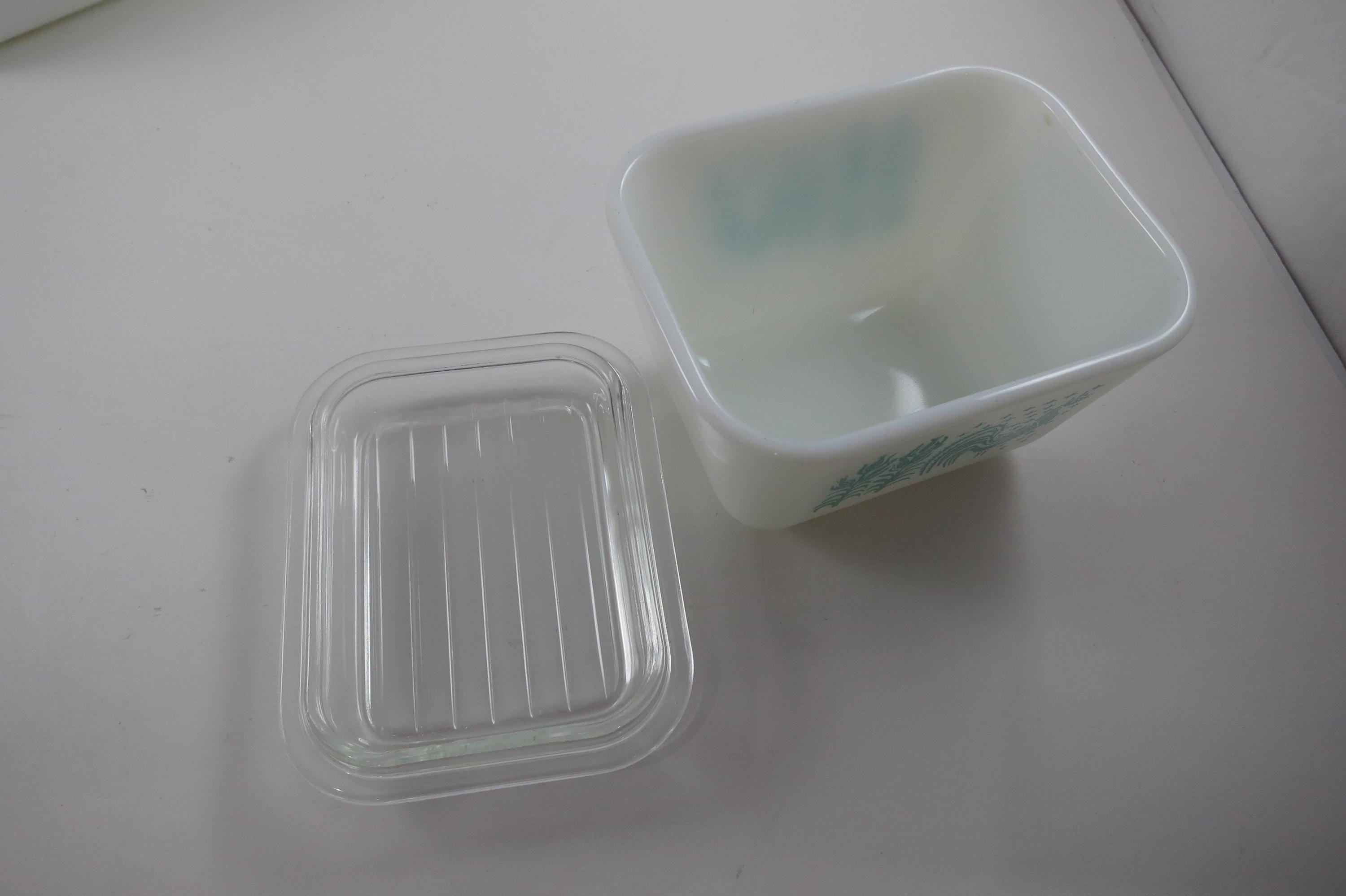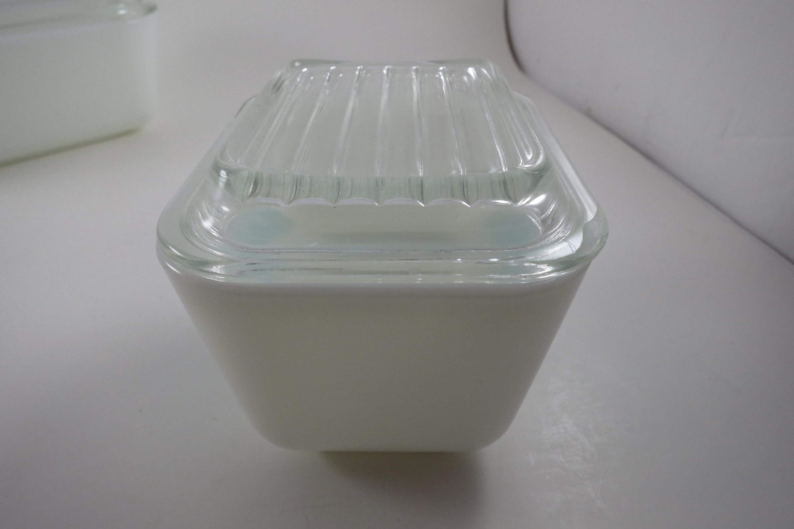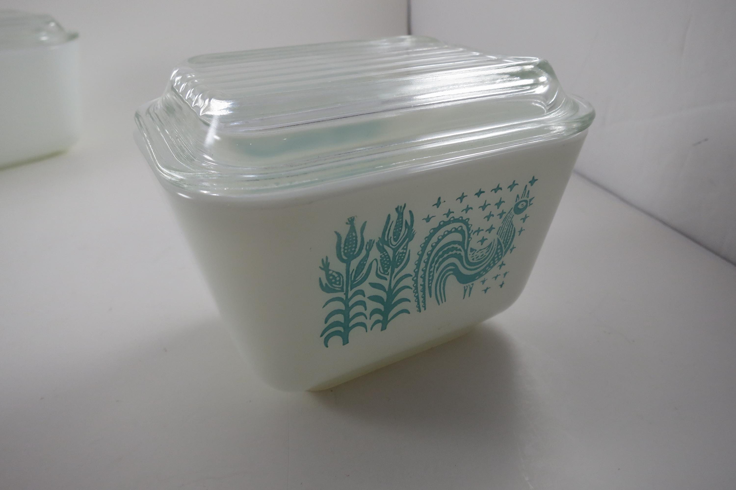 Six Piece Vintage Pyrex Amish Butterprint Refrigerator Dish Set 501 502 with Lids.