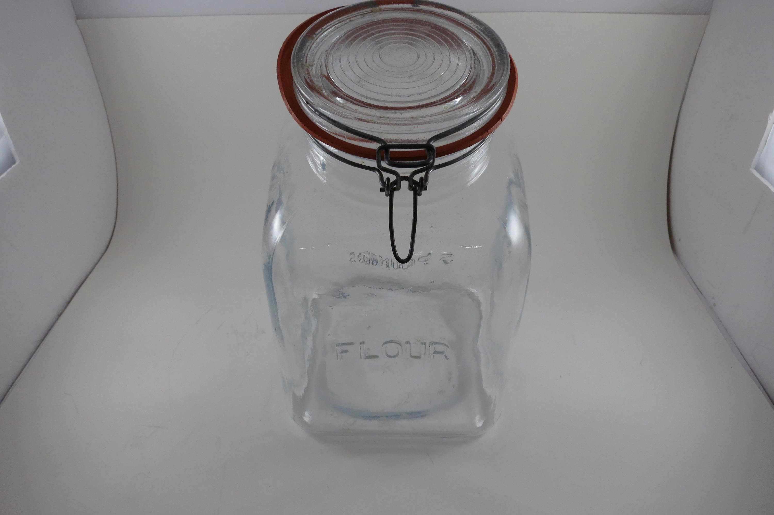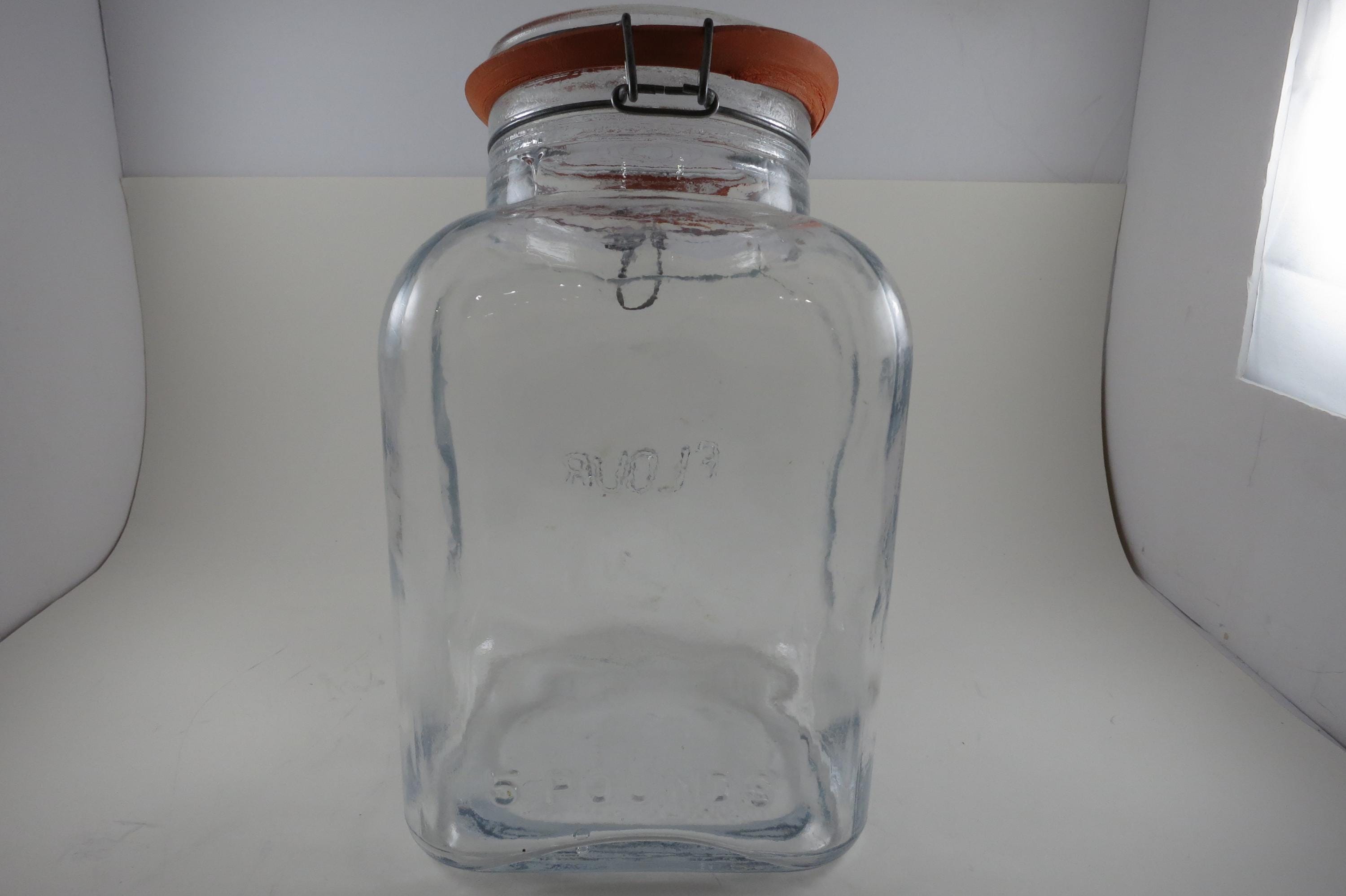 Vintage Italian 5 Pound Flour Canister with Glass Lid