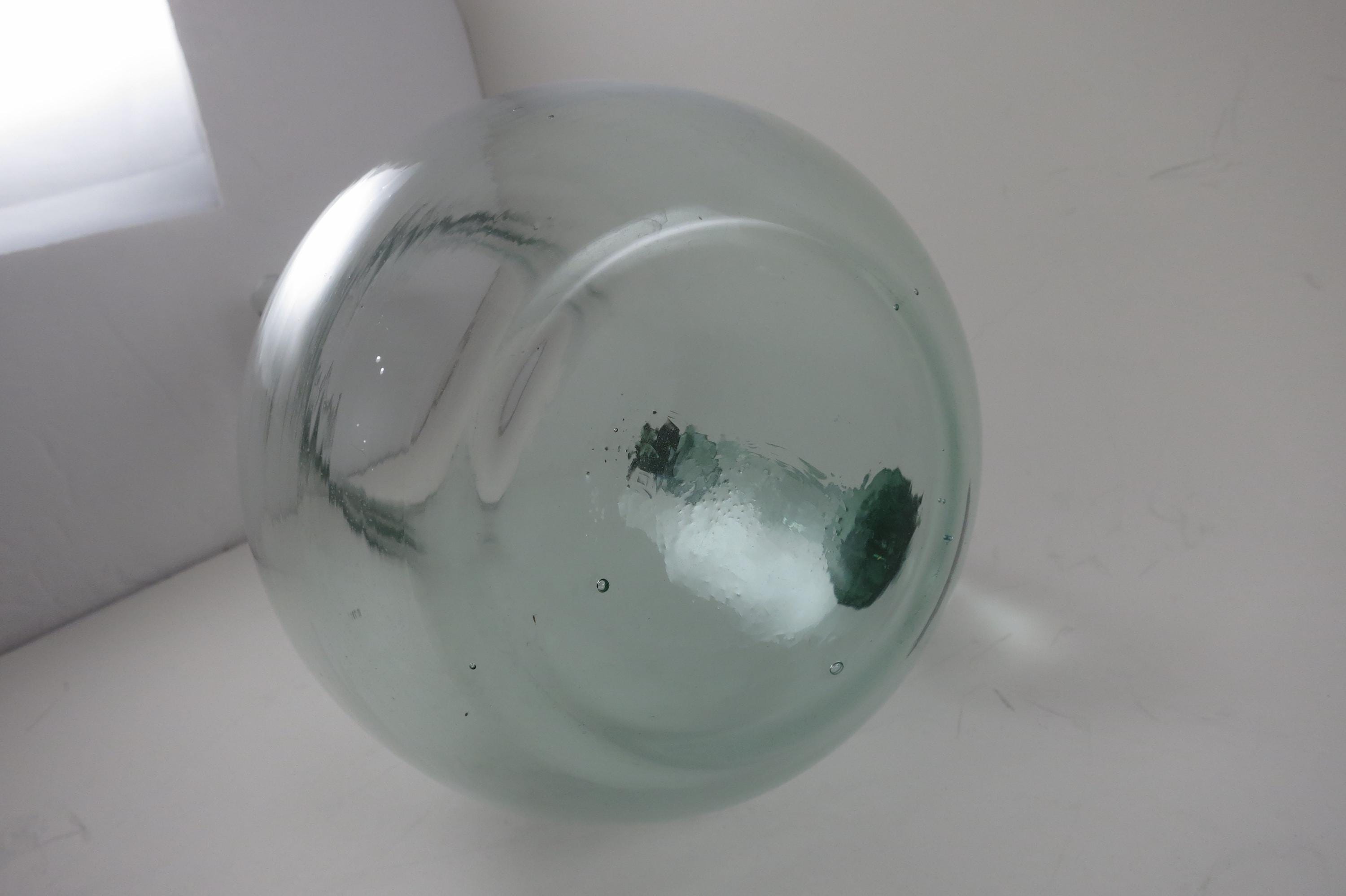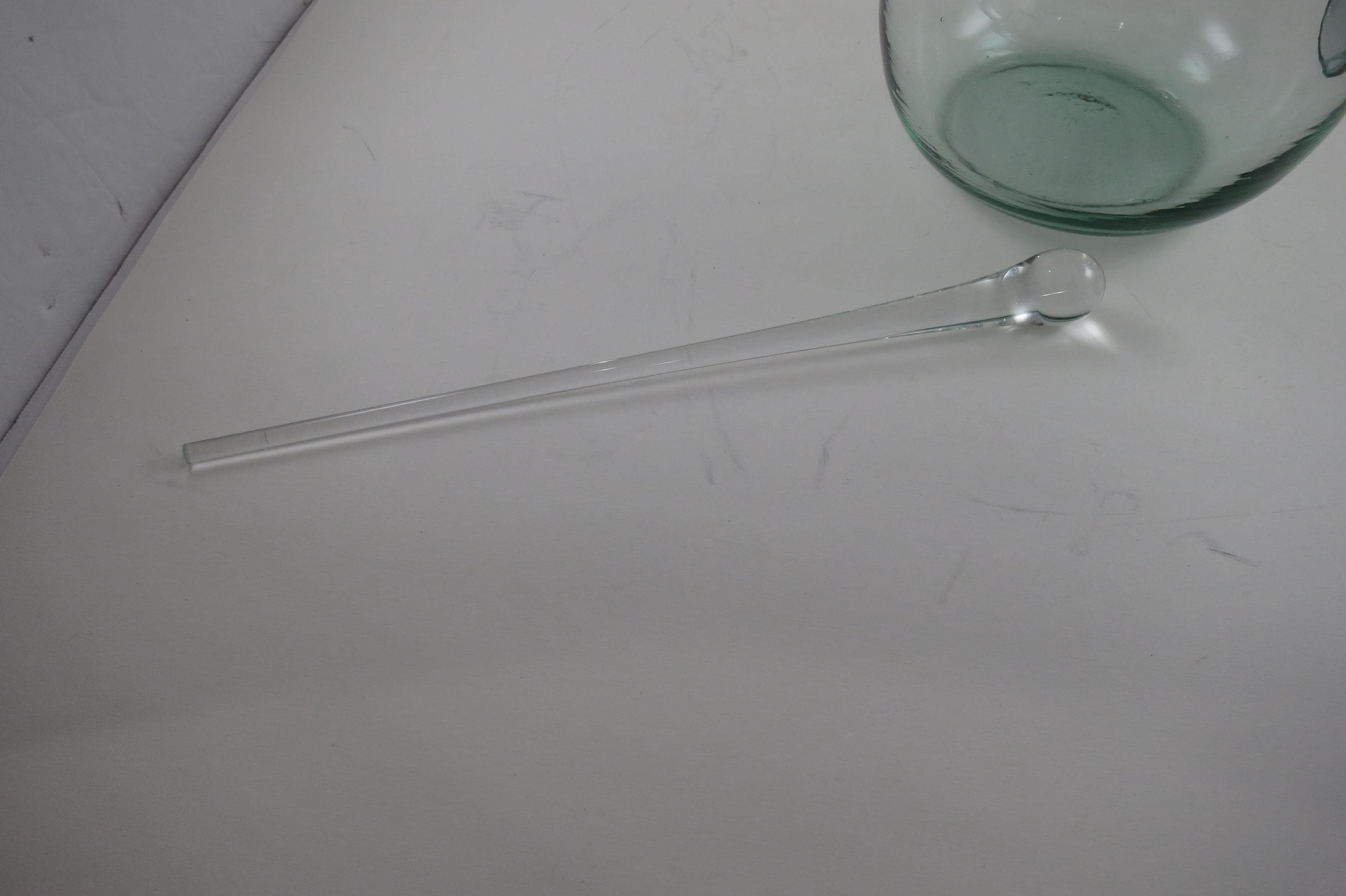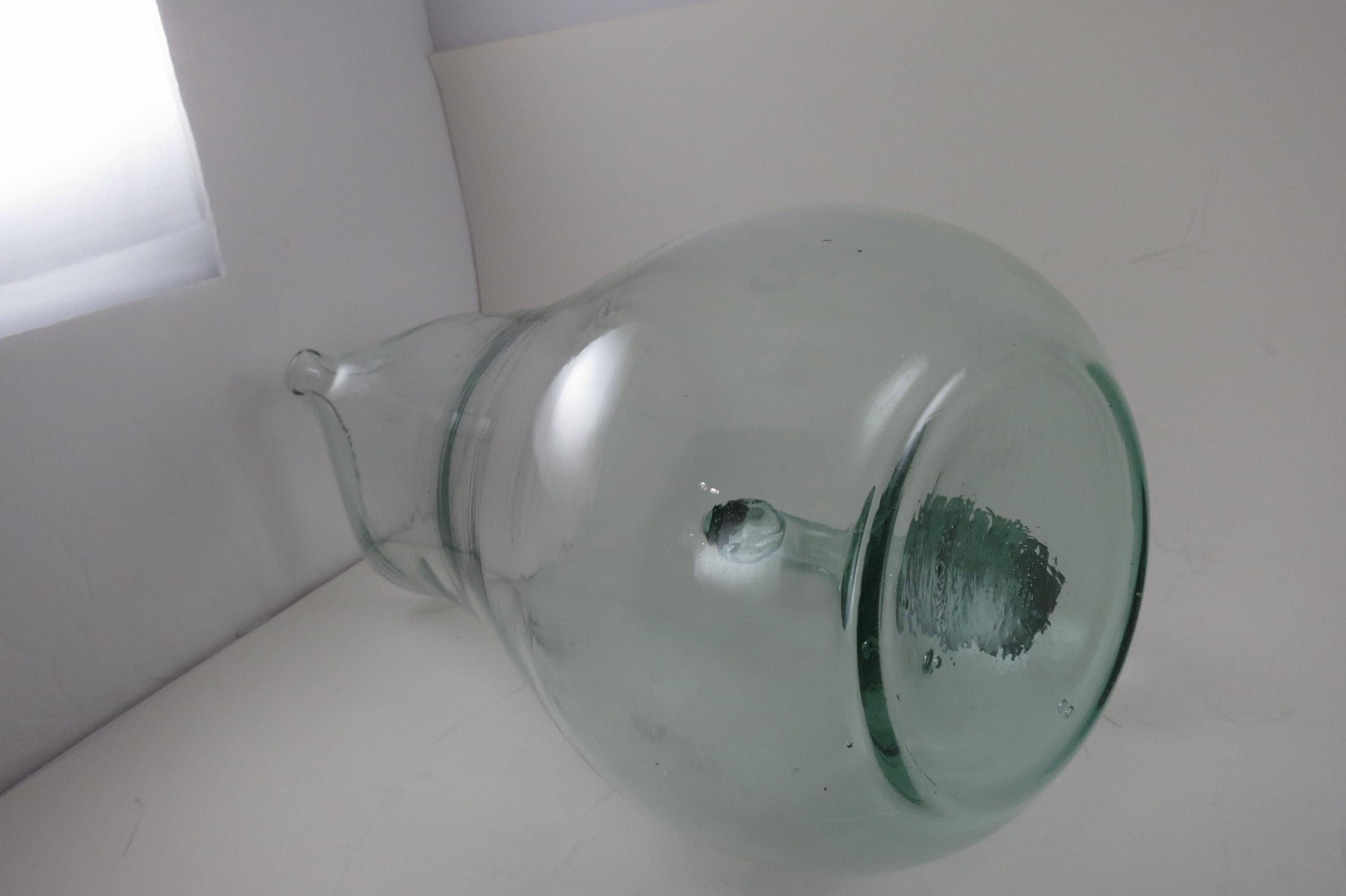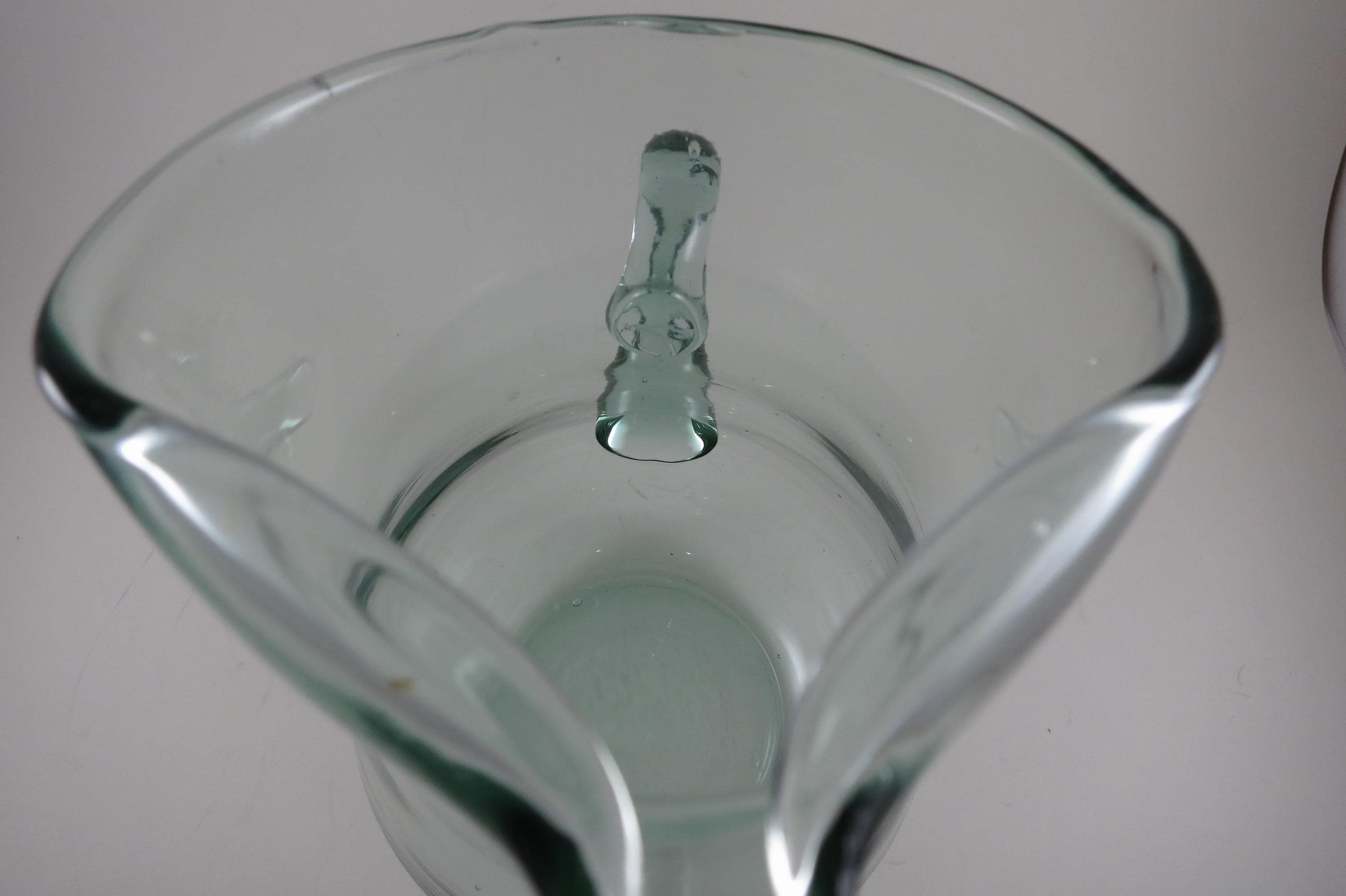 Hand Blown Aqua Glass Large Water Tea Pitcher with Stirrer Applied Handle.