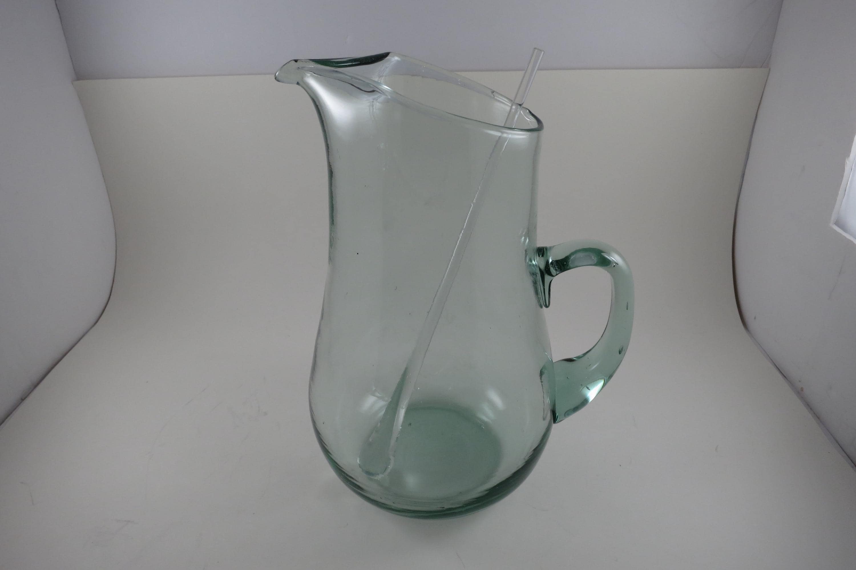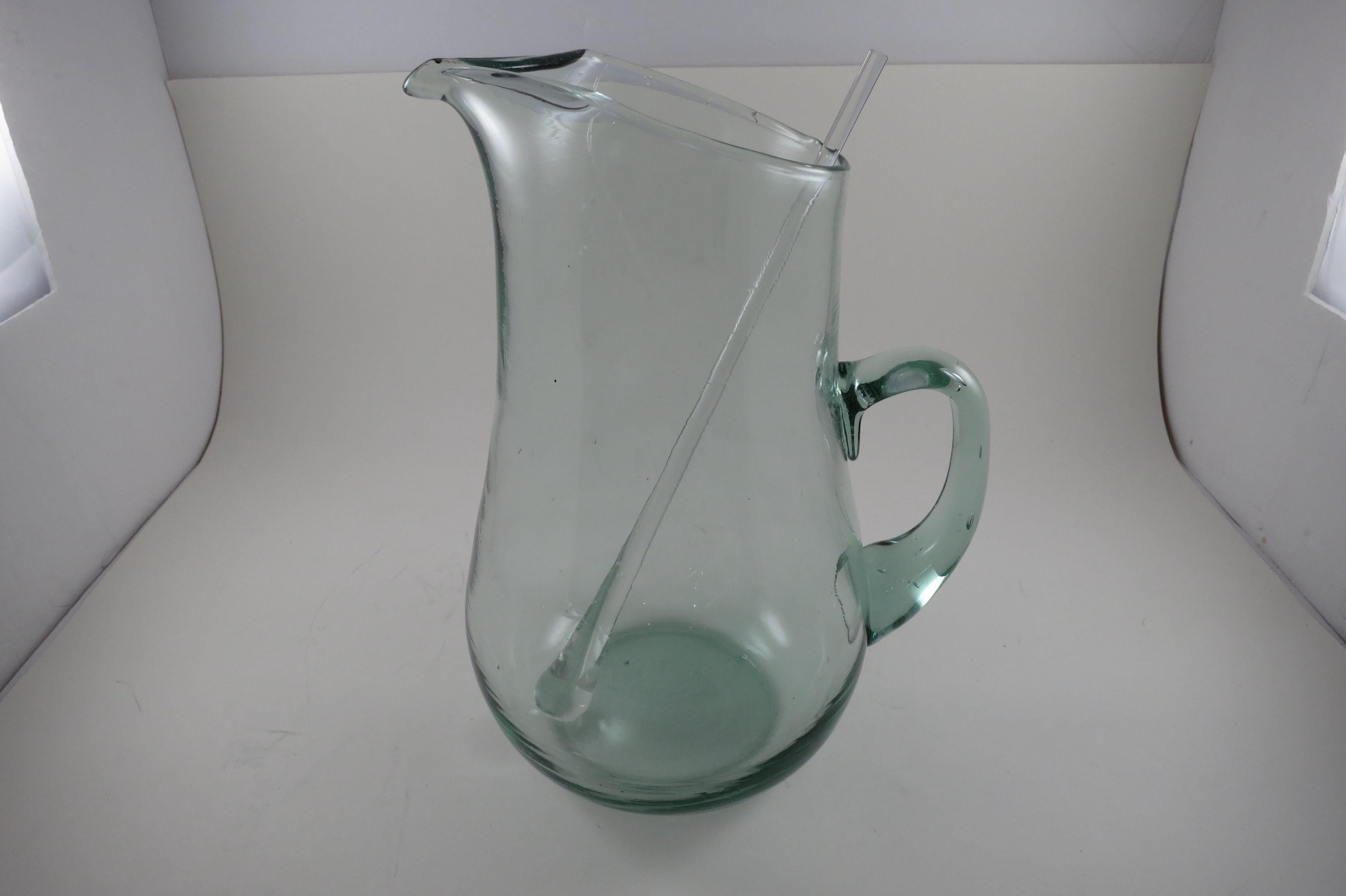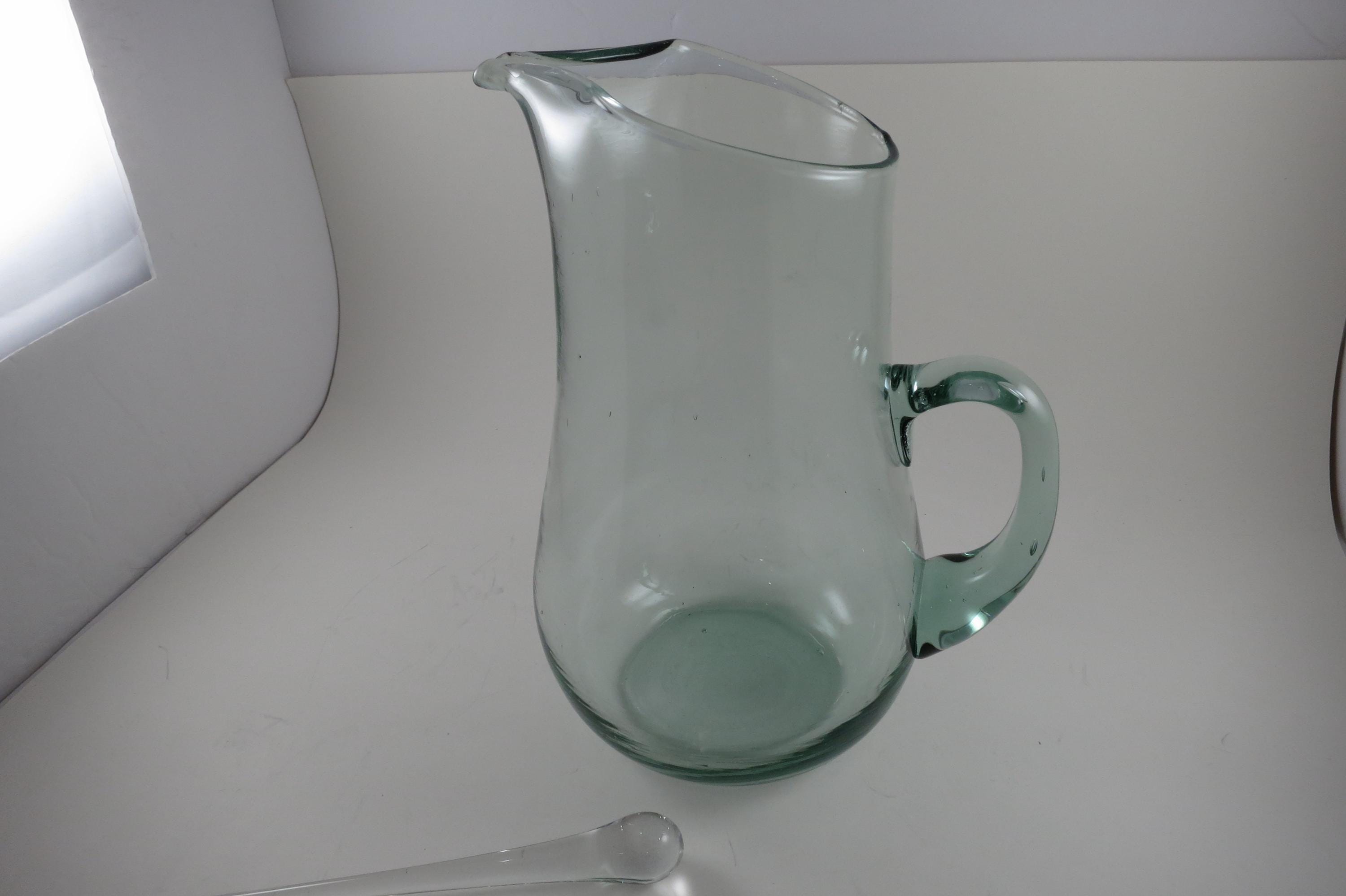 Hand Blown Aqua Glass Large Water Tea Pitcher with Stirrer Applied Handle