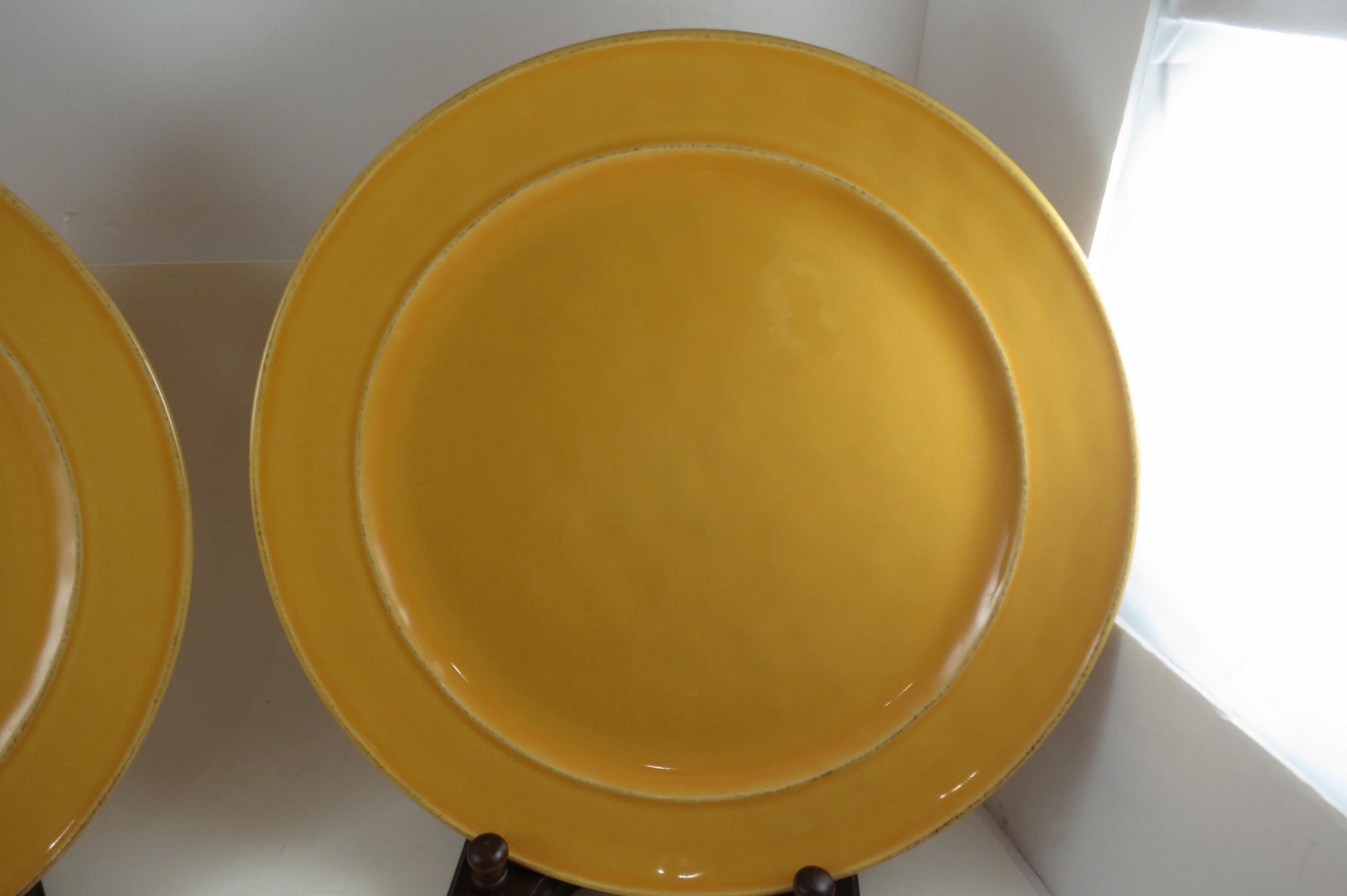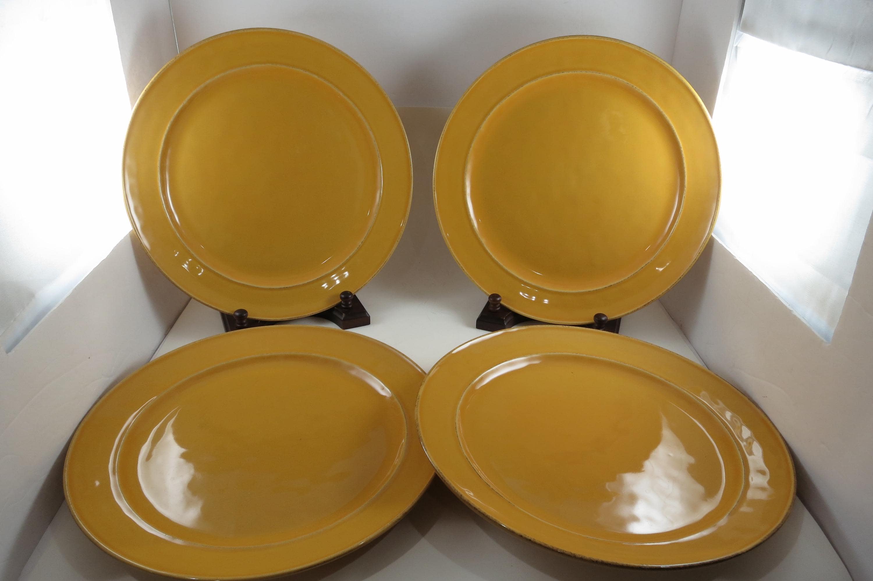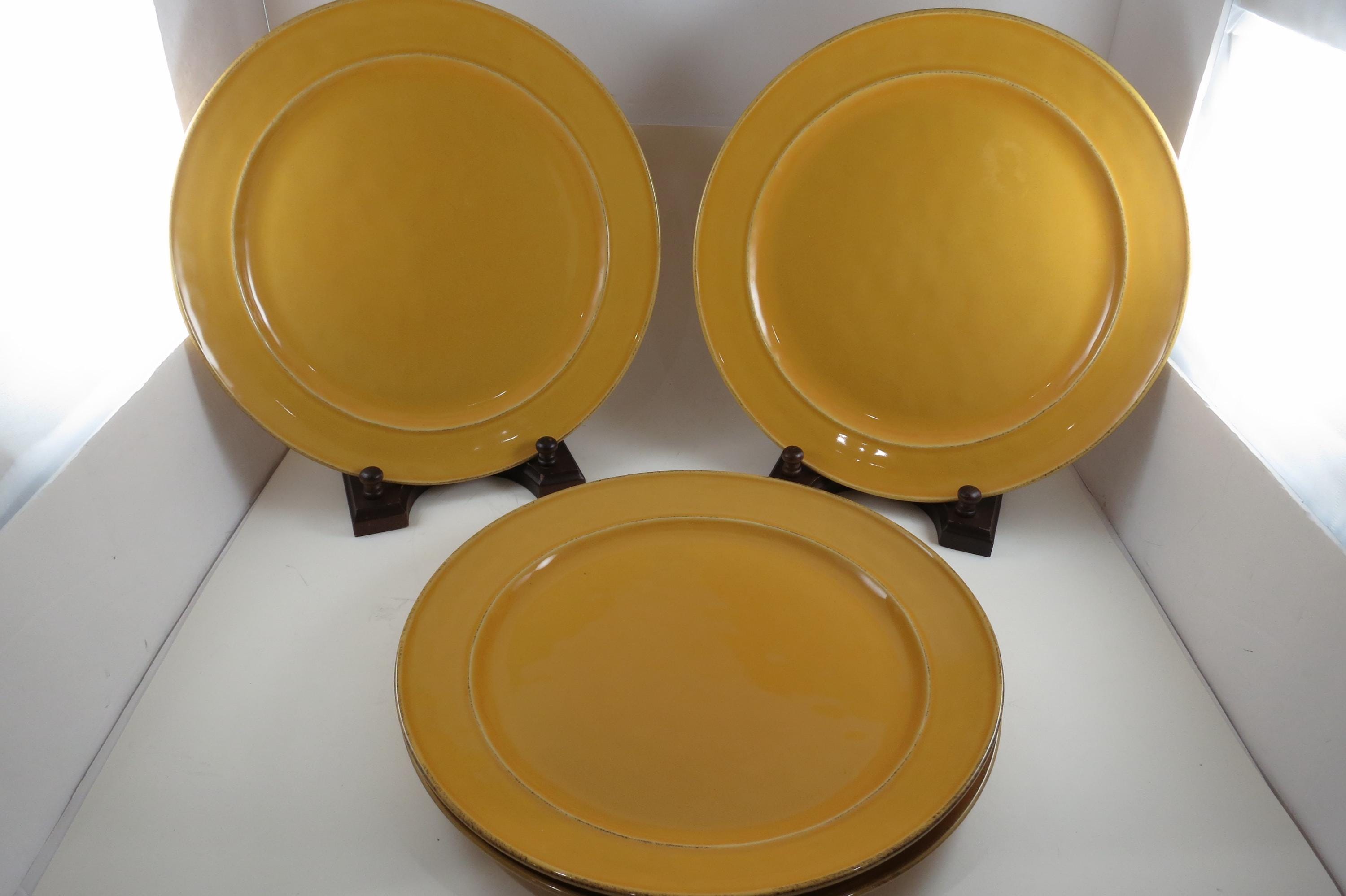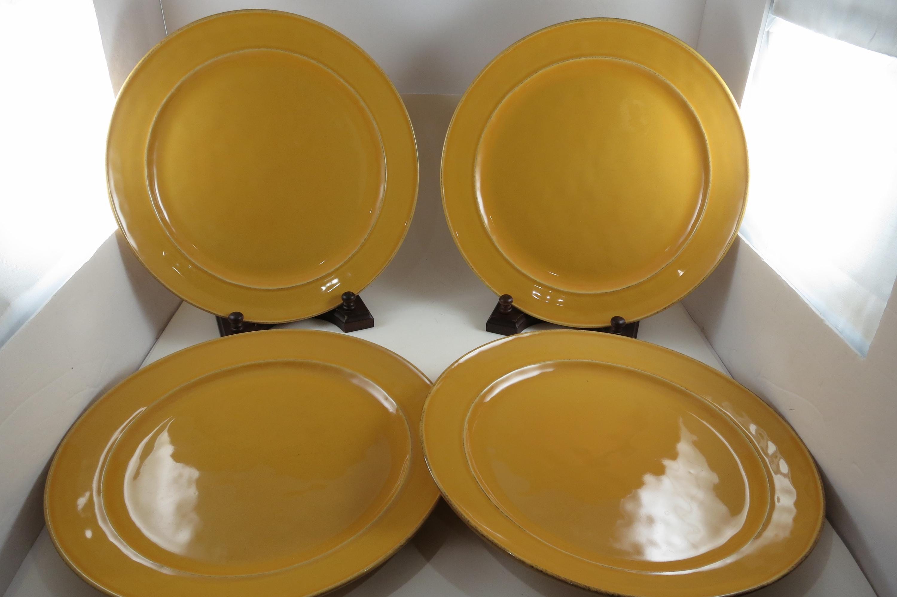 Set of Four Vintage Pottery Barn Cambria Saffron 11 3/4 Inch Dinner Plates.