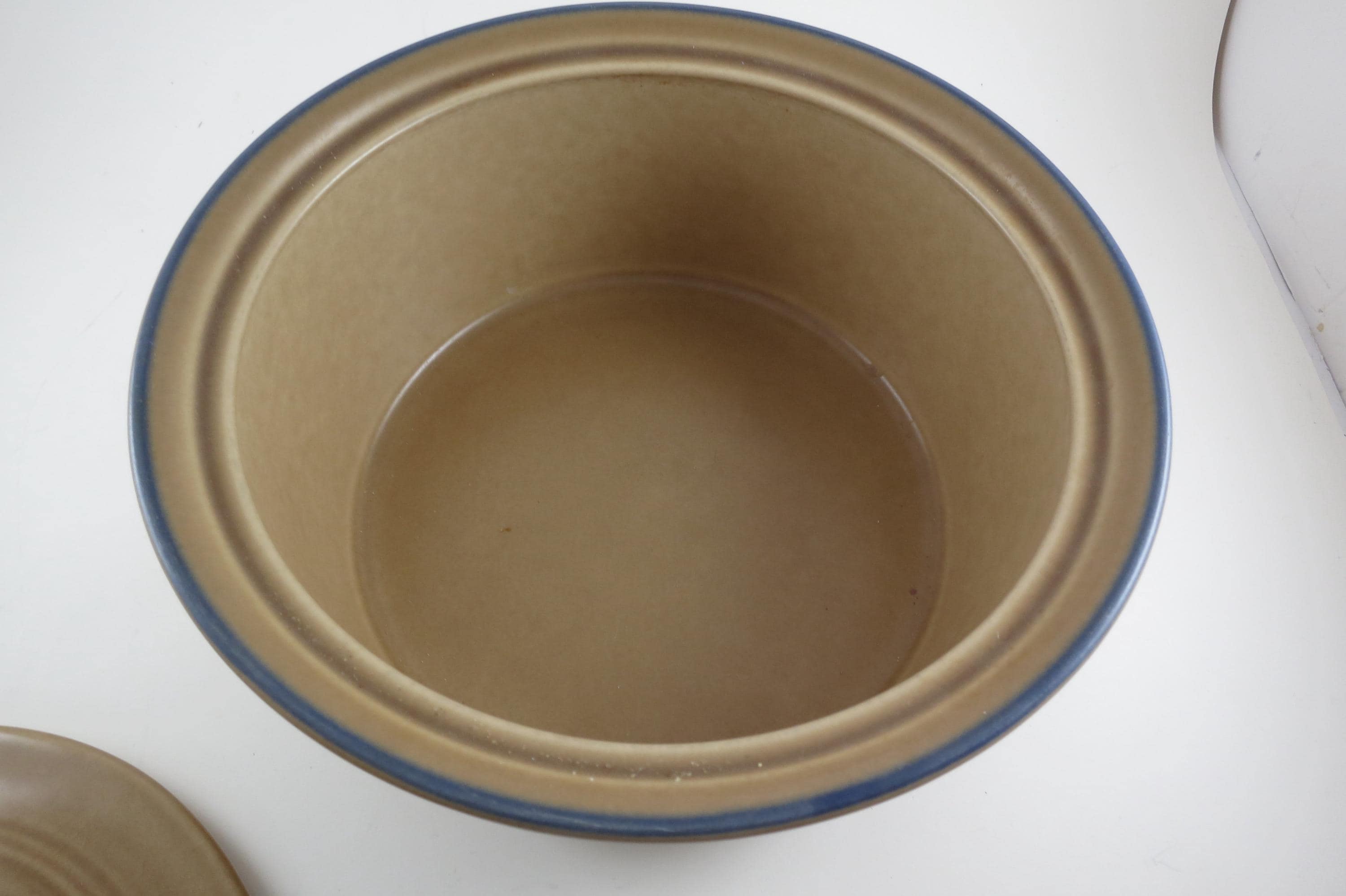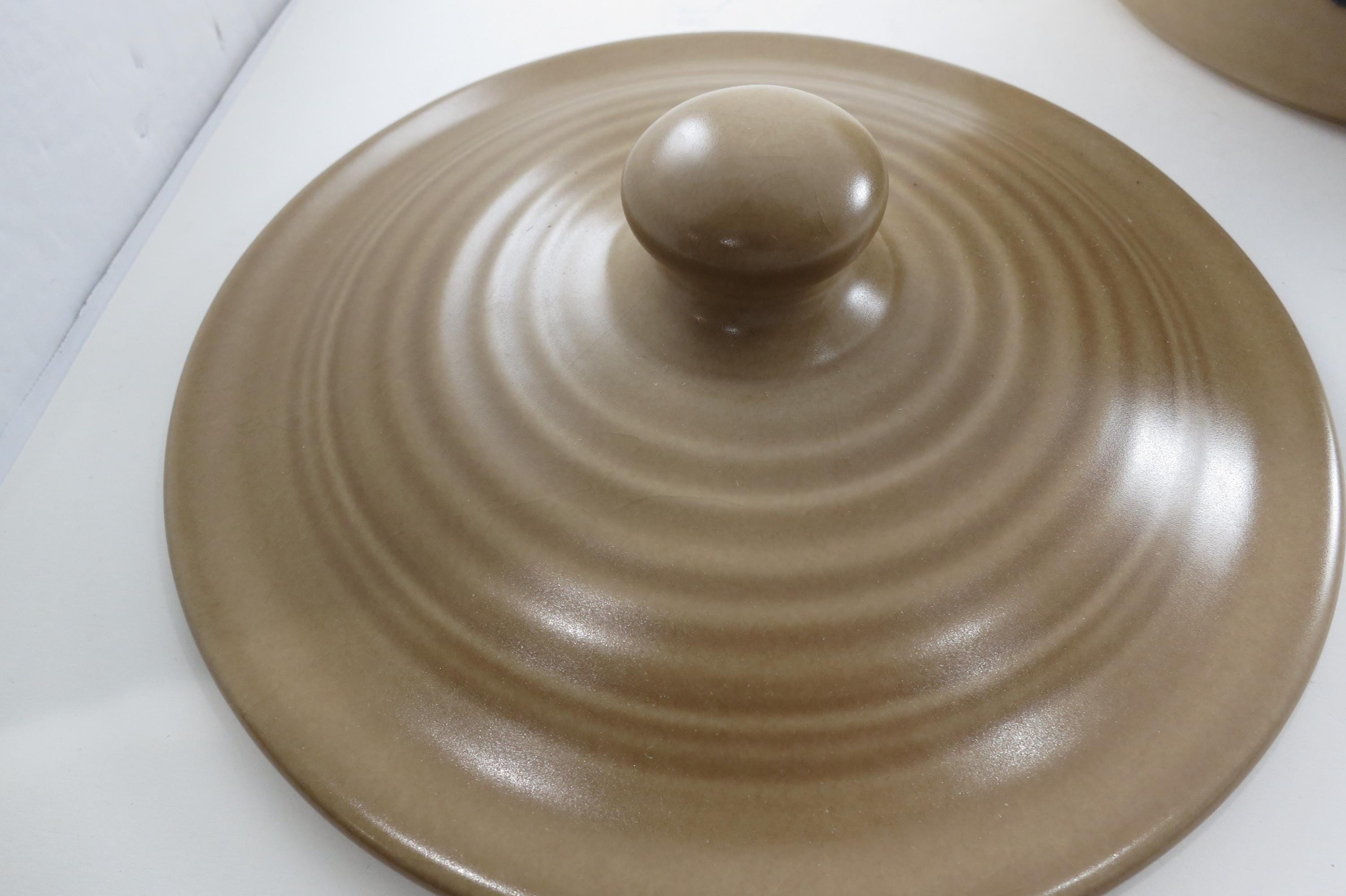 Like New condition with no chips, cracks or damages. The lid does show some crazing. Measures 9 inches diameter.