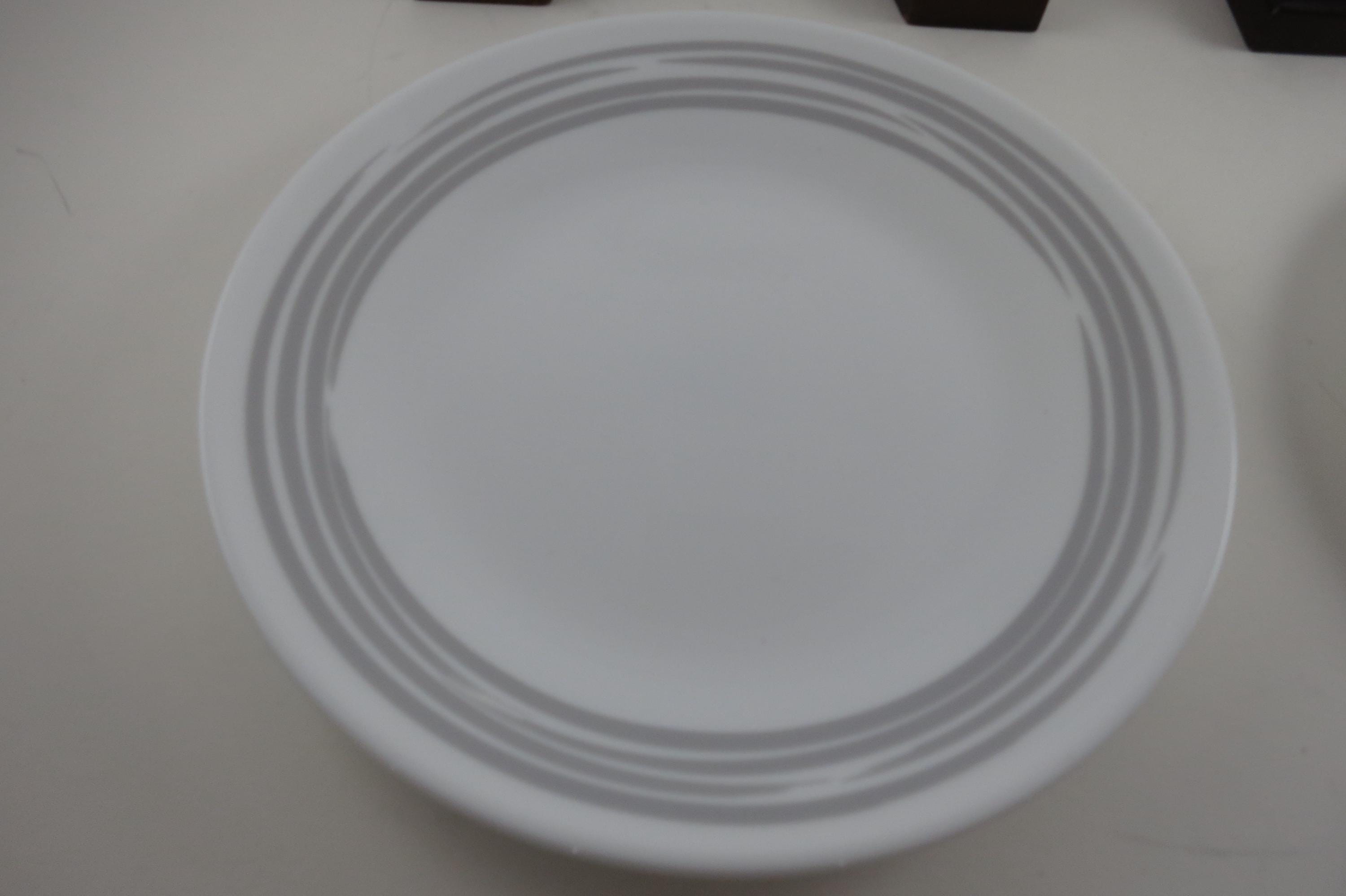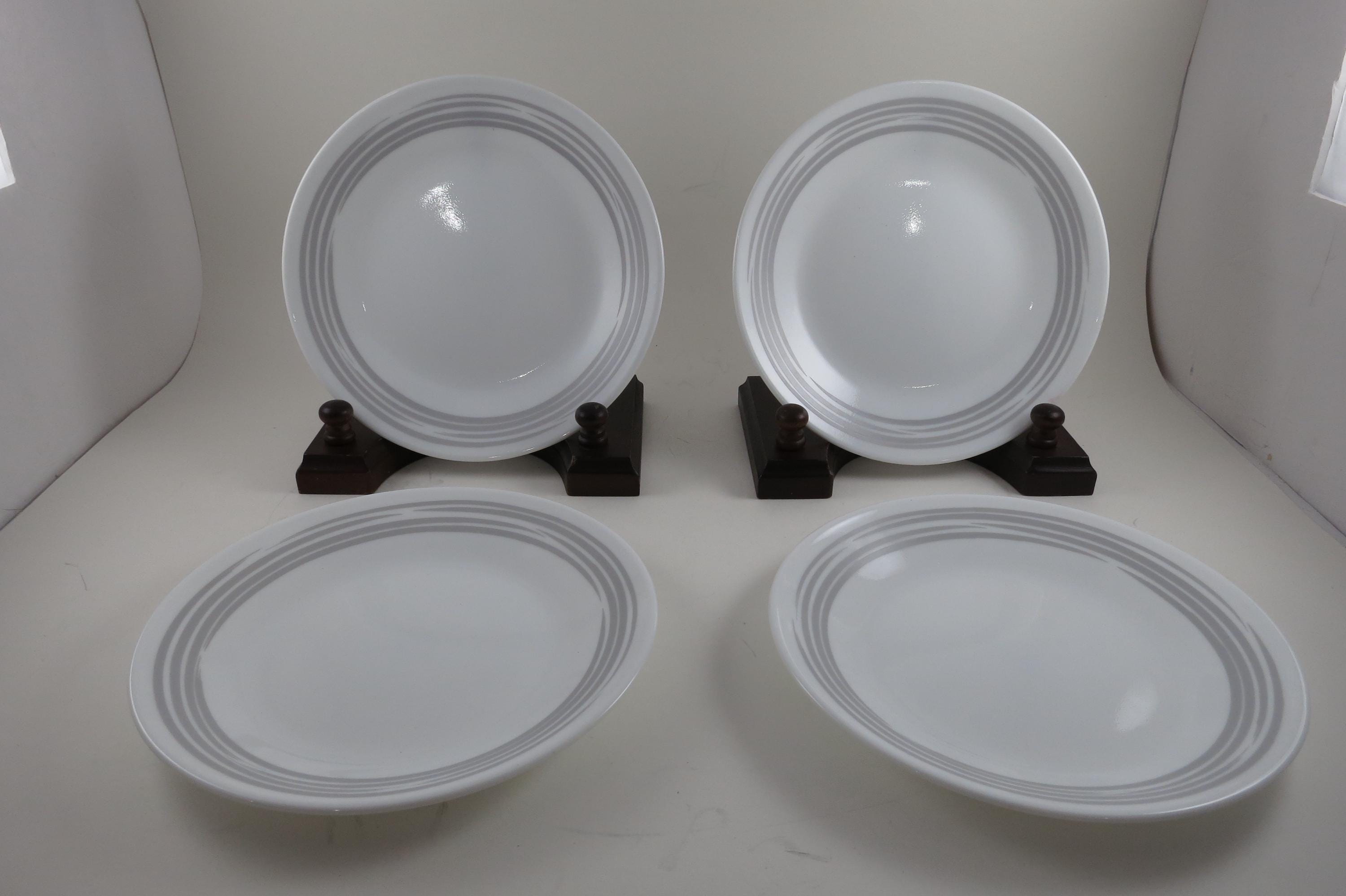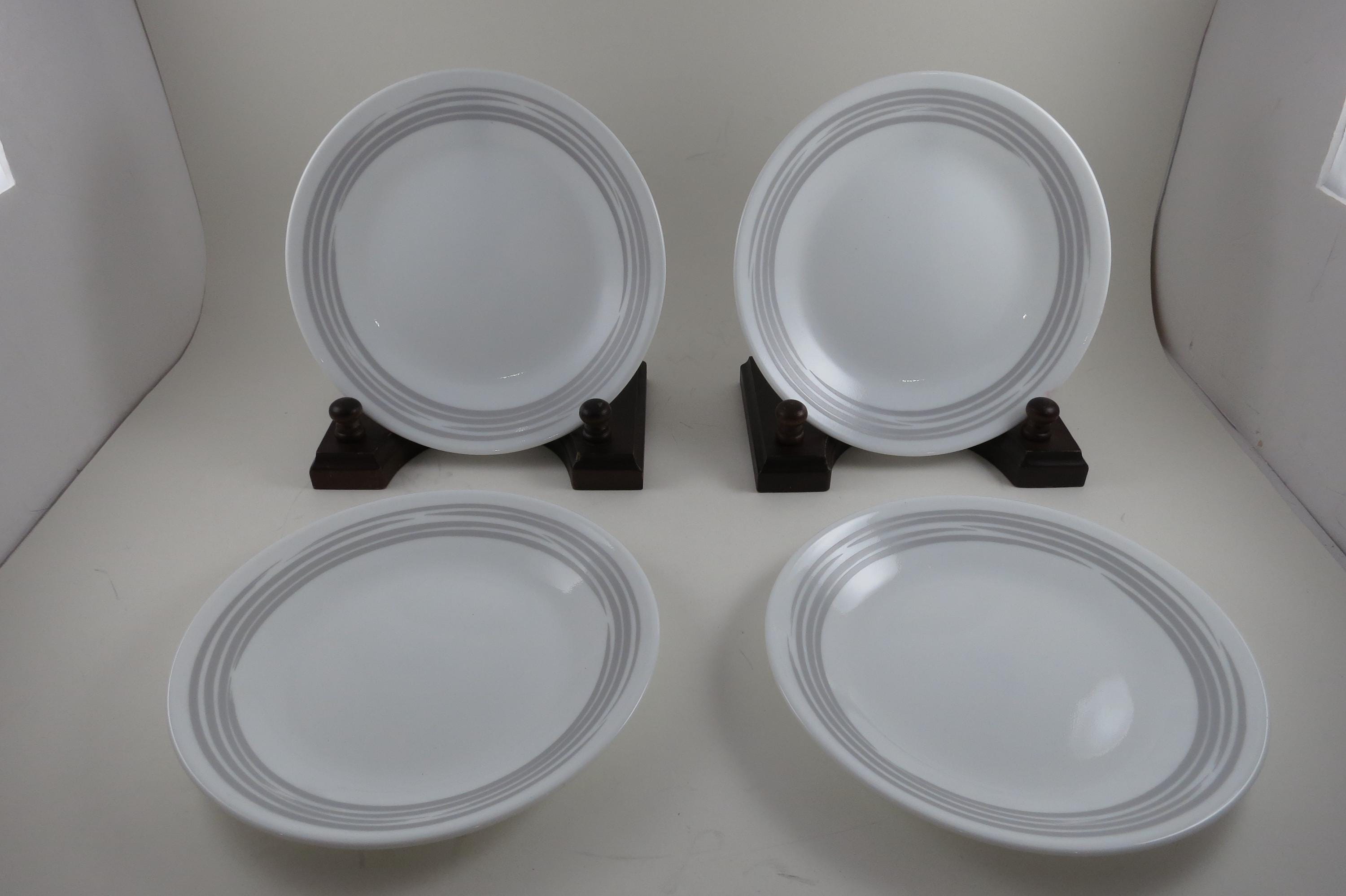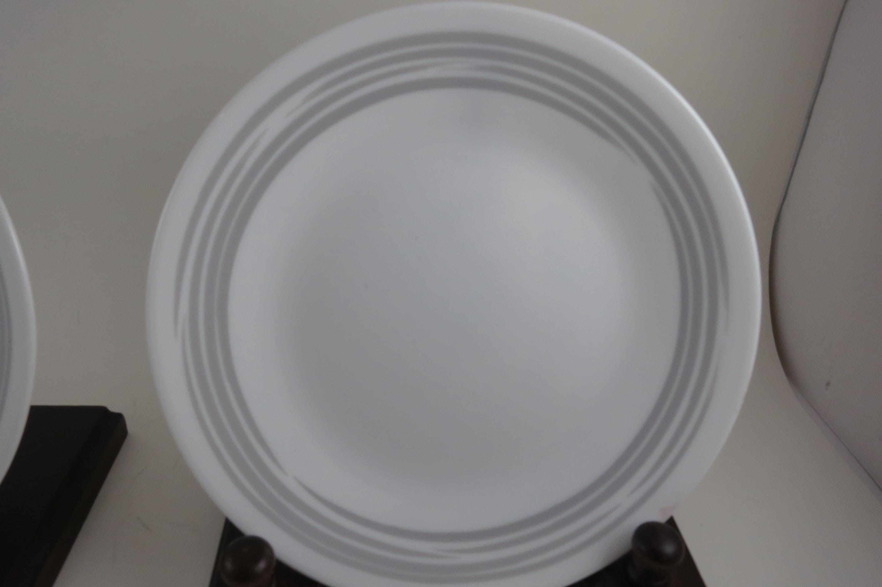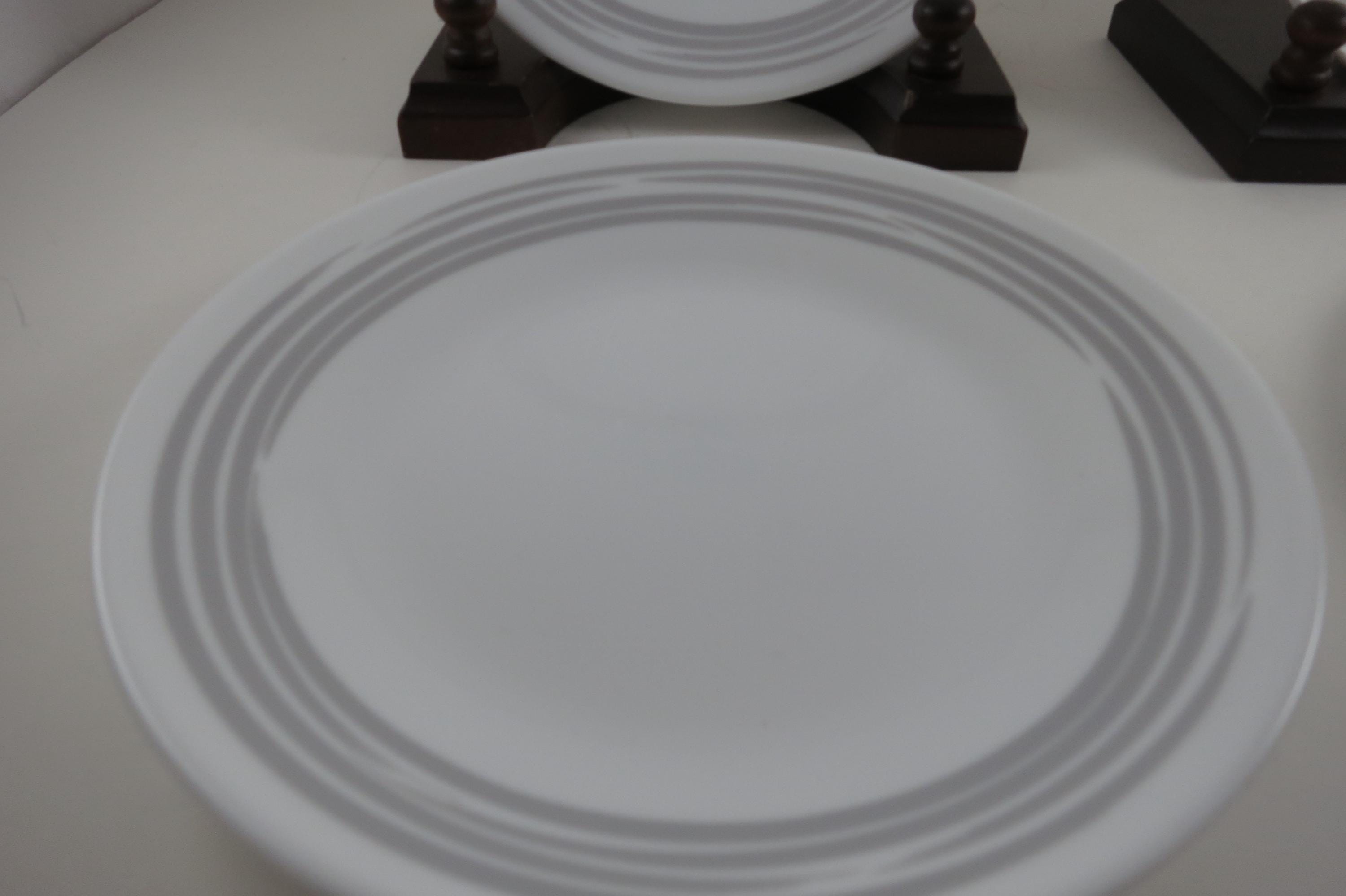 Corelle Strokes of Color Brushed Platinum Silver 6 3/4 Inch Inch Bread Plates - Set of 4. Like New Condition. No chips, cracks or damages. Listing is for 4 Plates.