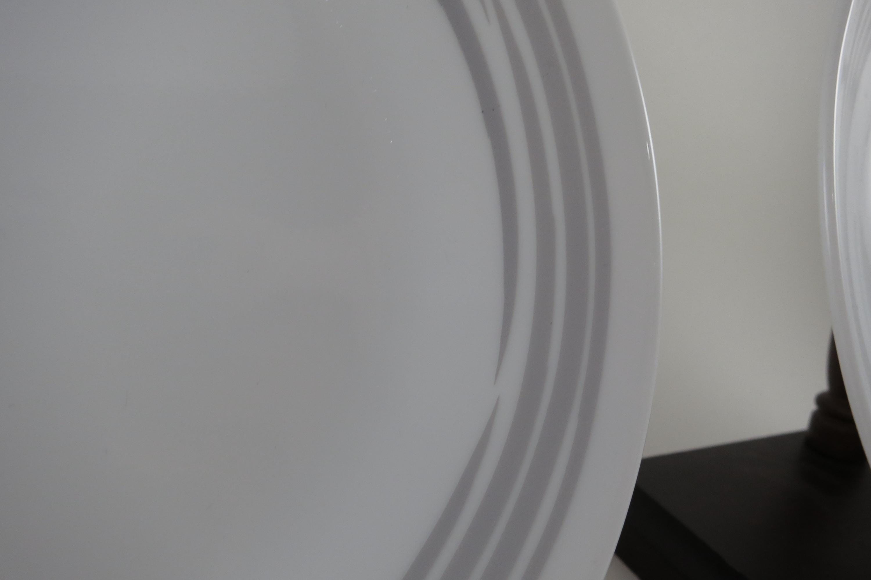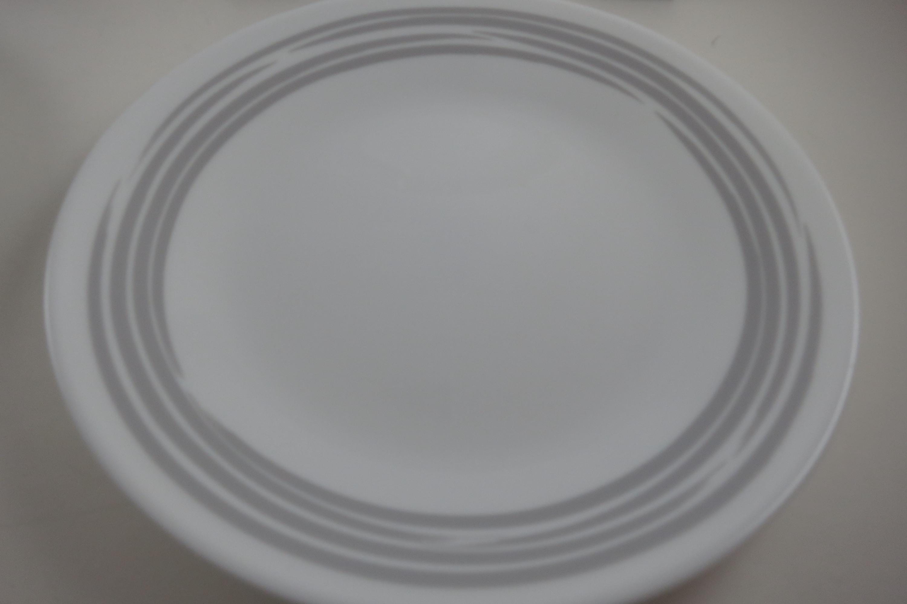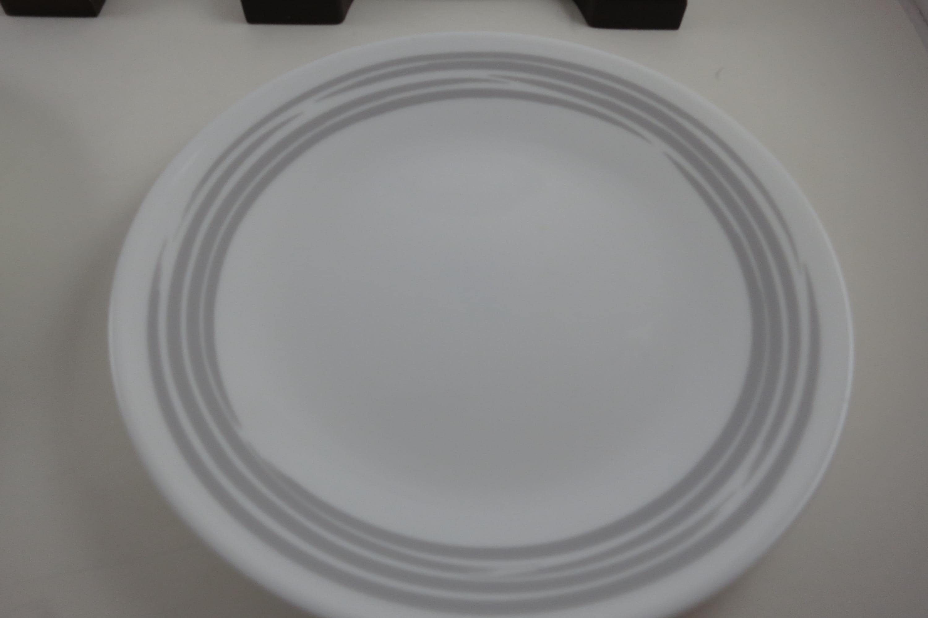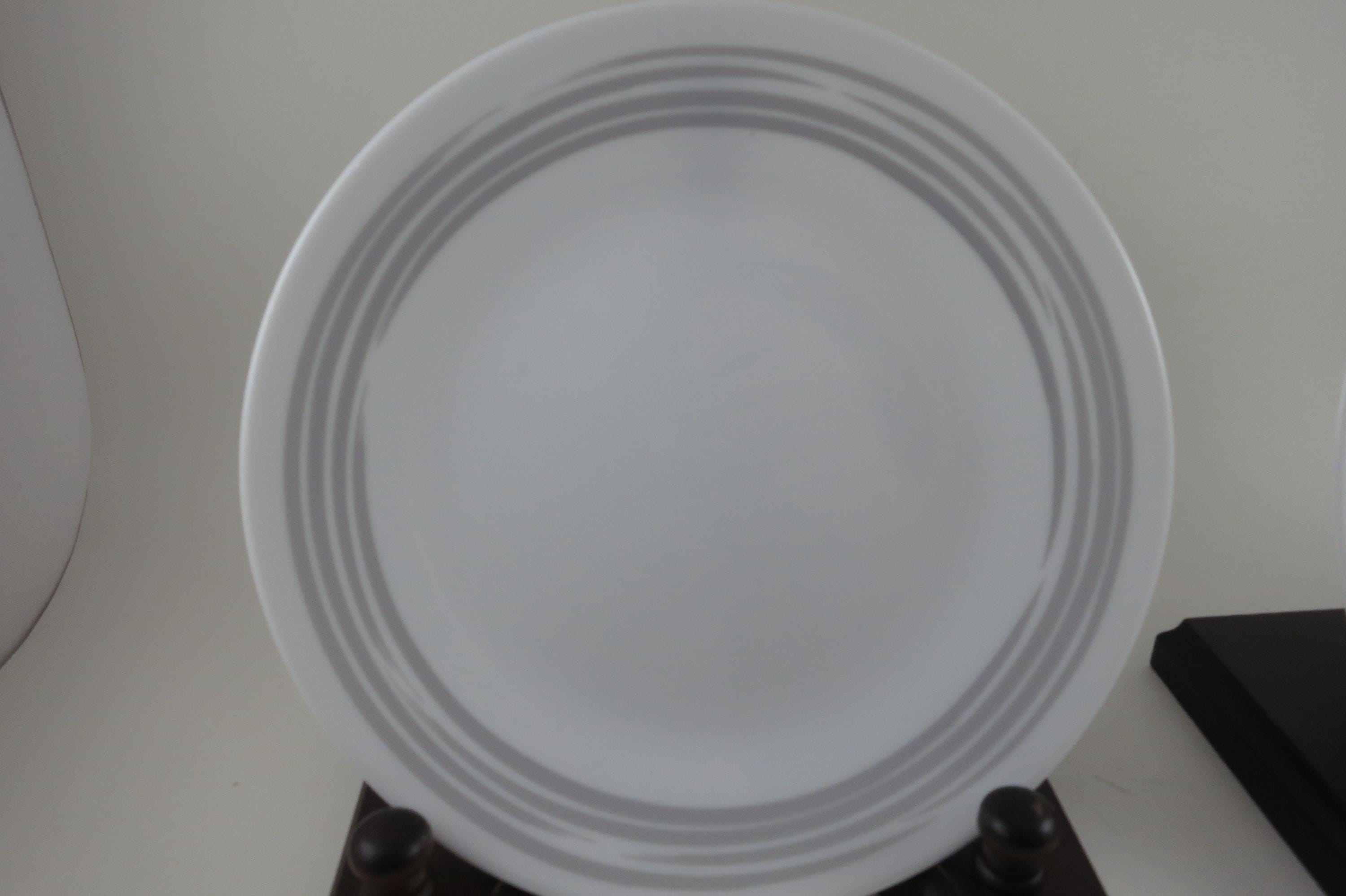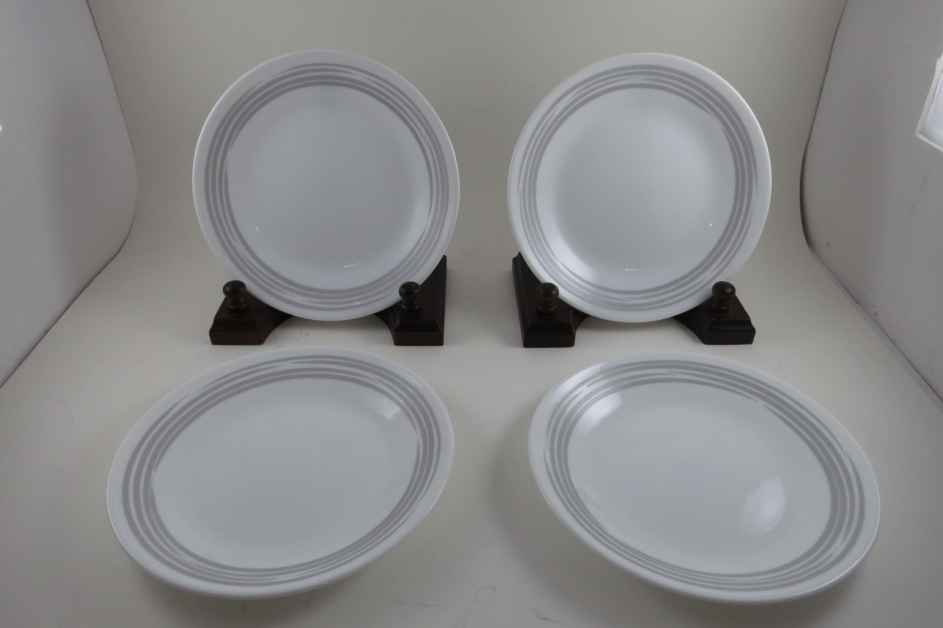 Corelle Strokes of Color Brushed Platinum Silver 6 3/4 Inch Inch Bread Plates - Set of 4. Like New Condition. No chips, cracks or damages. Listing is for 4 Plates.