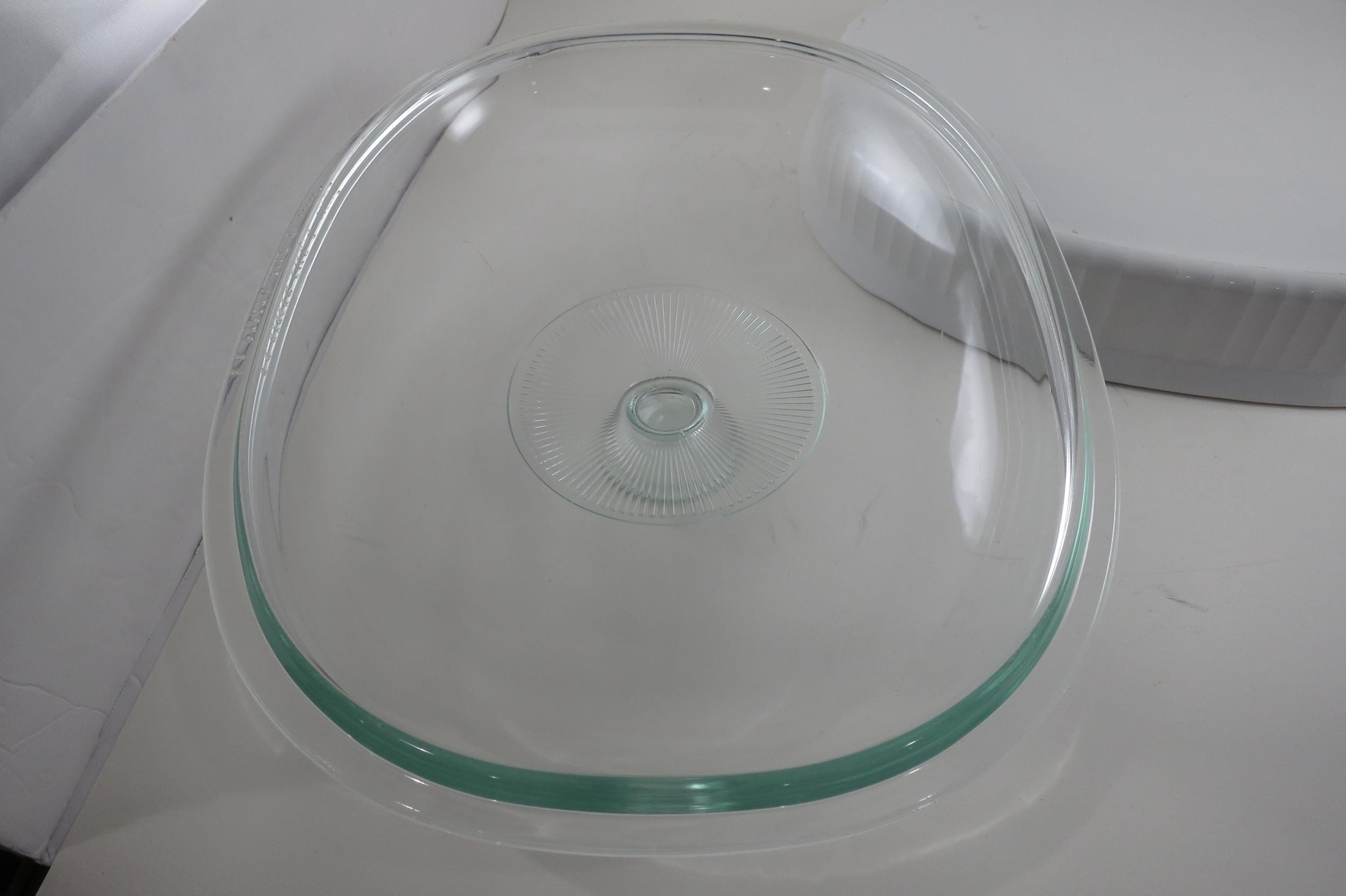 Corelle White Oval Casserole Dish: 4 Liter French White with Glass Lid. No damages, shows normal use wear, ready to keep using!