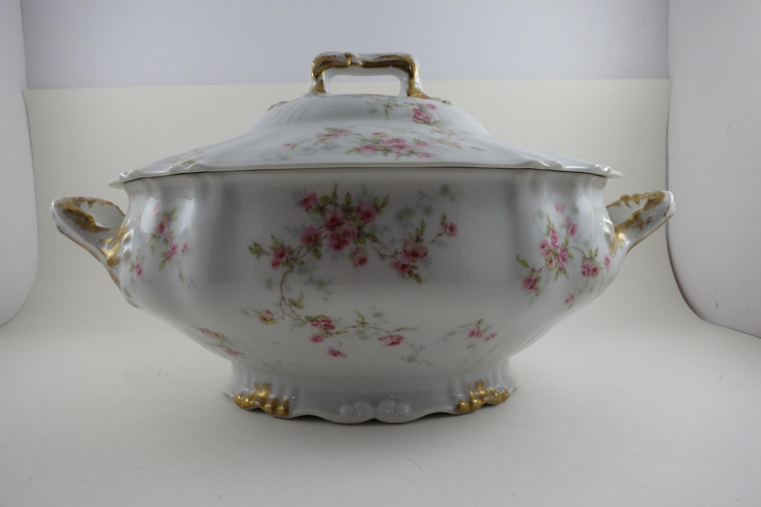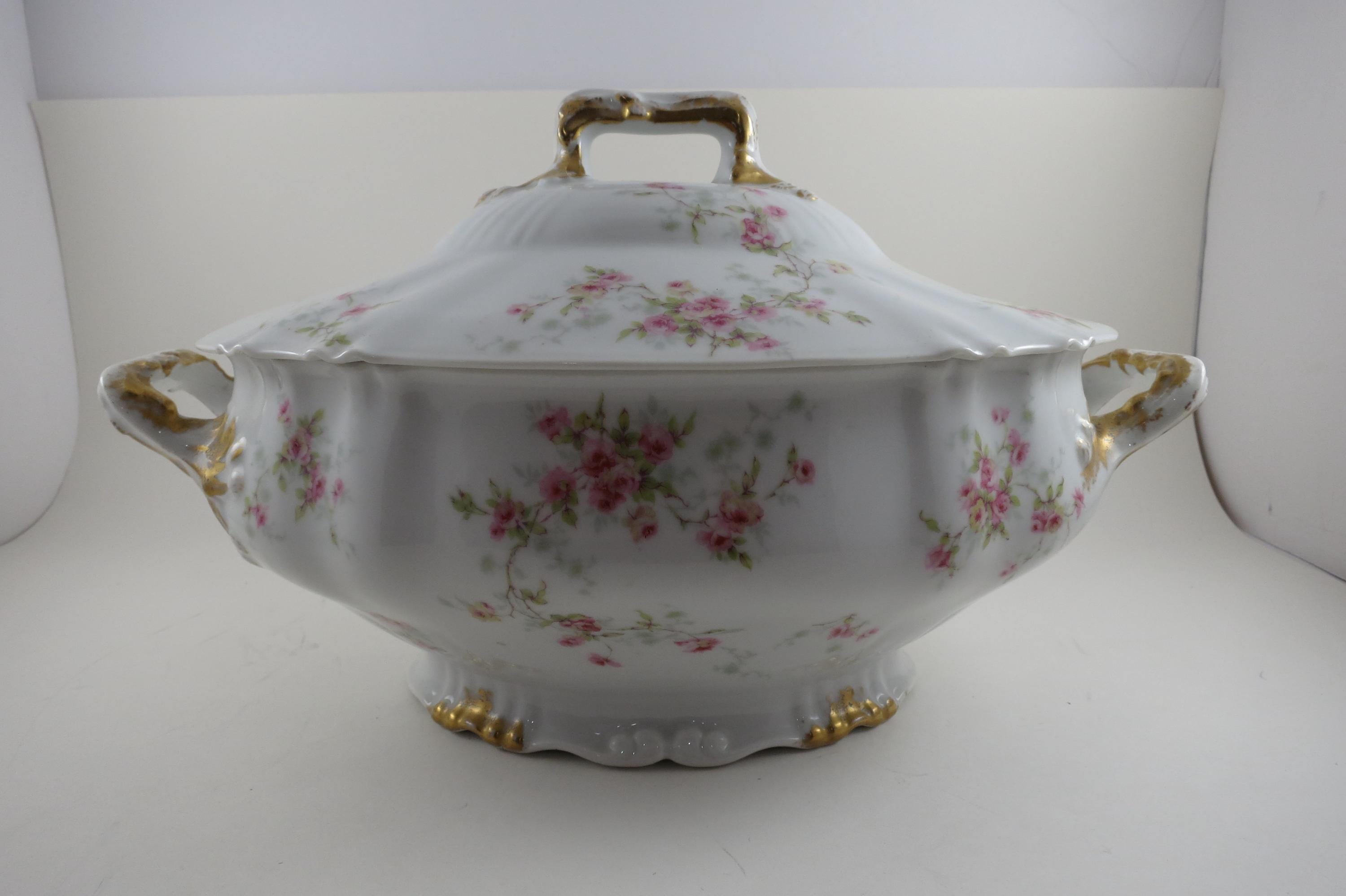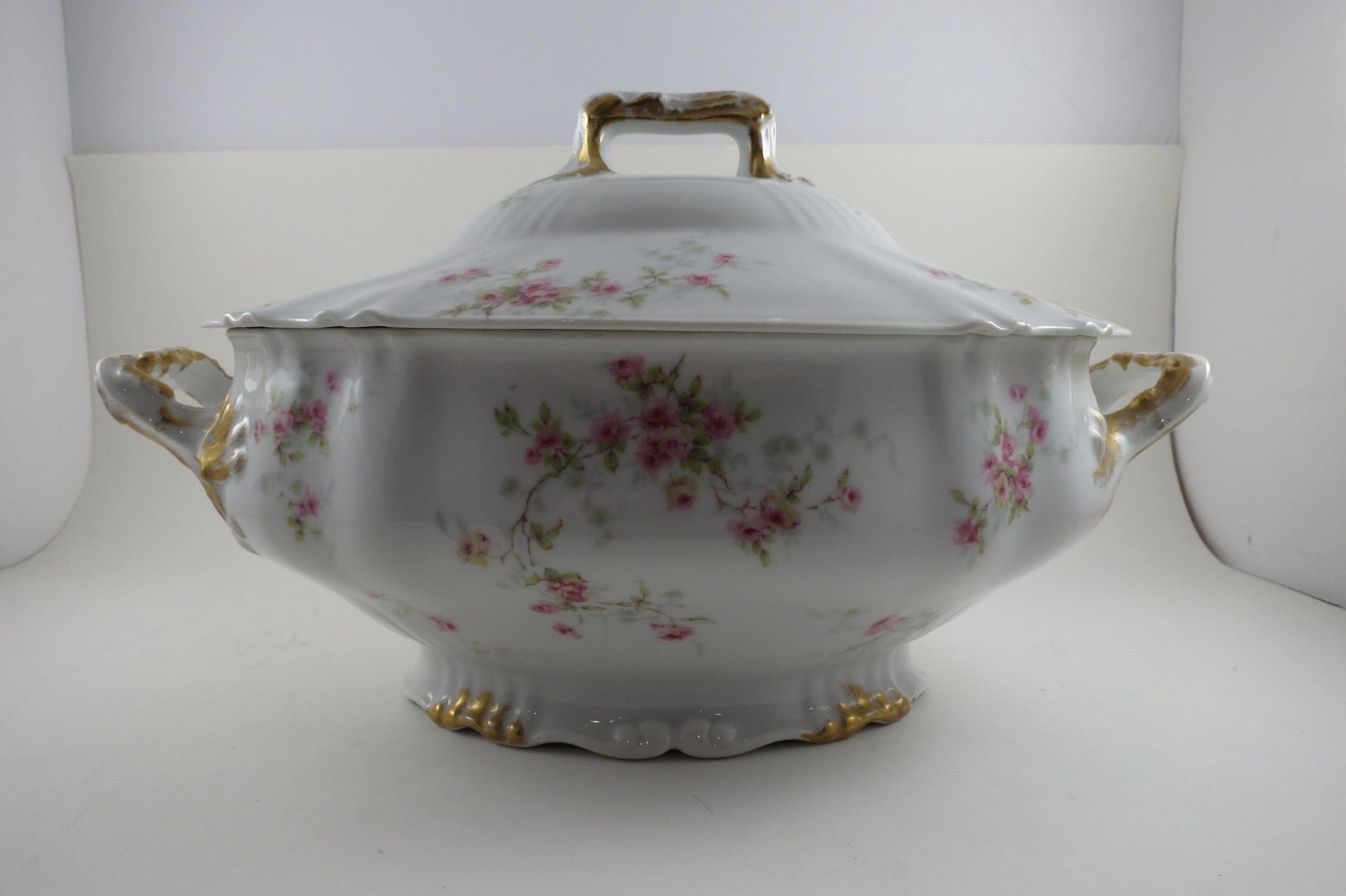 Vintage Haviland Limoges France Schleiger Pink Roses Pattern Tureen with Lid.