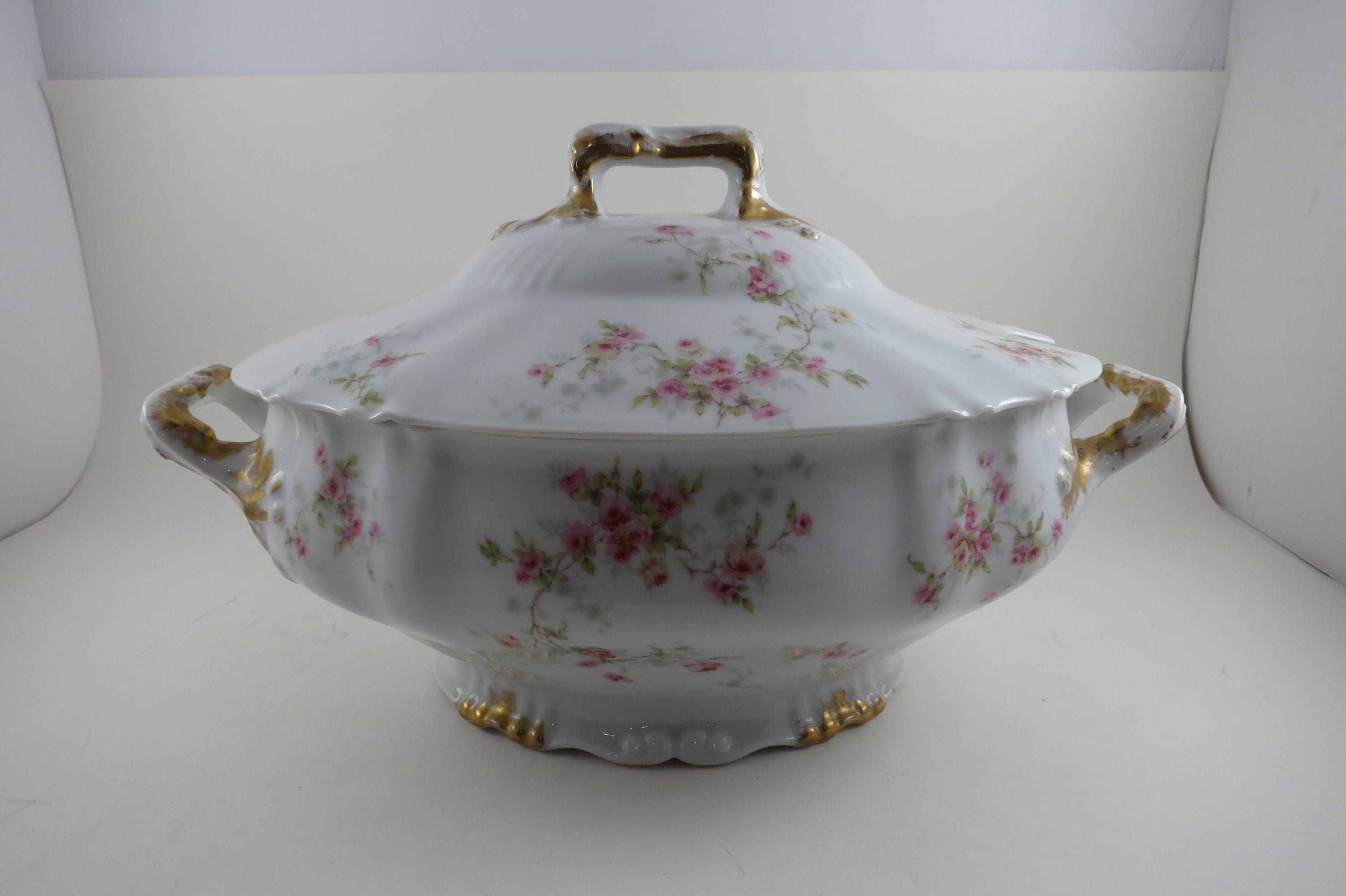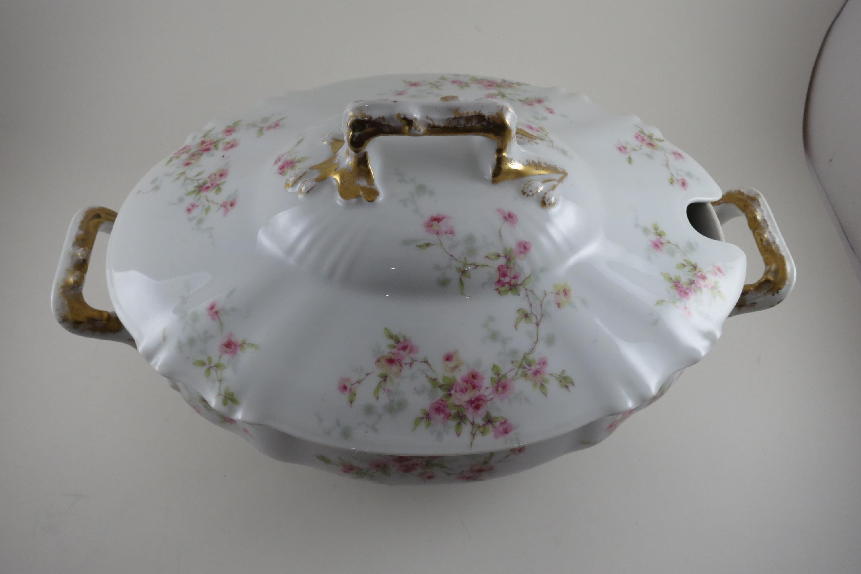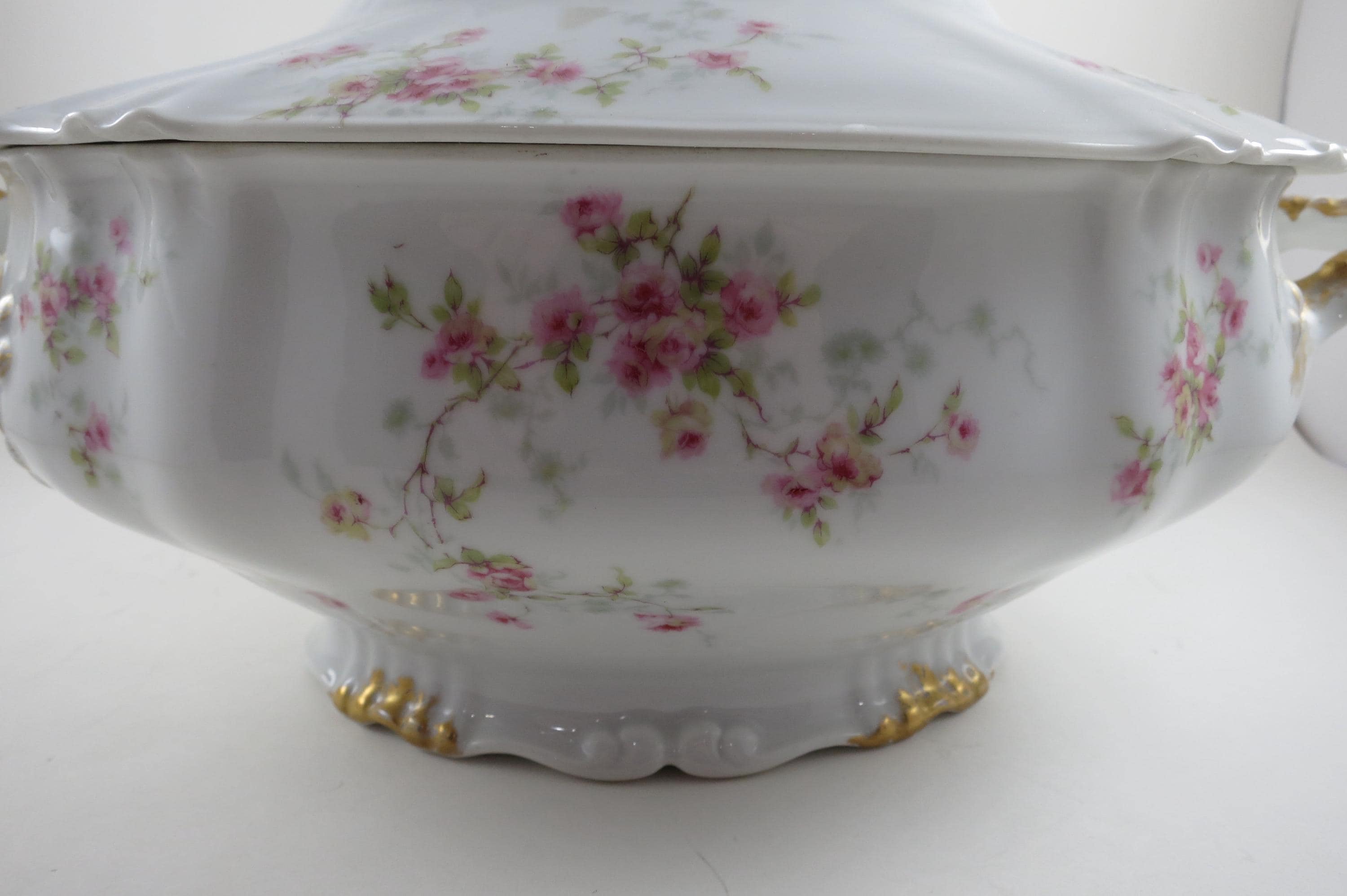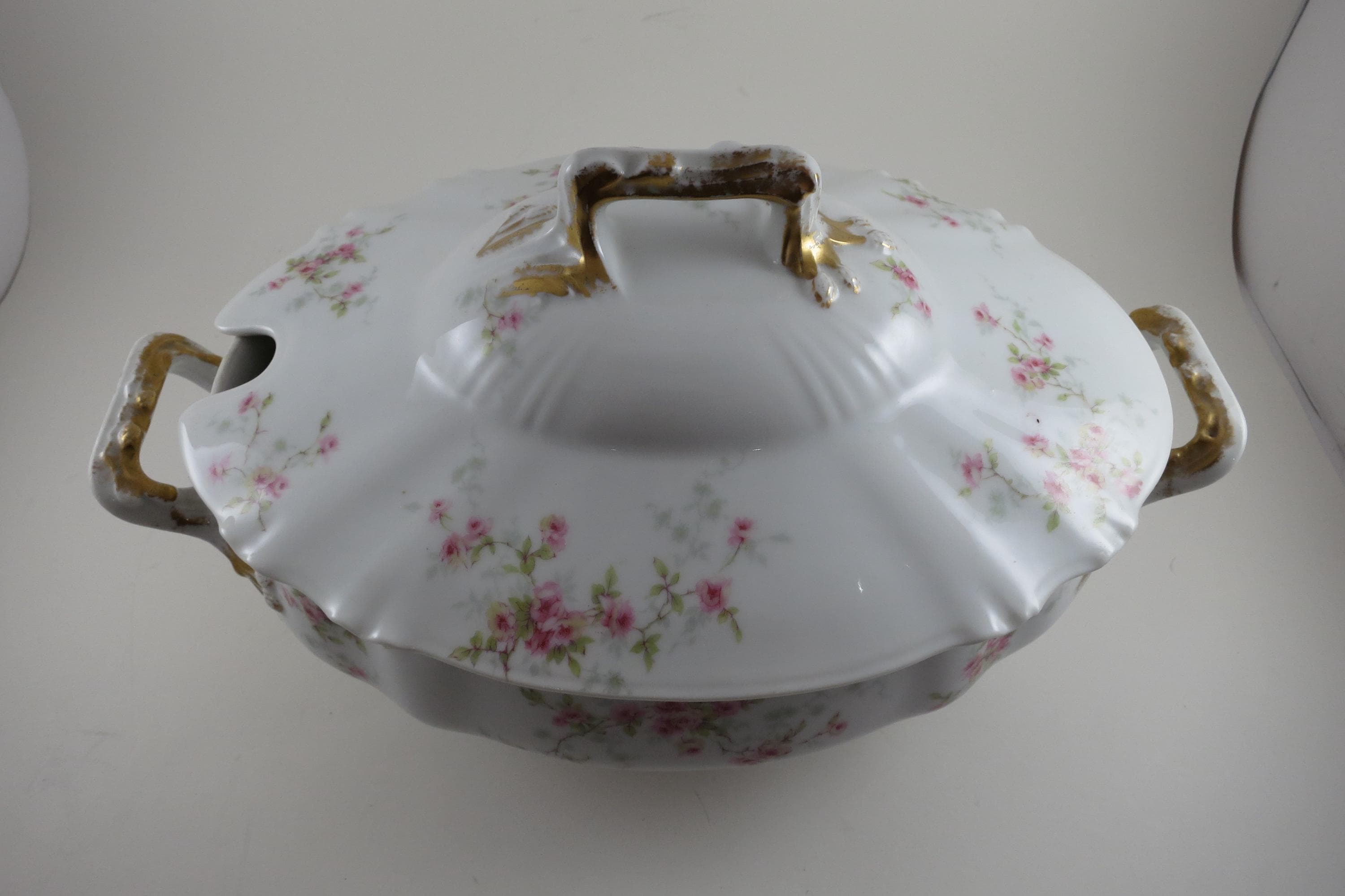 Vintage Haviland Limoges France Schleiger Pink Roses Pattern Tureen with Lid.
