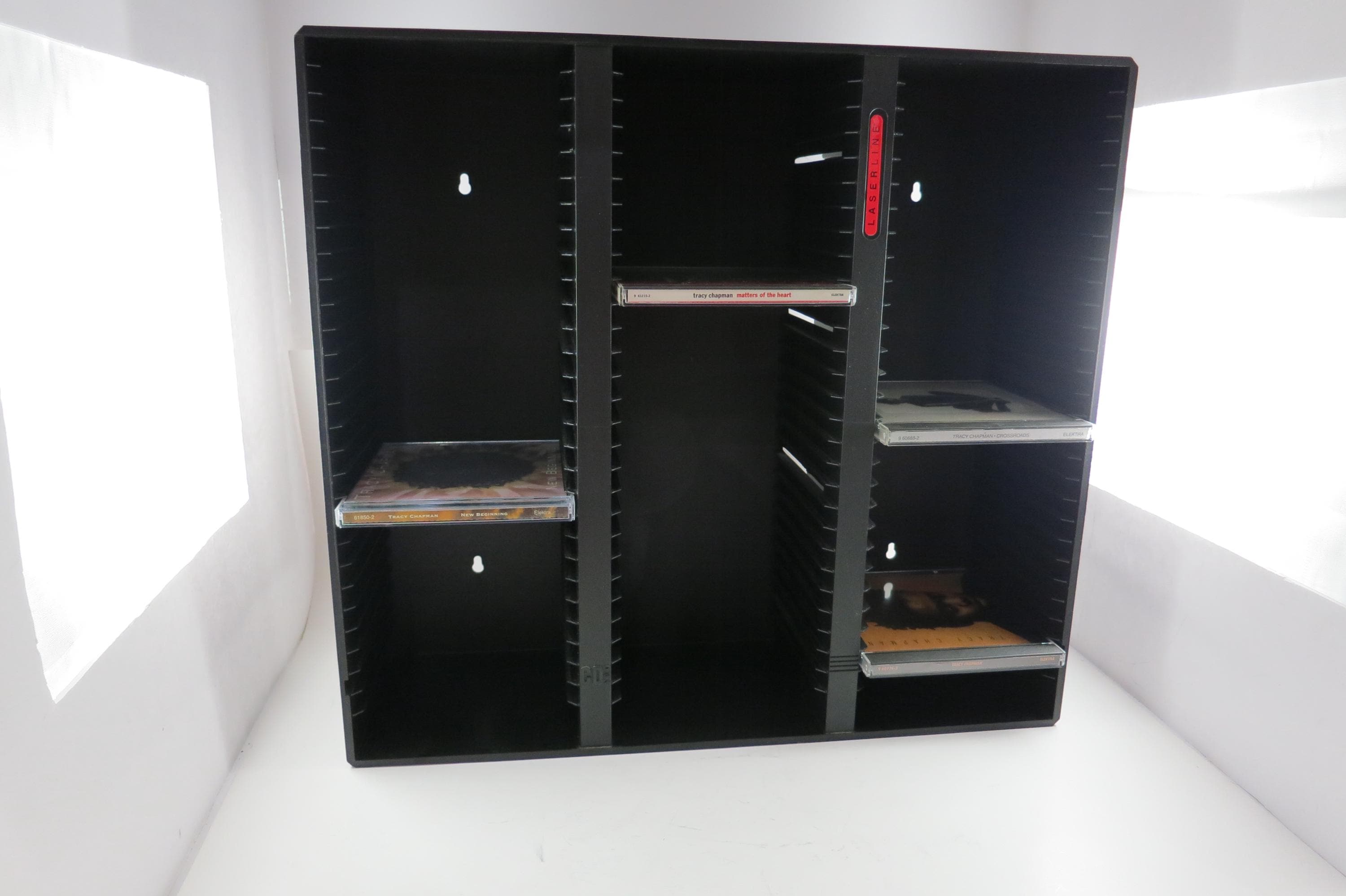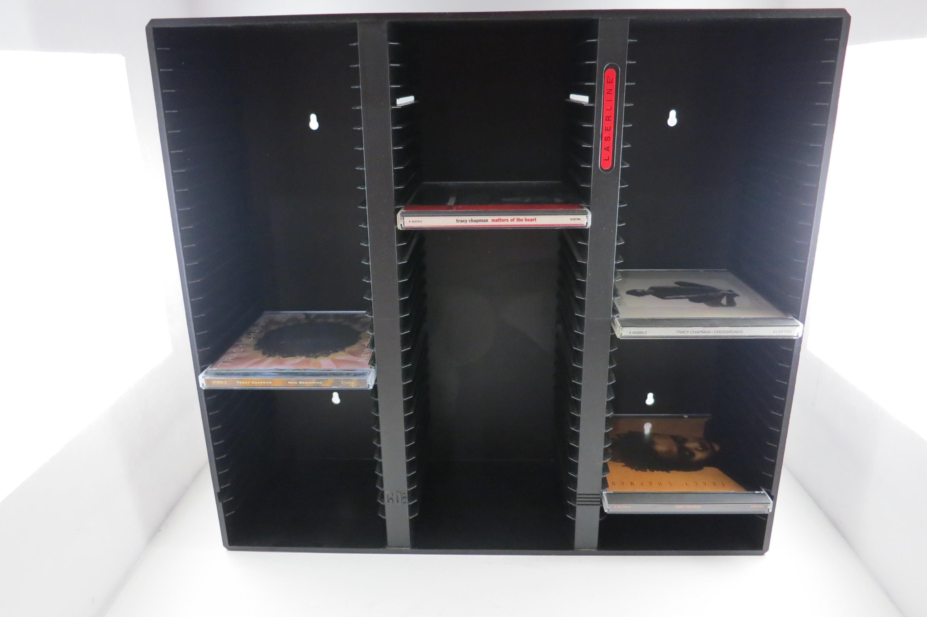 1990s Black Laserline CD Holder: Stores 90 CDs, Hard Plastic, Free Standing/Wall Mount