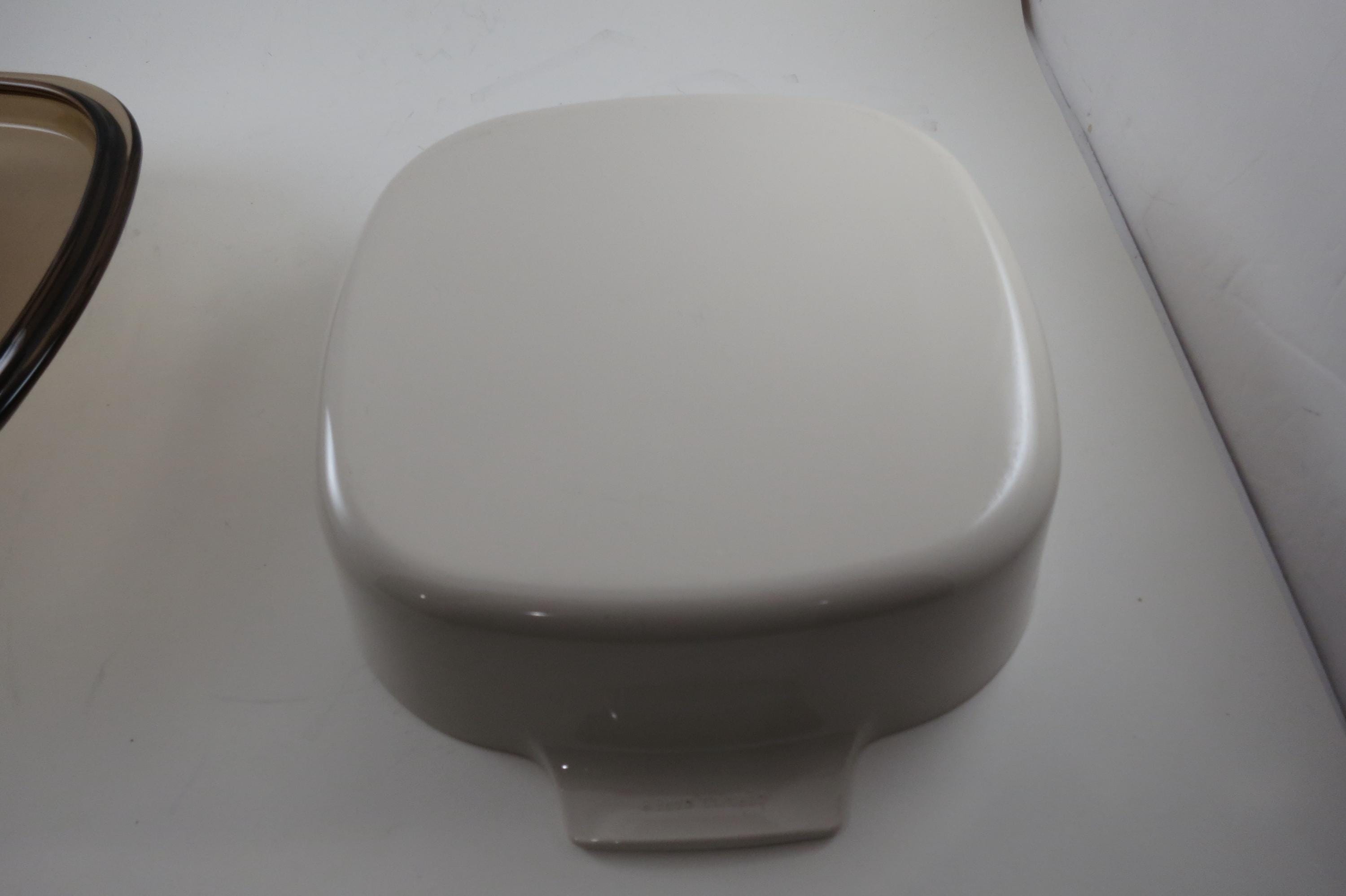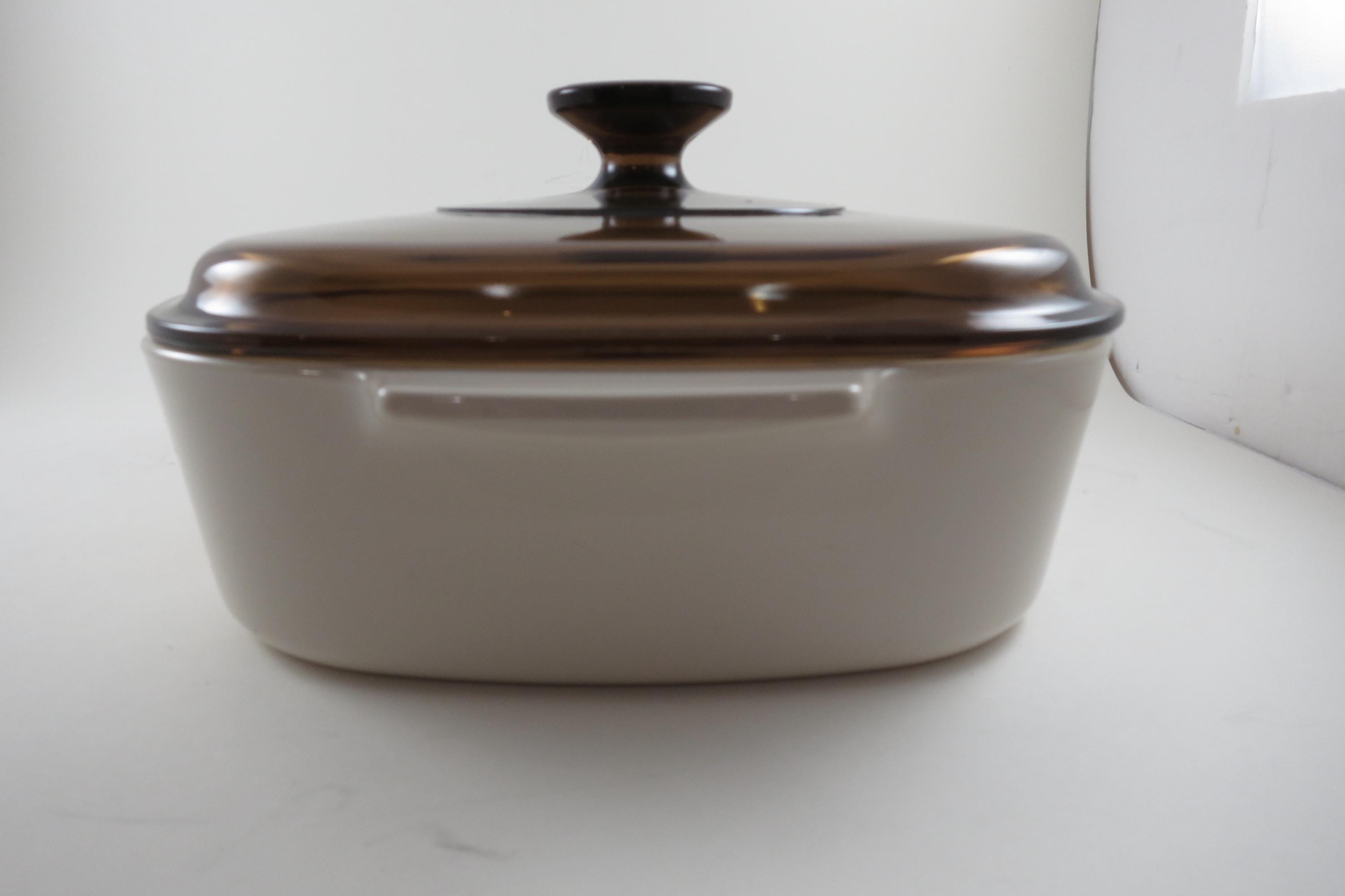 Vintage Corning Ware 2 Liter Abundance Beige Pattern Saucepan with Brown Pyrex Lid. No damages, only very light use wear. Number A-2-B, this is the much harder to find Beige with the Brown Pyrex Fireside lid. Excellent condition. Ready to keep using or display!