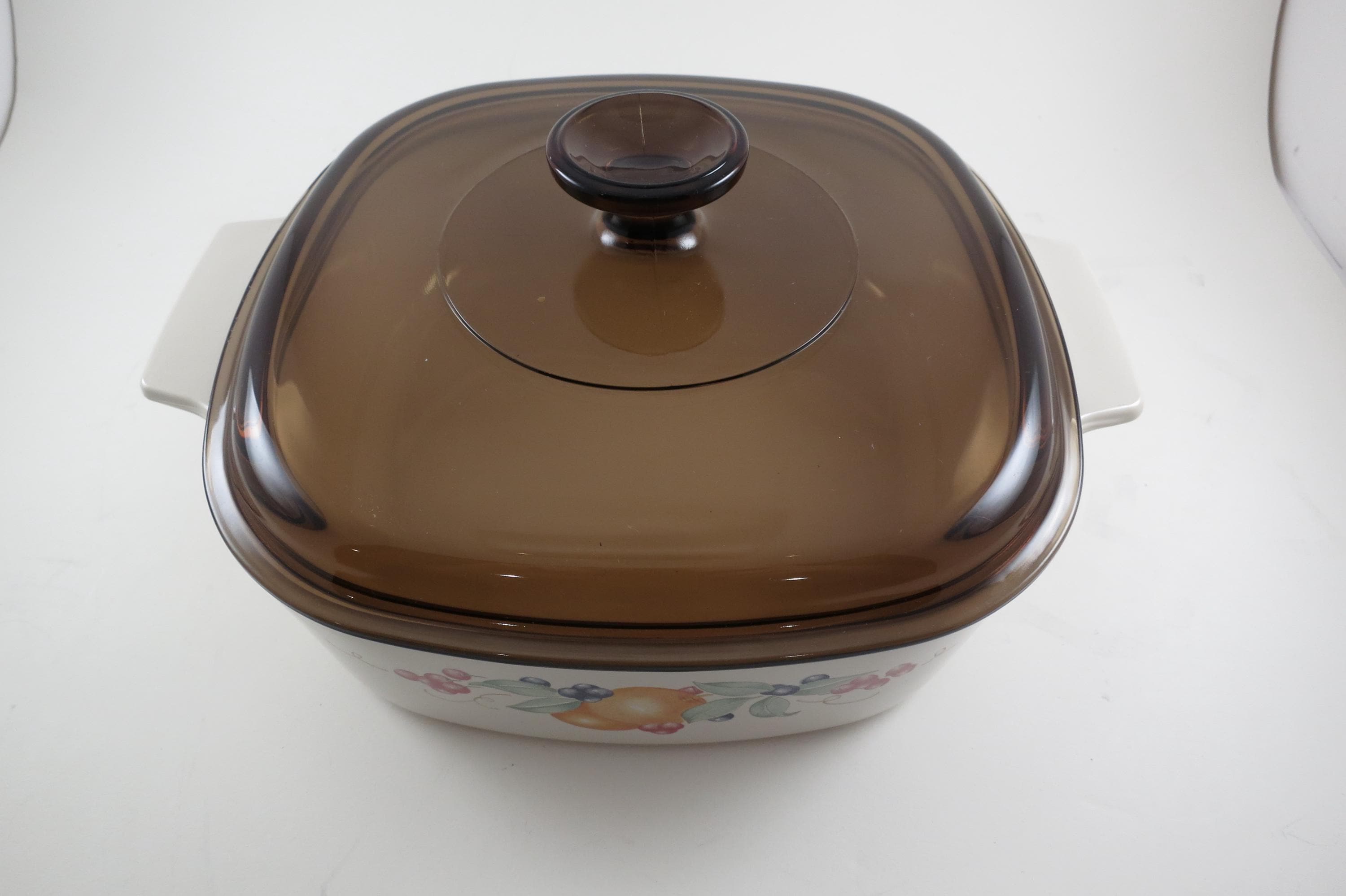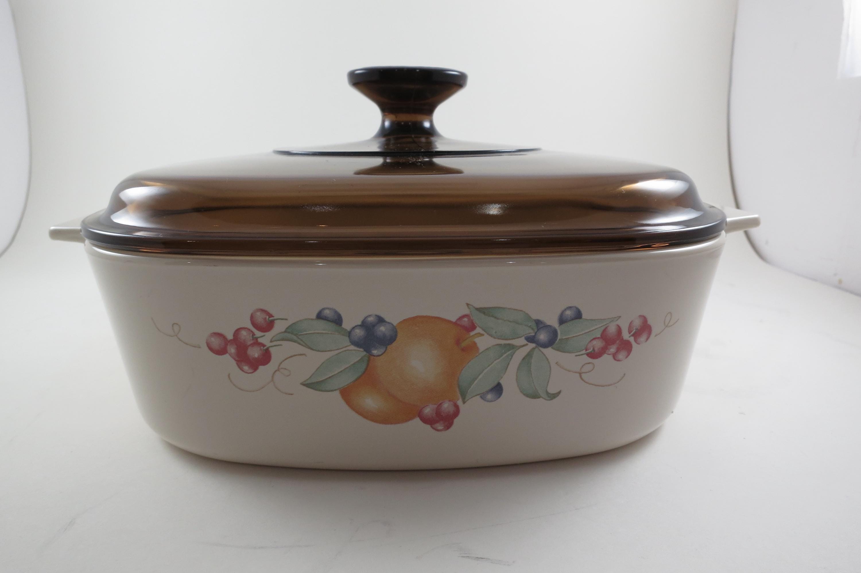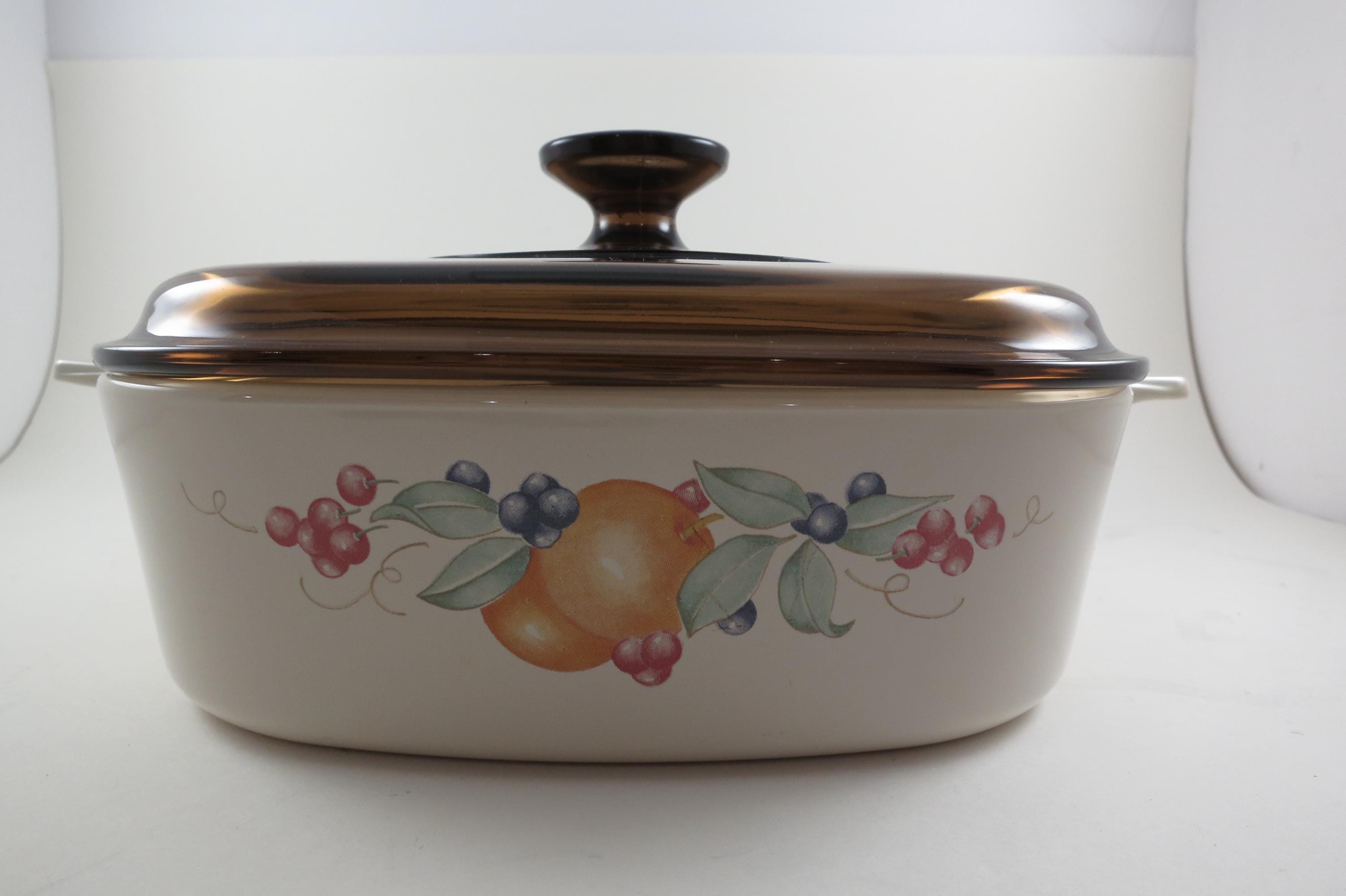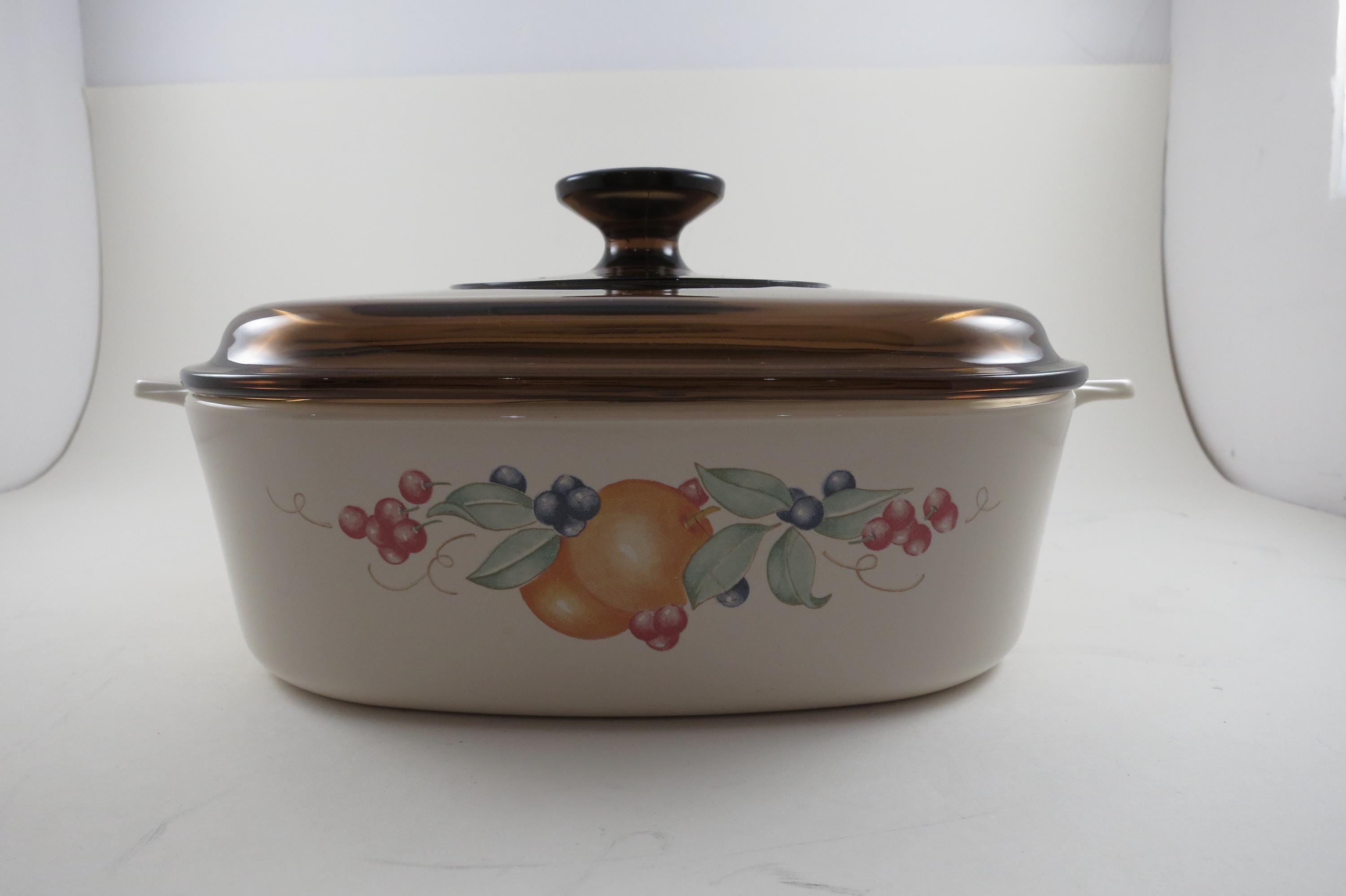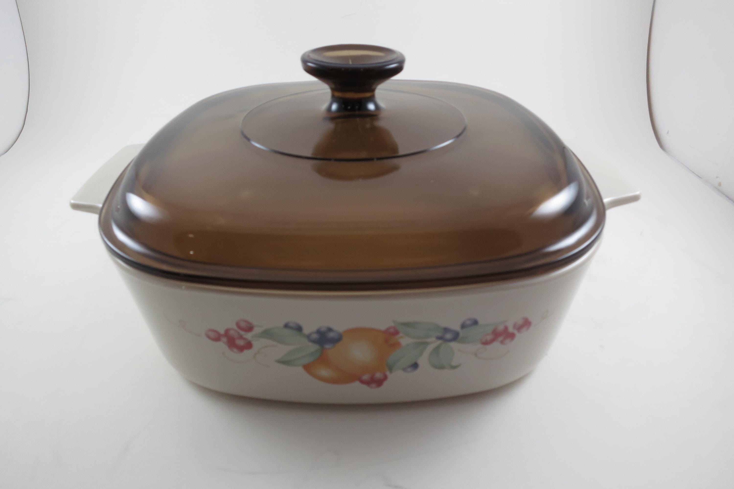 Vintage Corning Ware 2 Liter Abundance Beige Pattern Saucepan with Brown Pyrex Lid