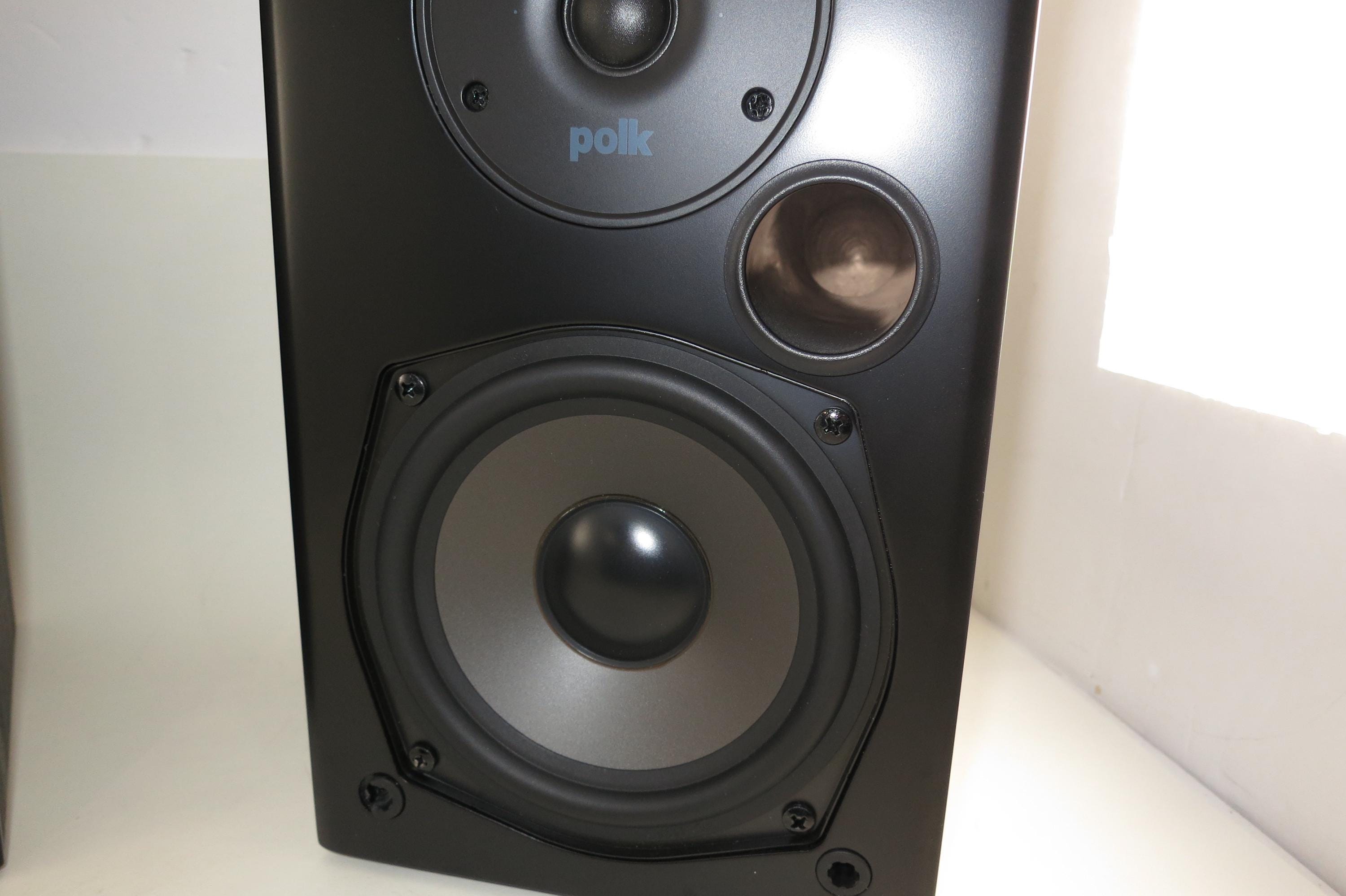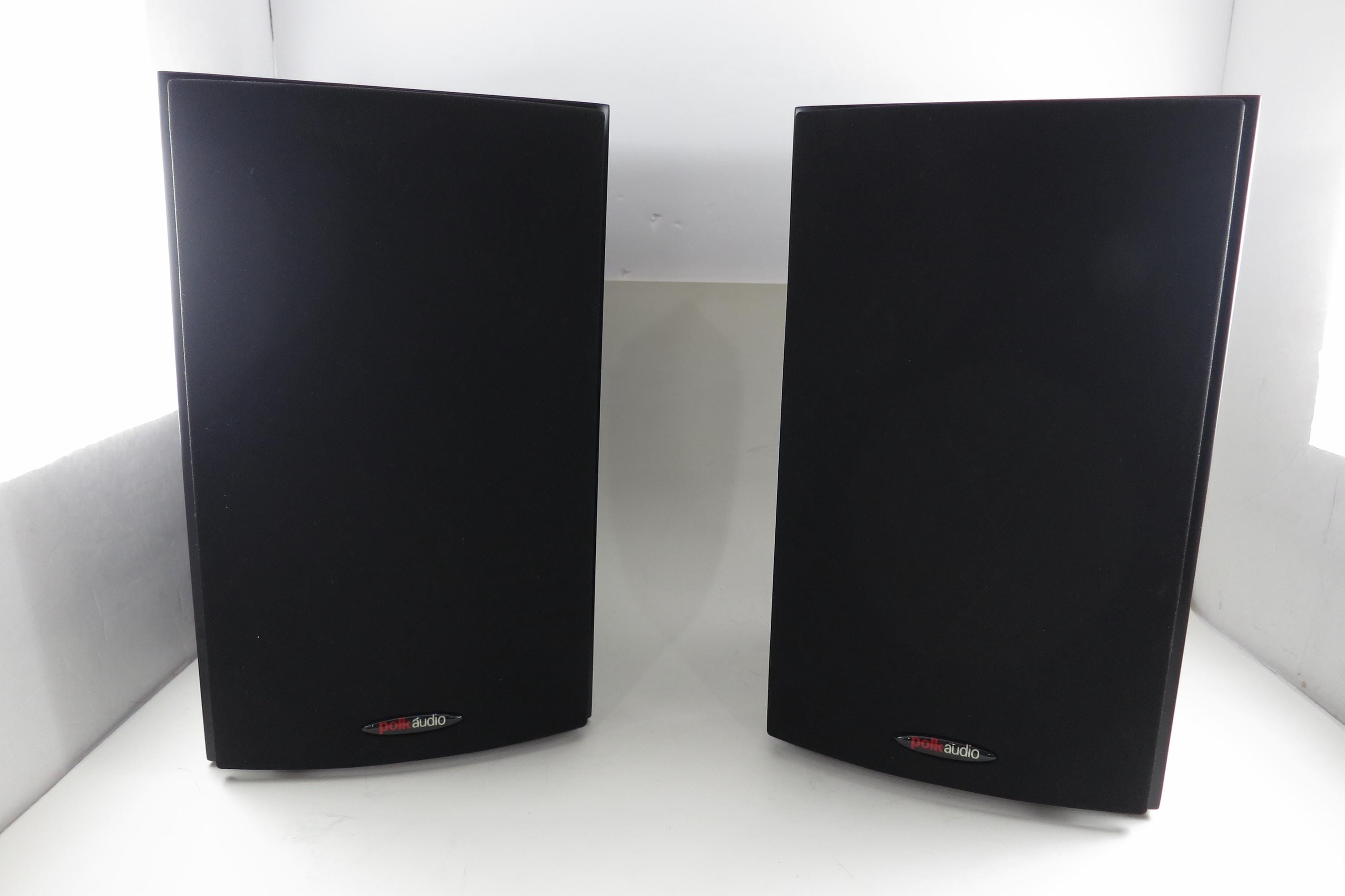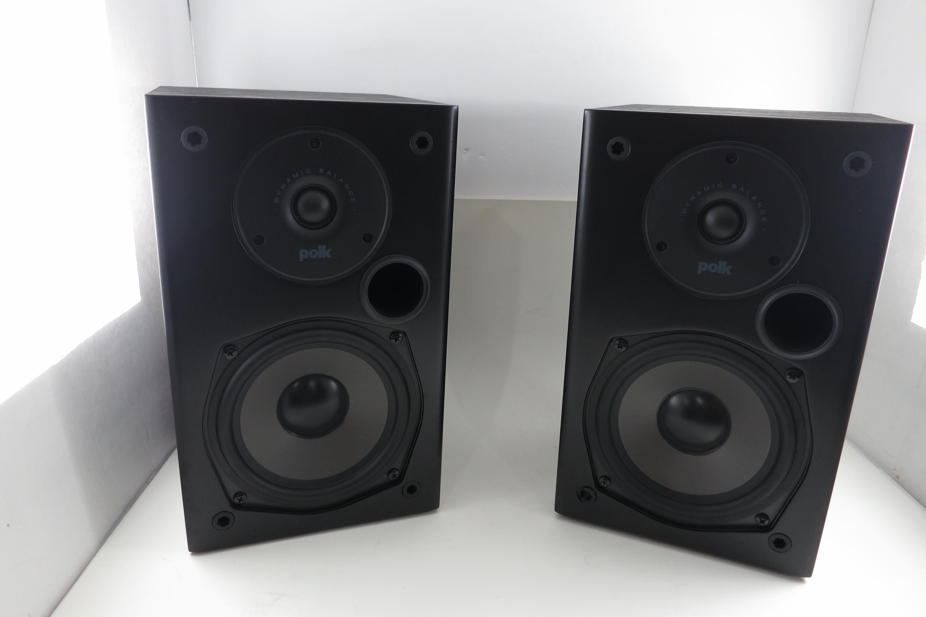Pair of Polk Audio T15 Home Theater Bookshelf Speakers 100 Watt Black. They measure 6 1/2 inches wide, 7 1/4 inches deep and 10 1/2 inches tall. Great sound and clarity, these can handle 20-100 watts per channel. These are in great condition and have sequential serial numbers. They feature a 5 1/4 inch mid woofer and 3/4 inch tweeters.
