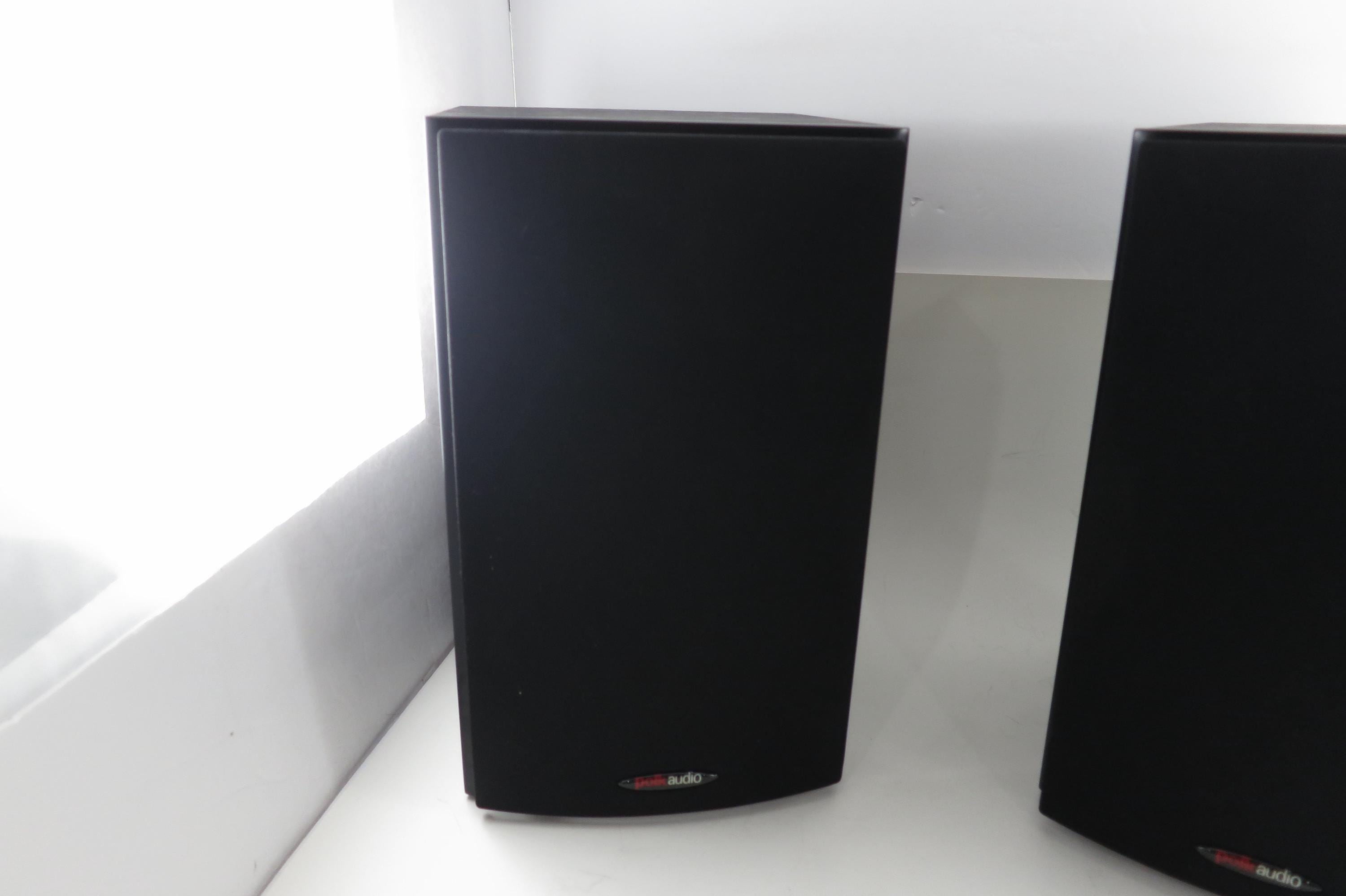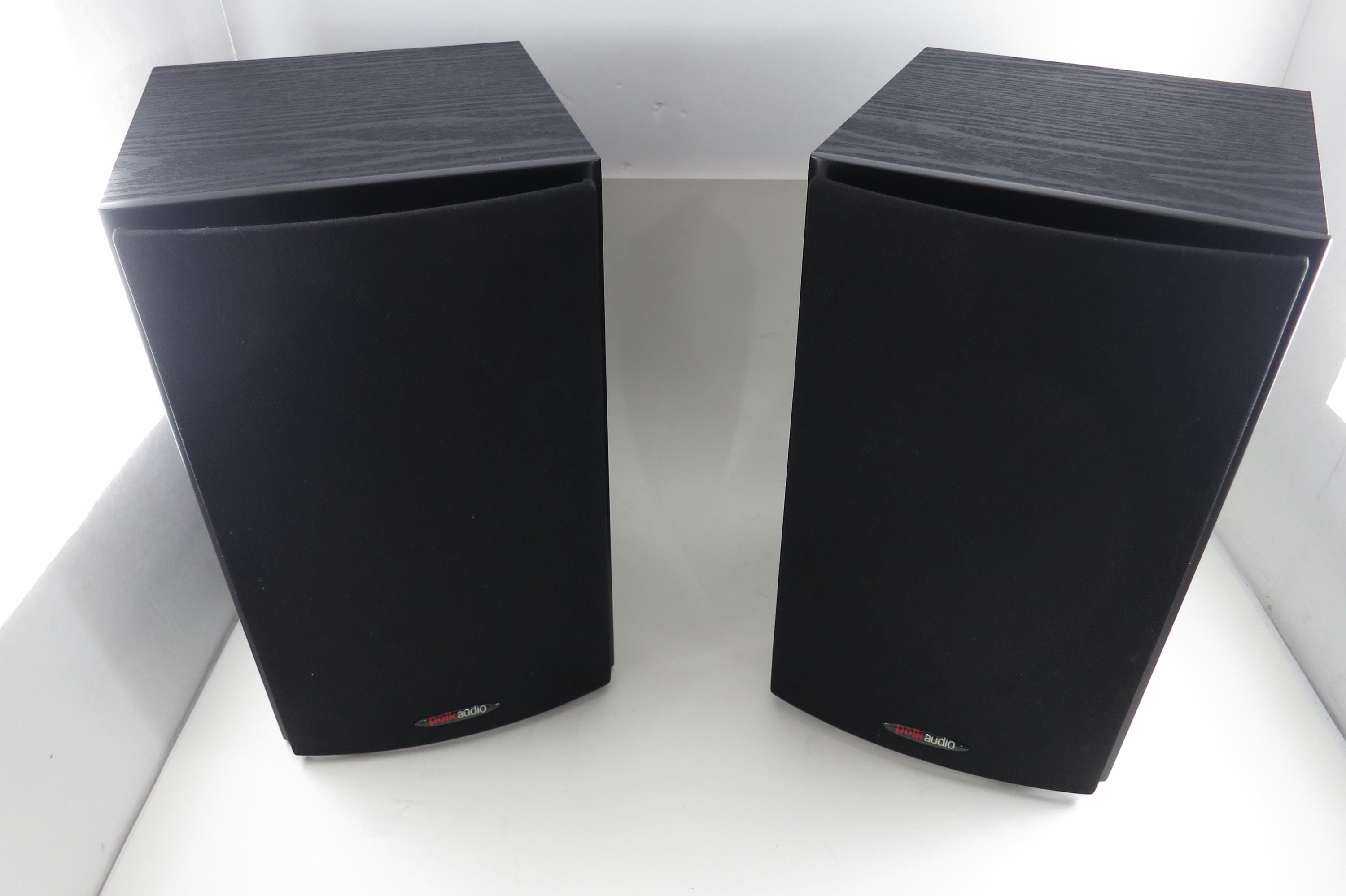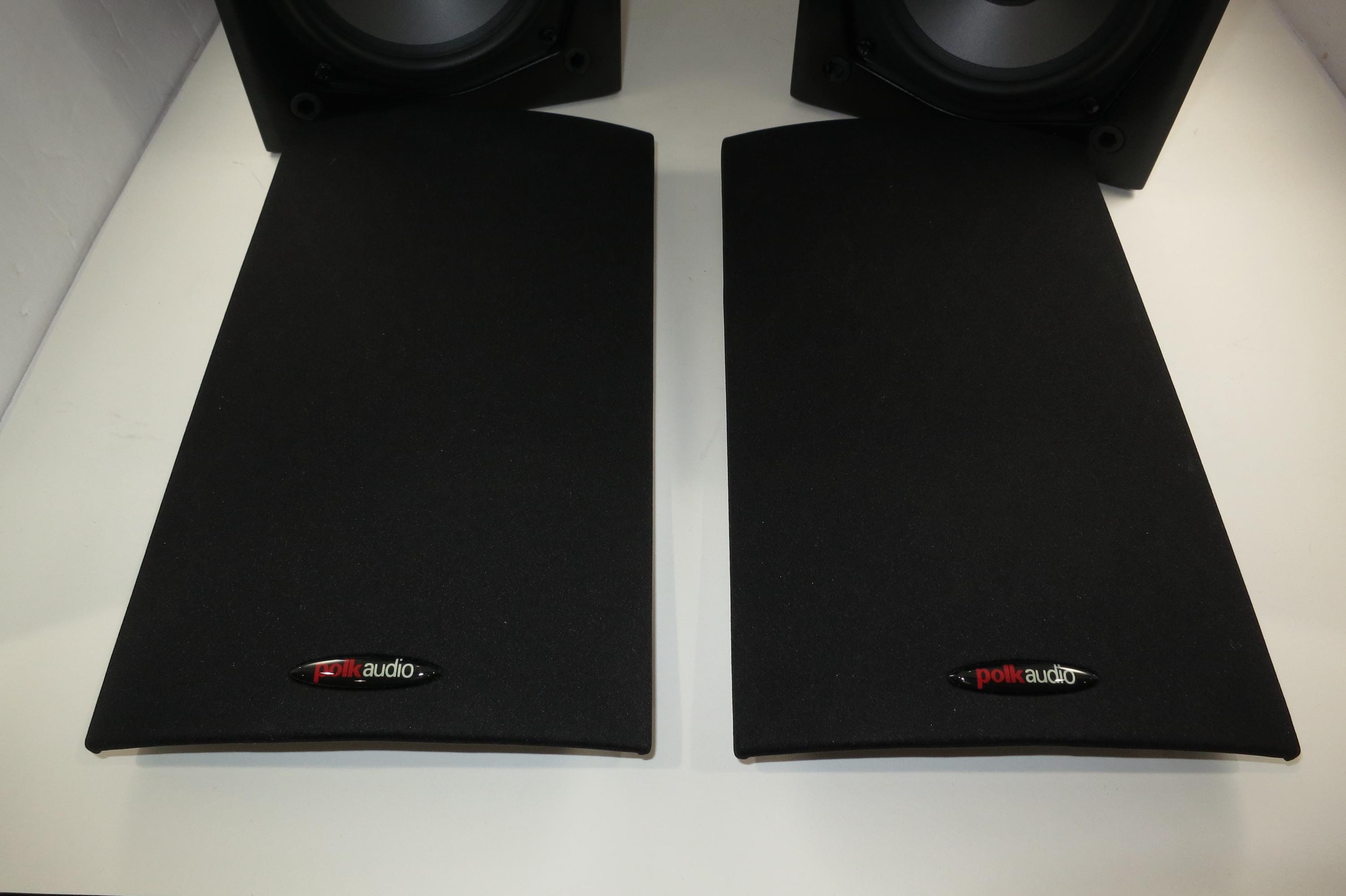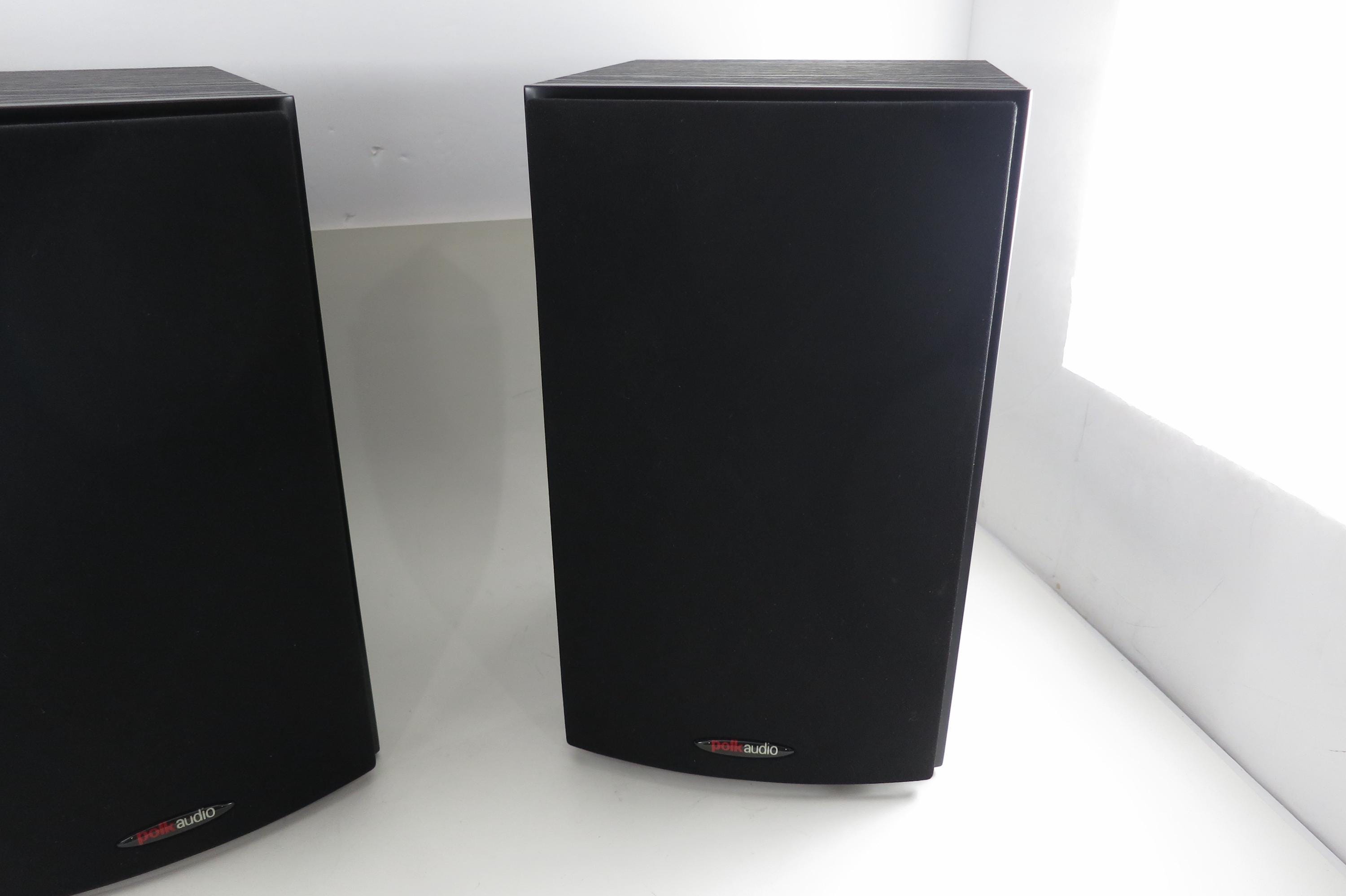 Pair of Polk Audio T15 Home Theater Bookshelf Speakers 100 Watt Black. They measure 6 1/2 inches wide, 7 1/4 inches deep and 10 1/2 inches tall. Great sound and clarity, these can handle 20-100 watts per channel. These are in great condition and have sequential serial numbers. They feature a 5 1/4 inch mid woofer and 3/4 inch tweeters.