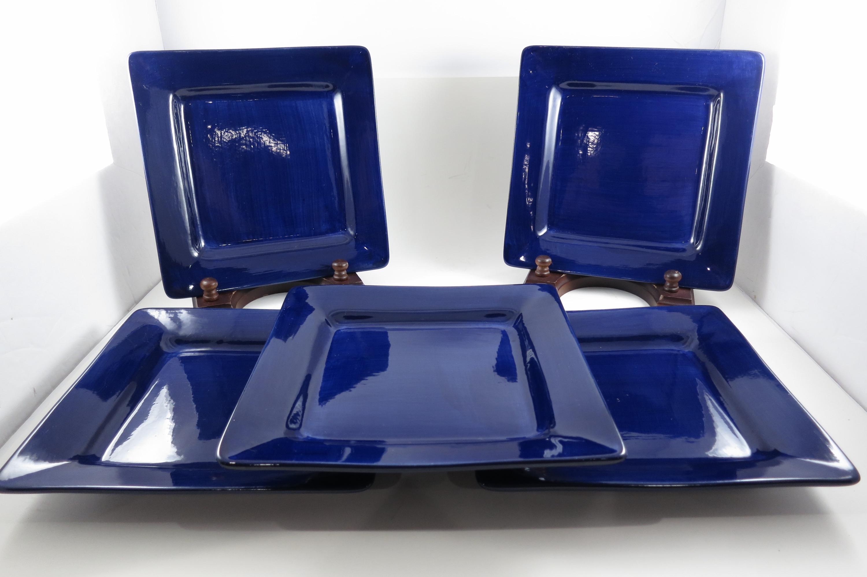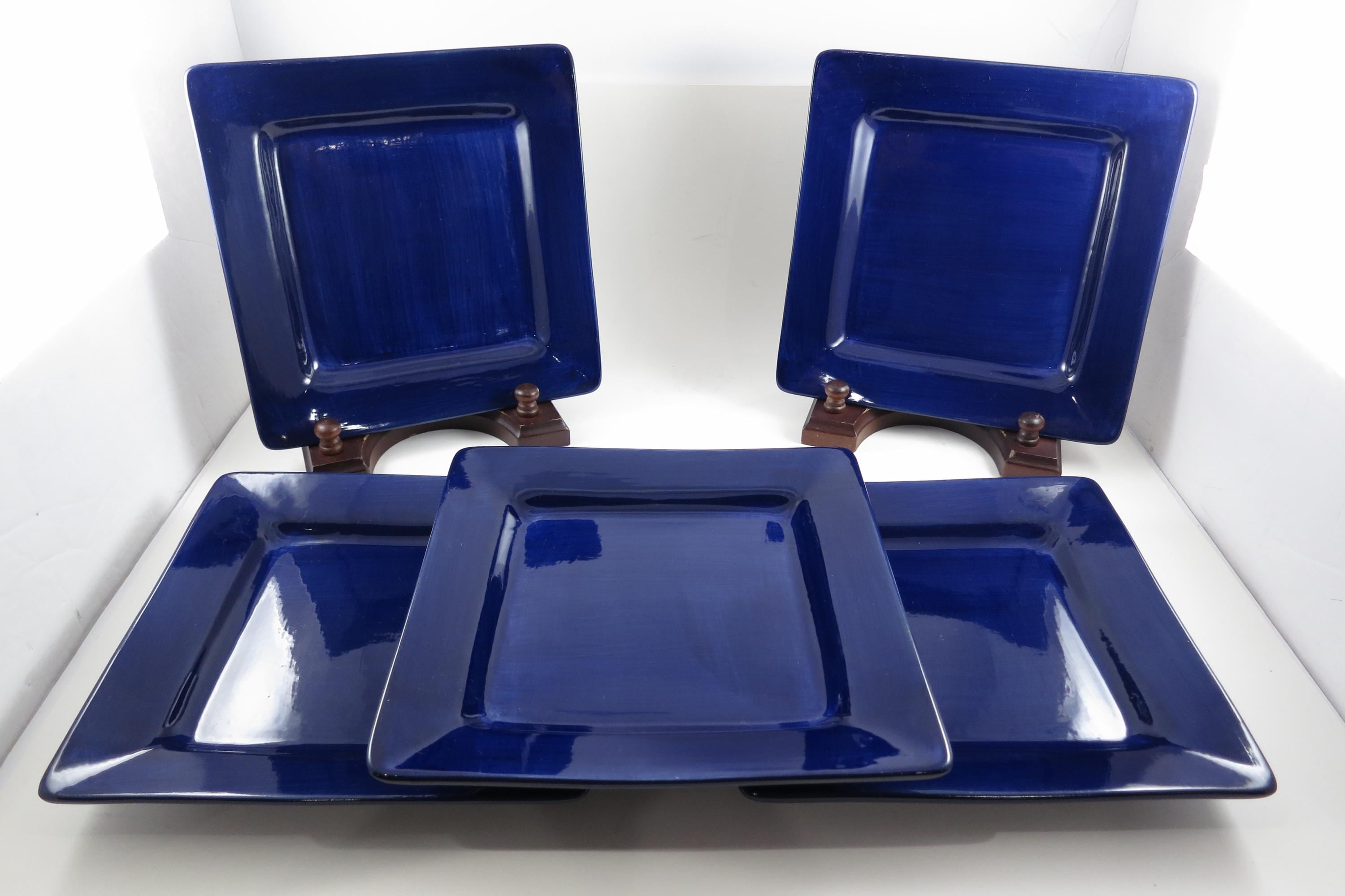 Set of 5 Pier 1 Essential Colors Cobalt Blue 8x8 Square Salad Plates