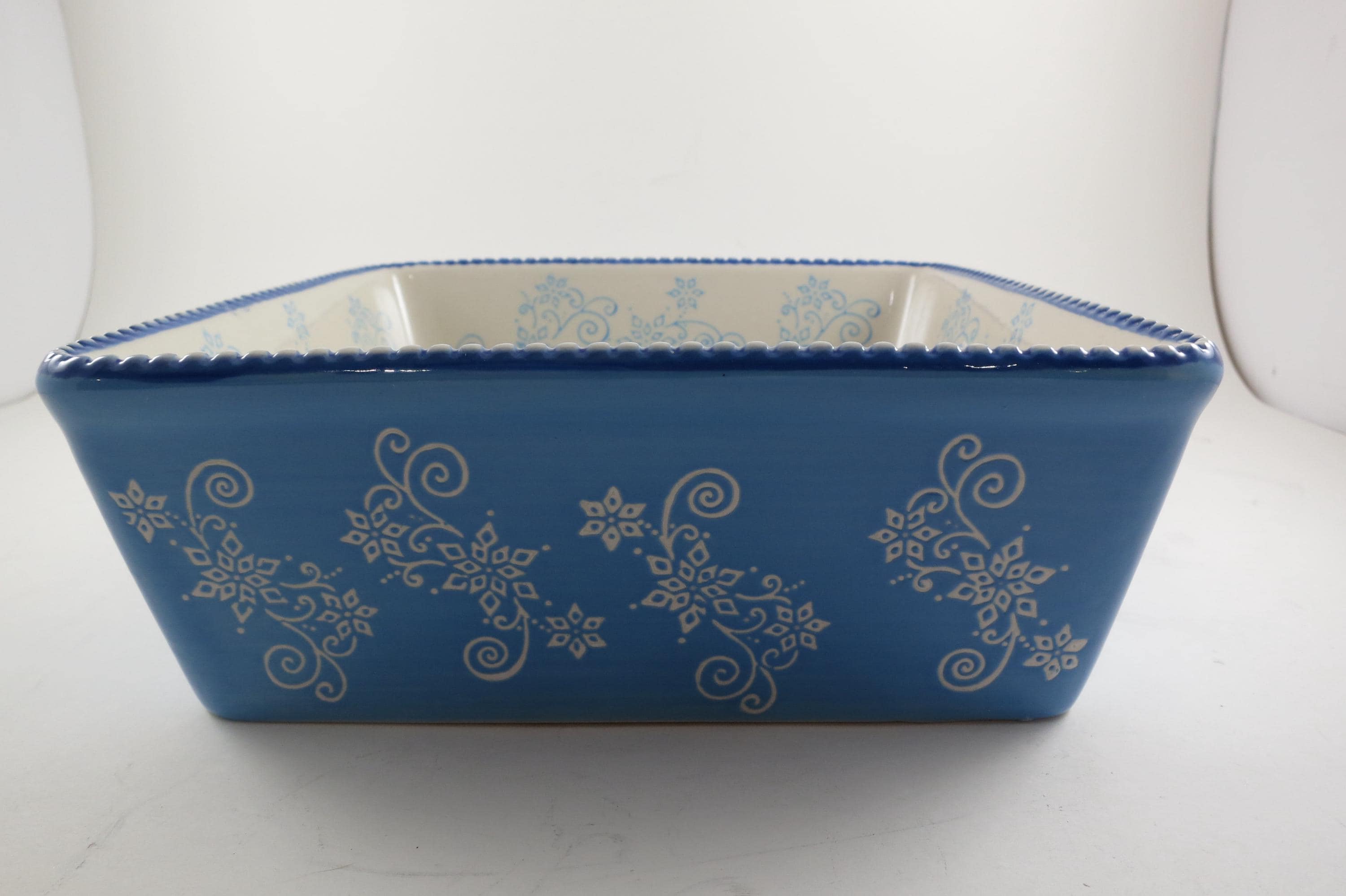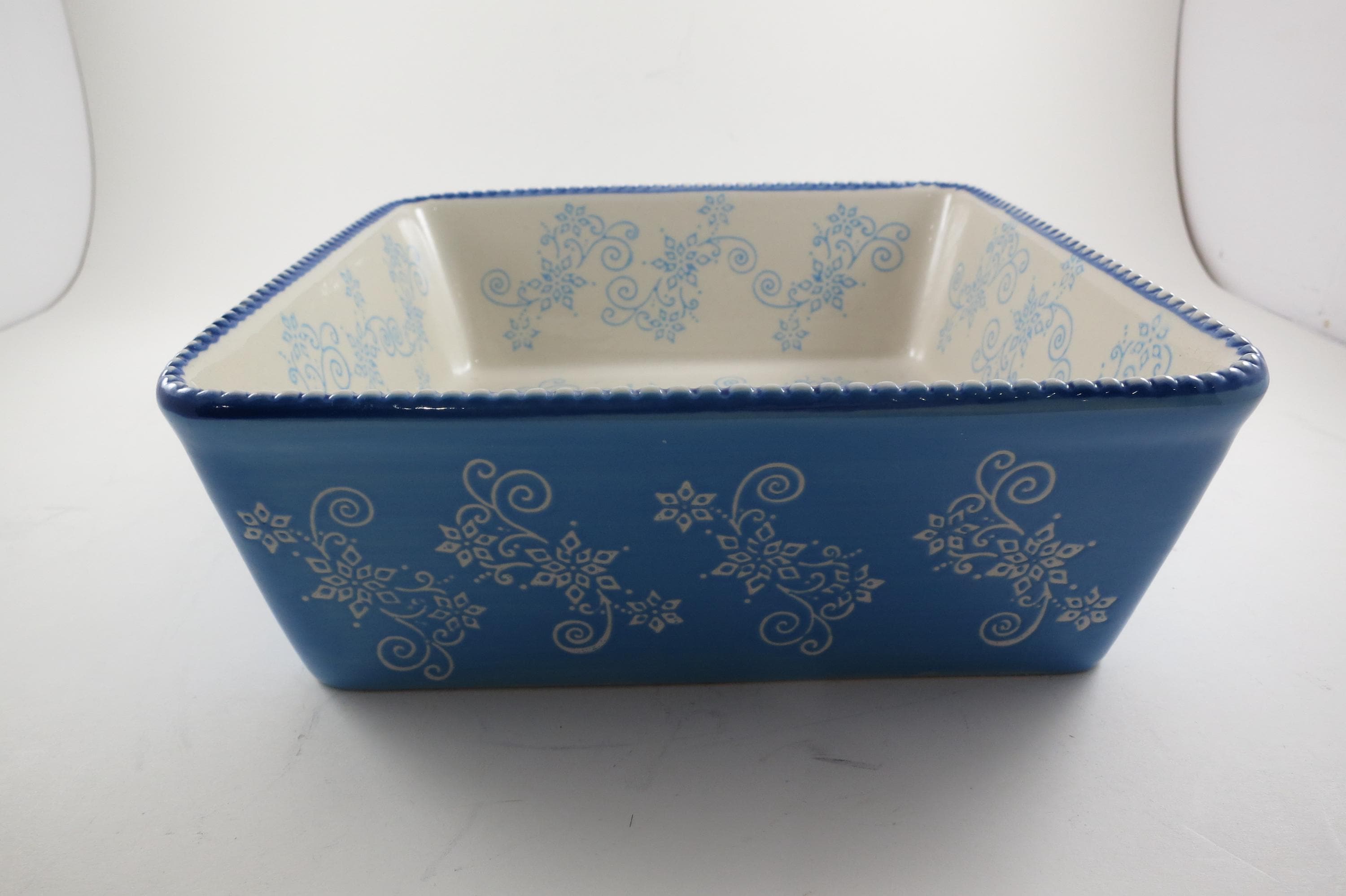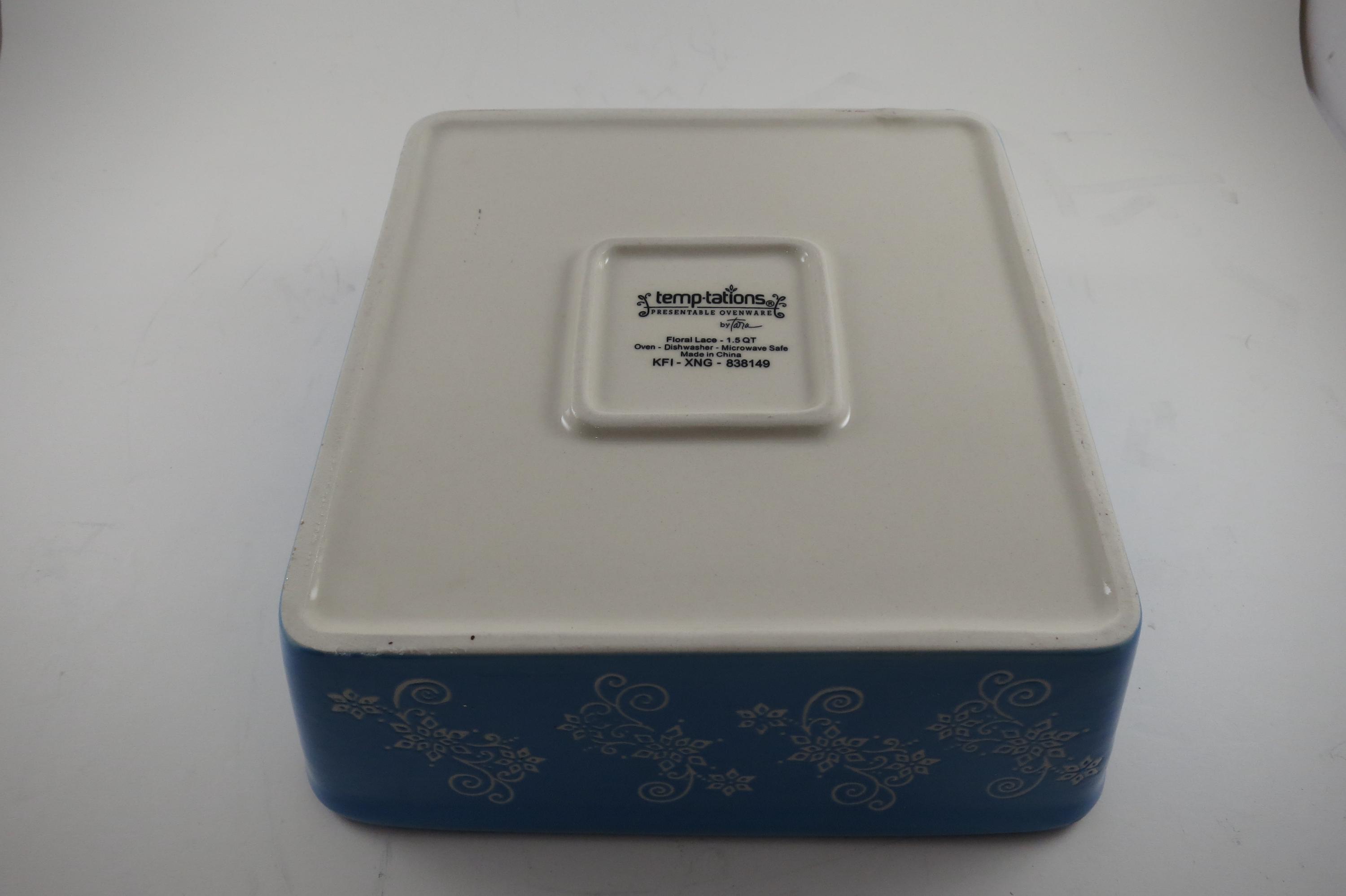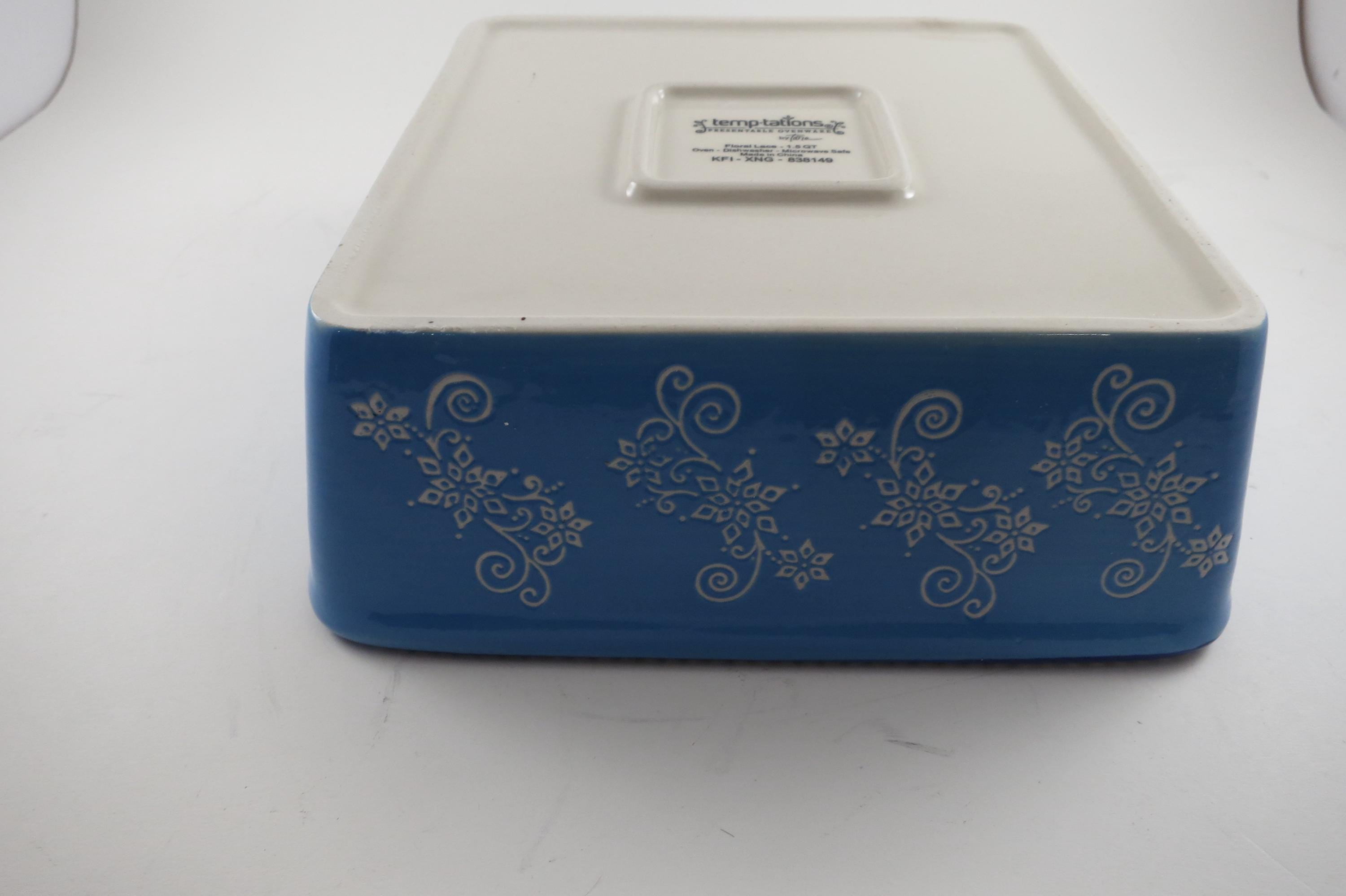 Temptations by Tara Light Blue Floral Lace 8x8 1.5 Quart Square Baker.