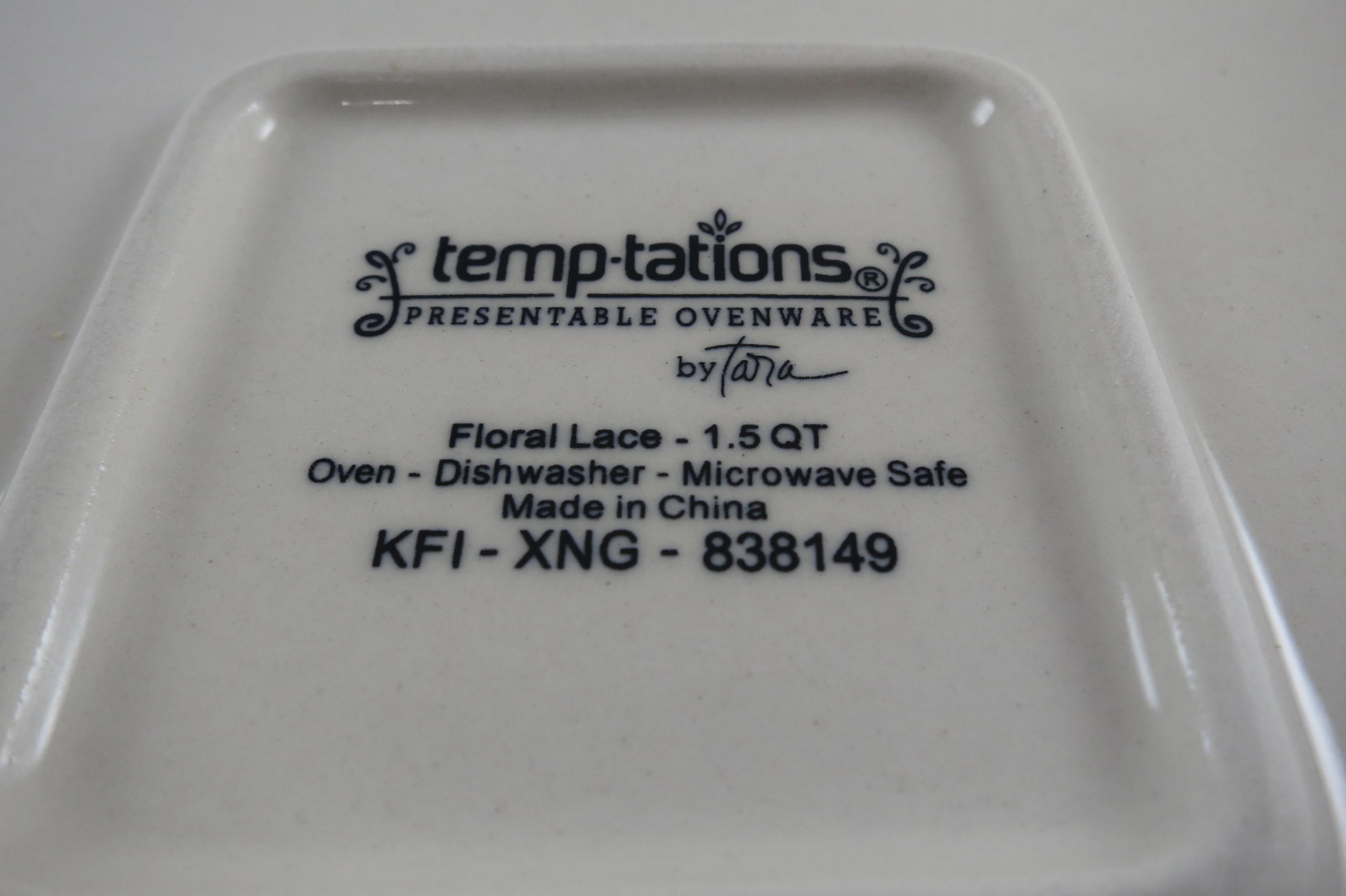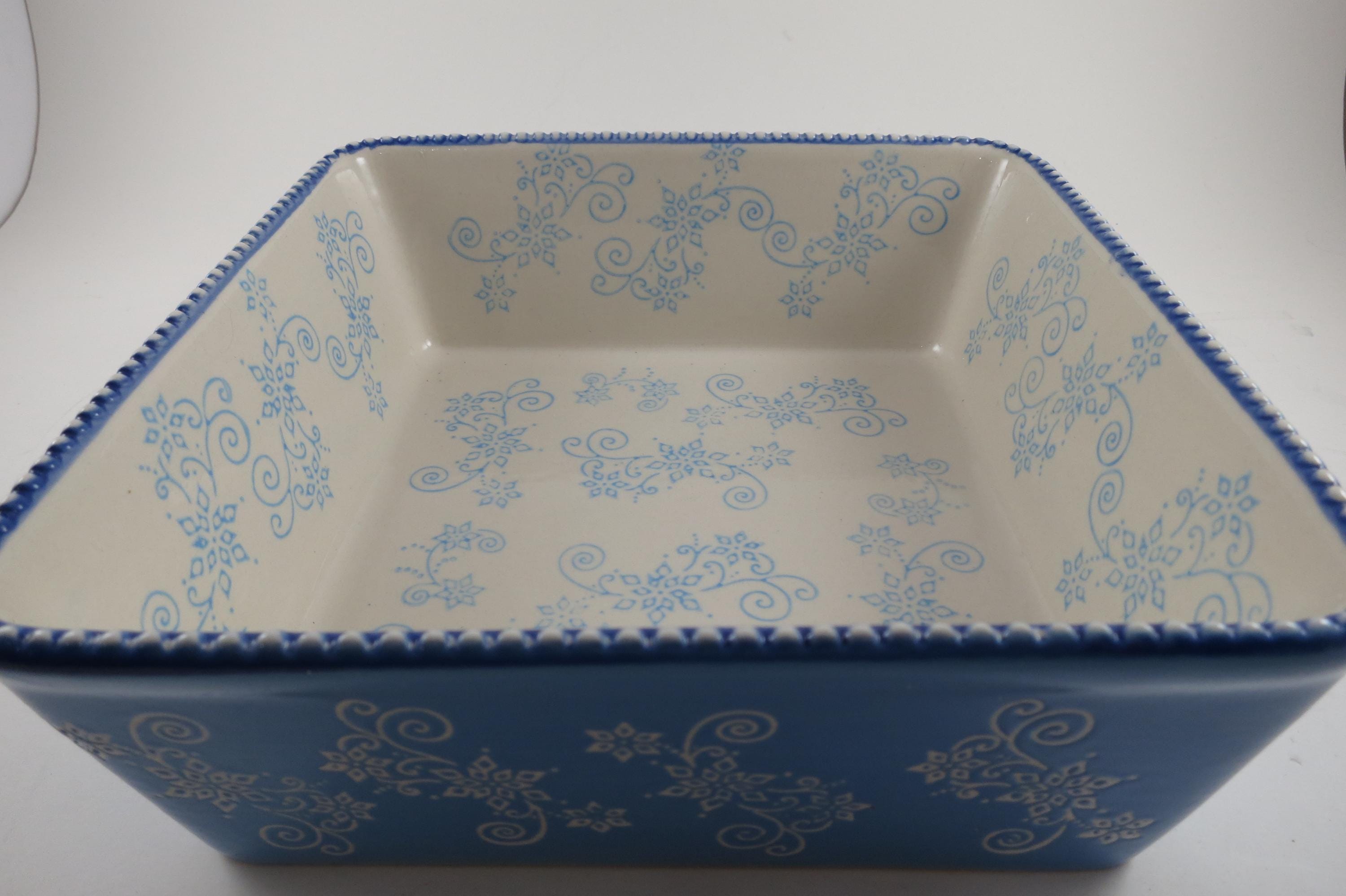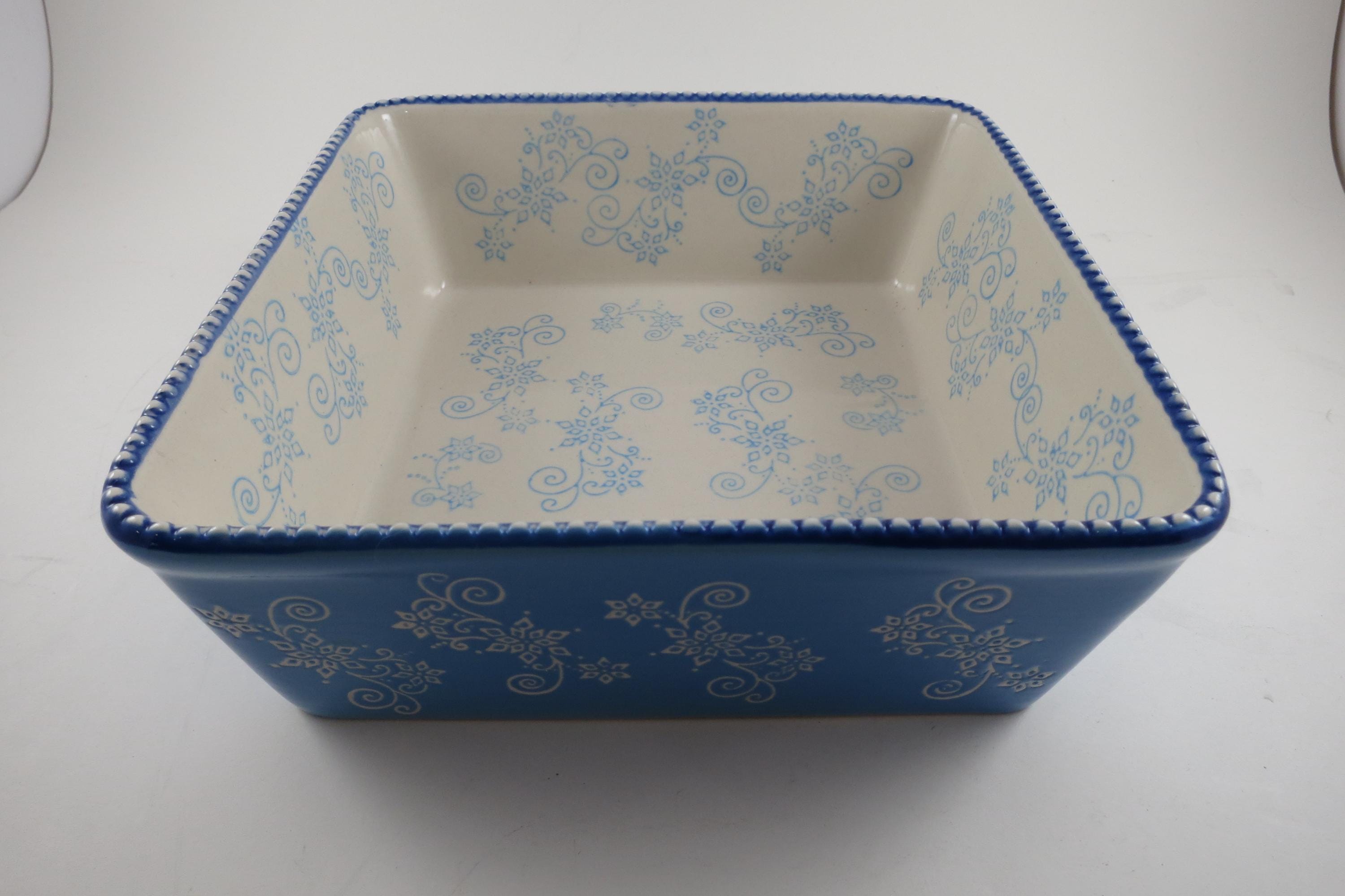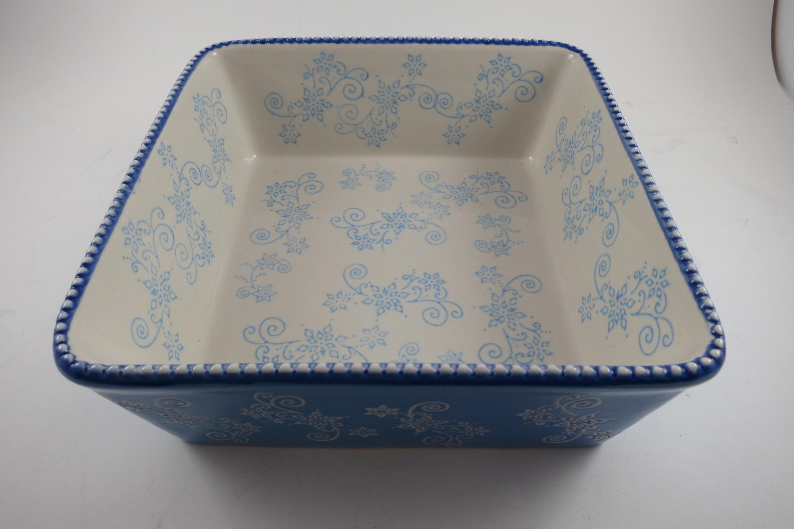 Temptations by Tara Light Blue Floral Lace 8x8 1.5 Quart Square Baker.