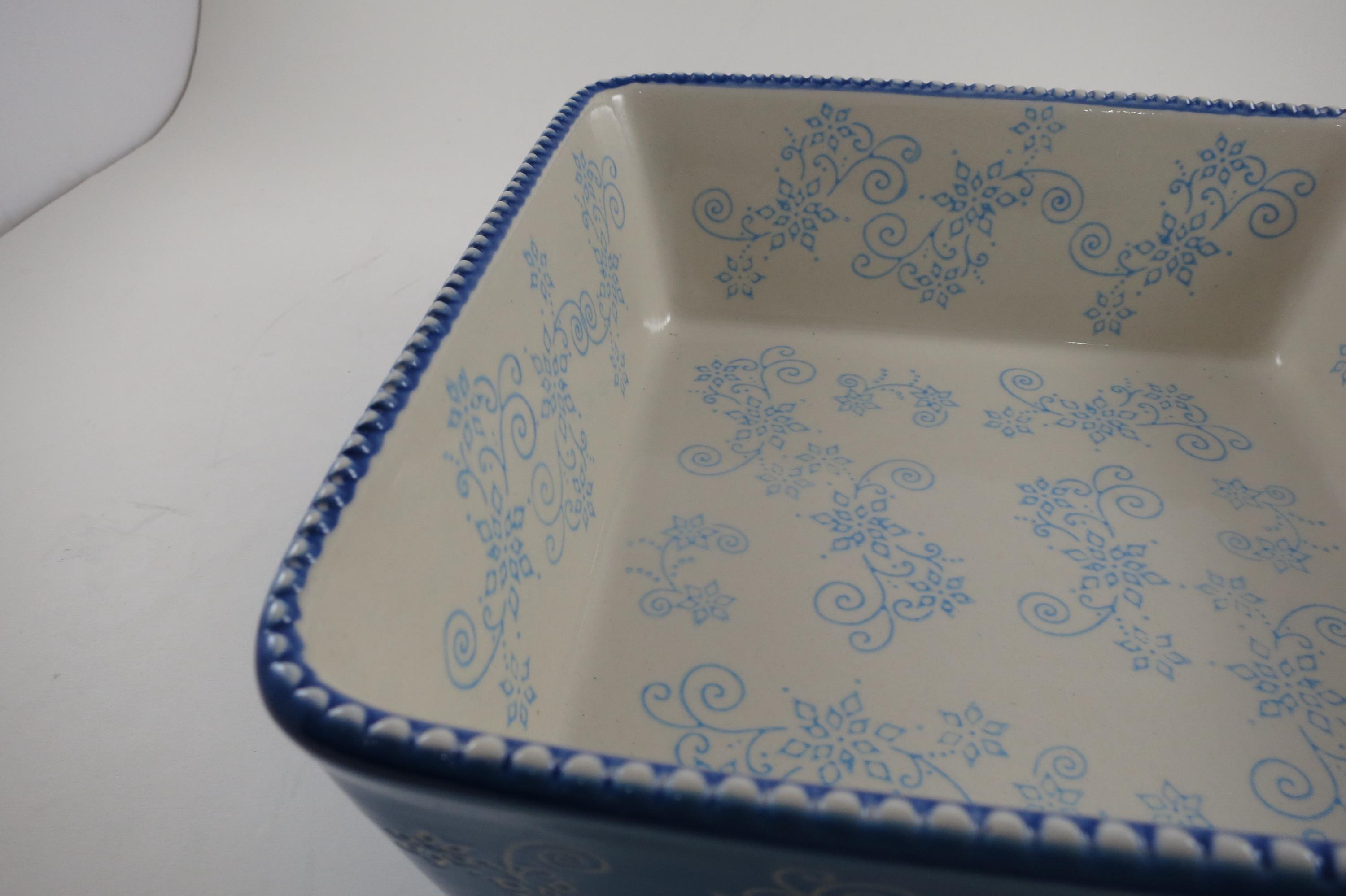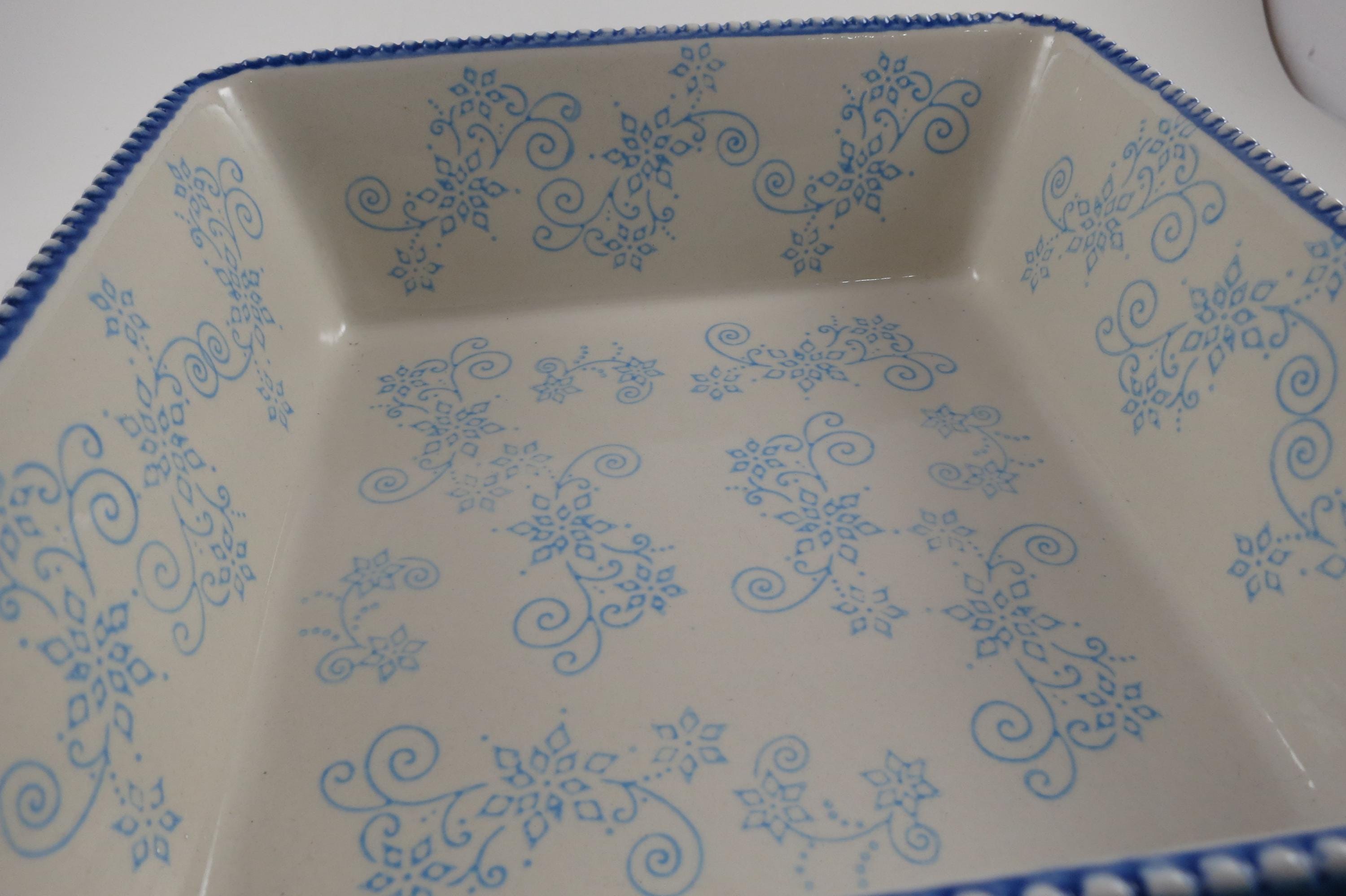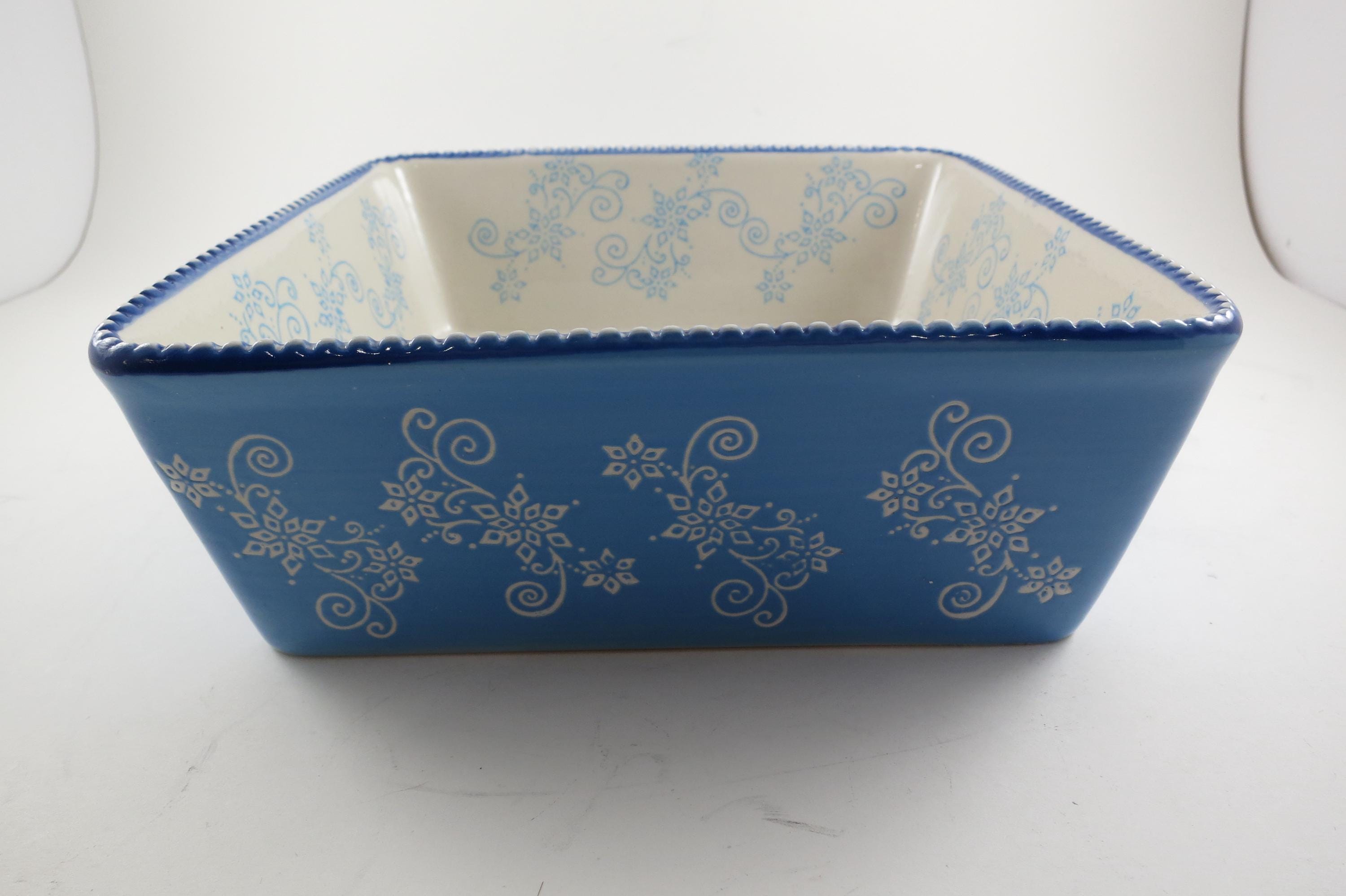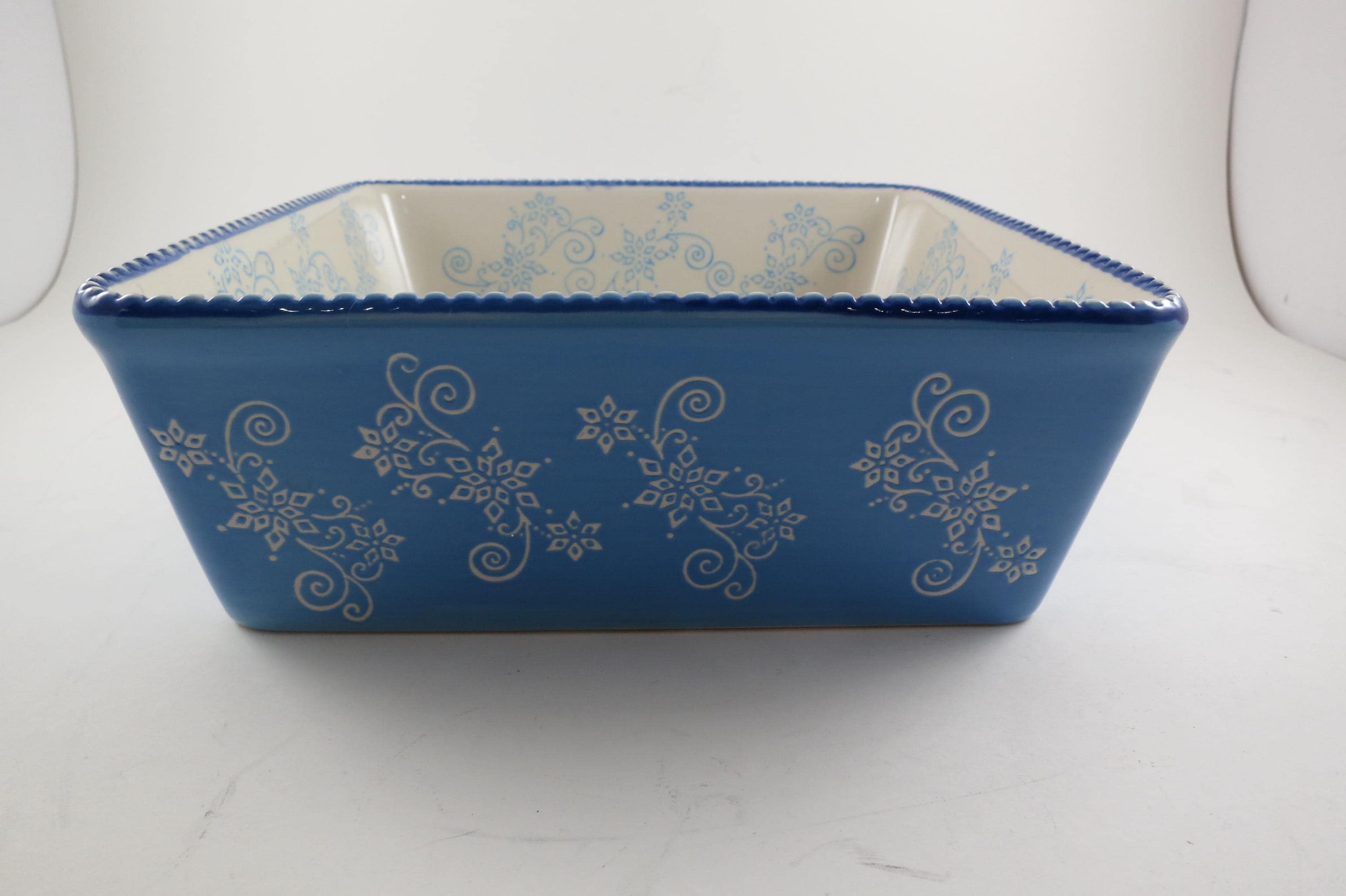 Temptations by Tara Light Blue Floral Lace 8x8 1.5 Quart Square Baker.